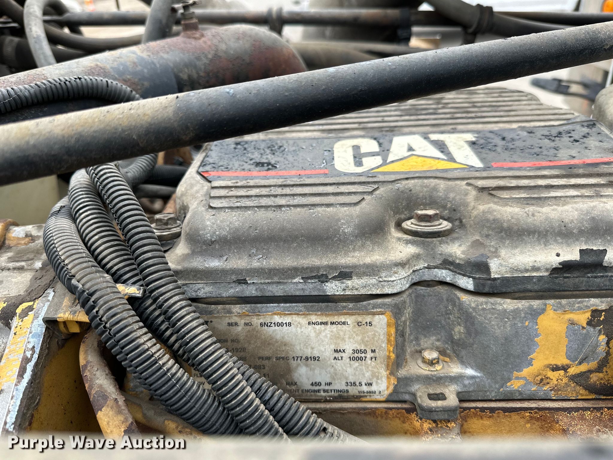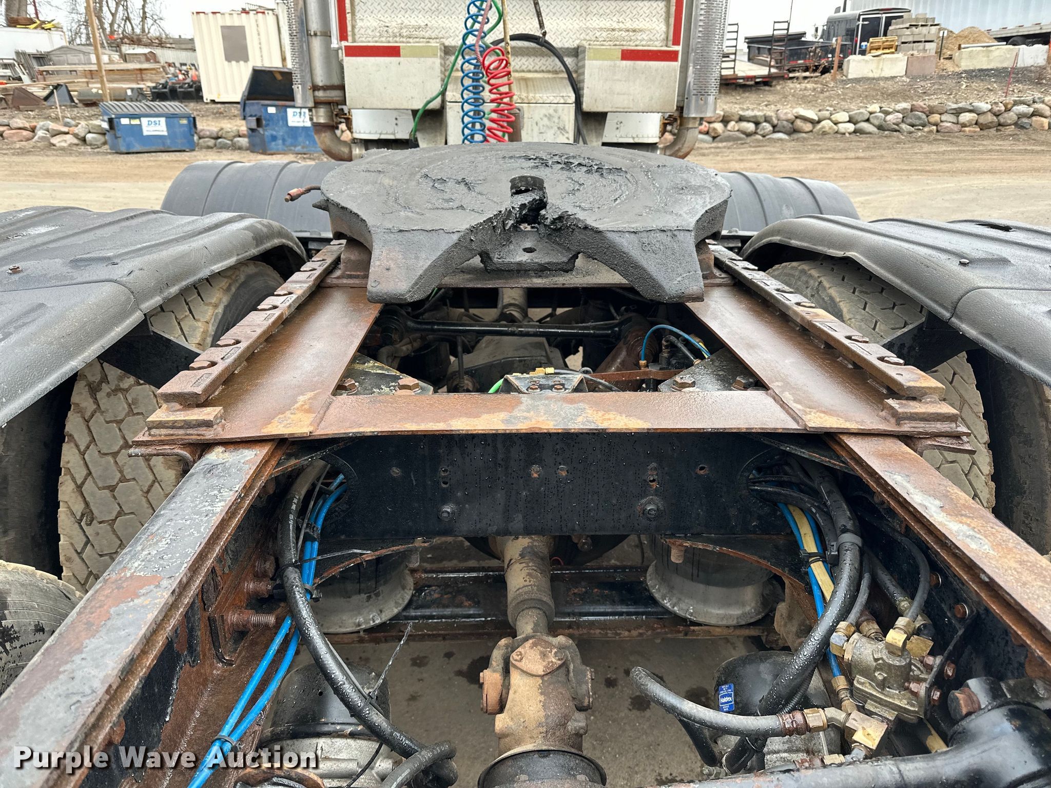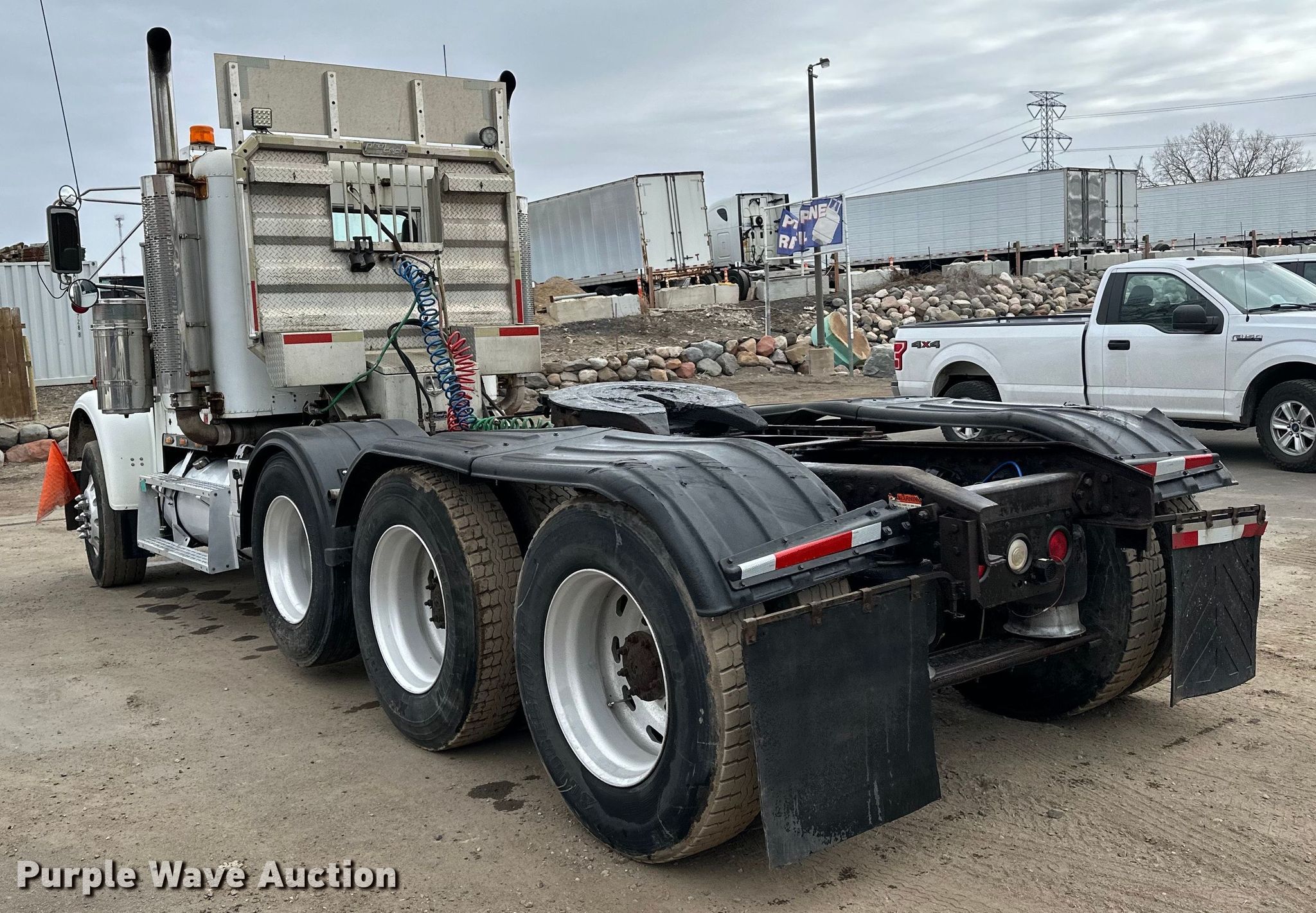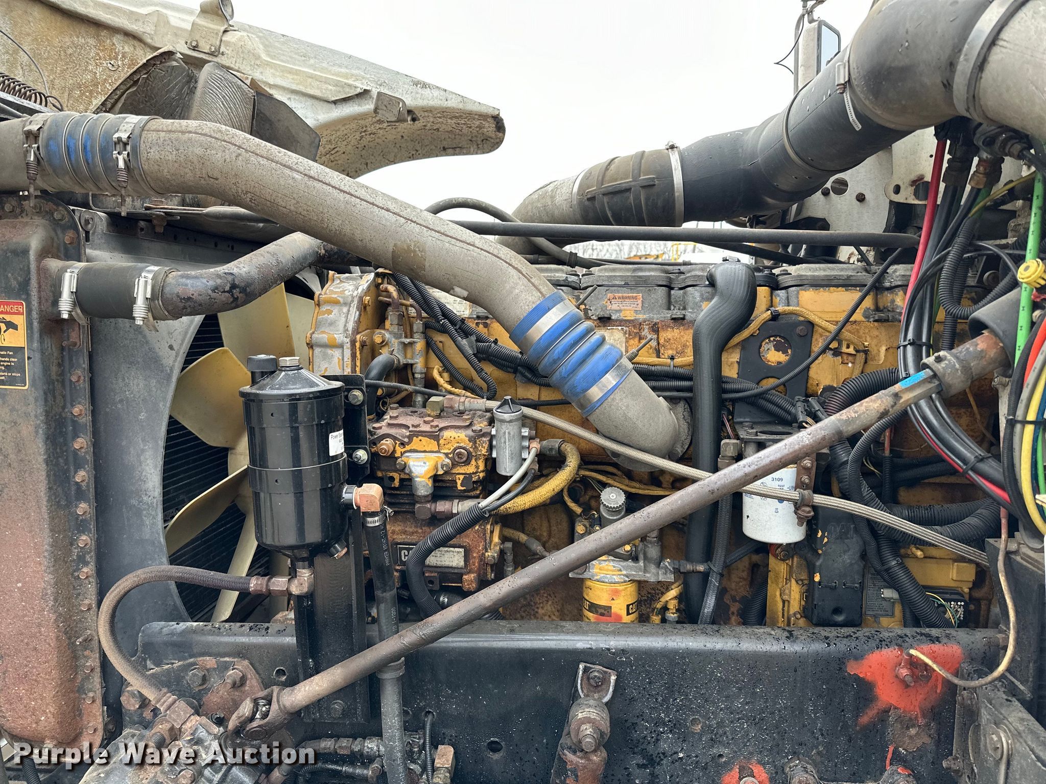 2000 Freightliner FLD120 semi truck. Miles: 831,765 on odometer, Hours: 4,999 on meter, VIN: 1FUPFXYB0YLG39254. Engine Caterpillar C15, Cylinders: 6, Fuel type: Diesel, HP: 450, kW: 335, Engine brake. Transmission Eaton Fuller, Manual, Speed: 18. Chassis Axles: Triple, Pusher axle, Differential lock: Inter-axle, Suspension: Air Dump valves, Brakes: Air, PTO, Wet kit. Interior AC, Heat, Heated mirrors, Cruise control, Air ride cab. Features Deck plate: Steel, Fifth wheel type: Air operated, Sliding, Fuel tank: Dual. Tires Front: 315/80R22.5, Rear: 11R24.5, Lift axle: 295/75R22.5. Minnesota title. Title distribution may be delayed up to 14 days from verification of funds. Turner Bros Inc. - Open inspection April 13 and April 18. 12540 Nevada Ave S. Savage, MN 55378