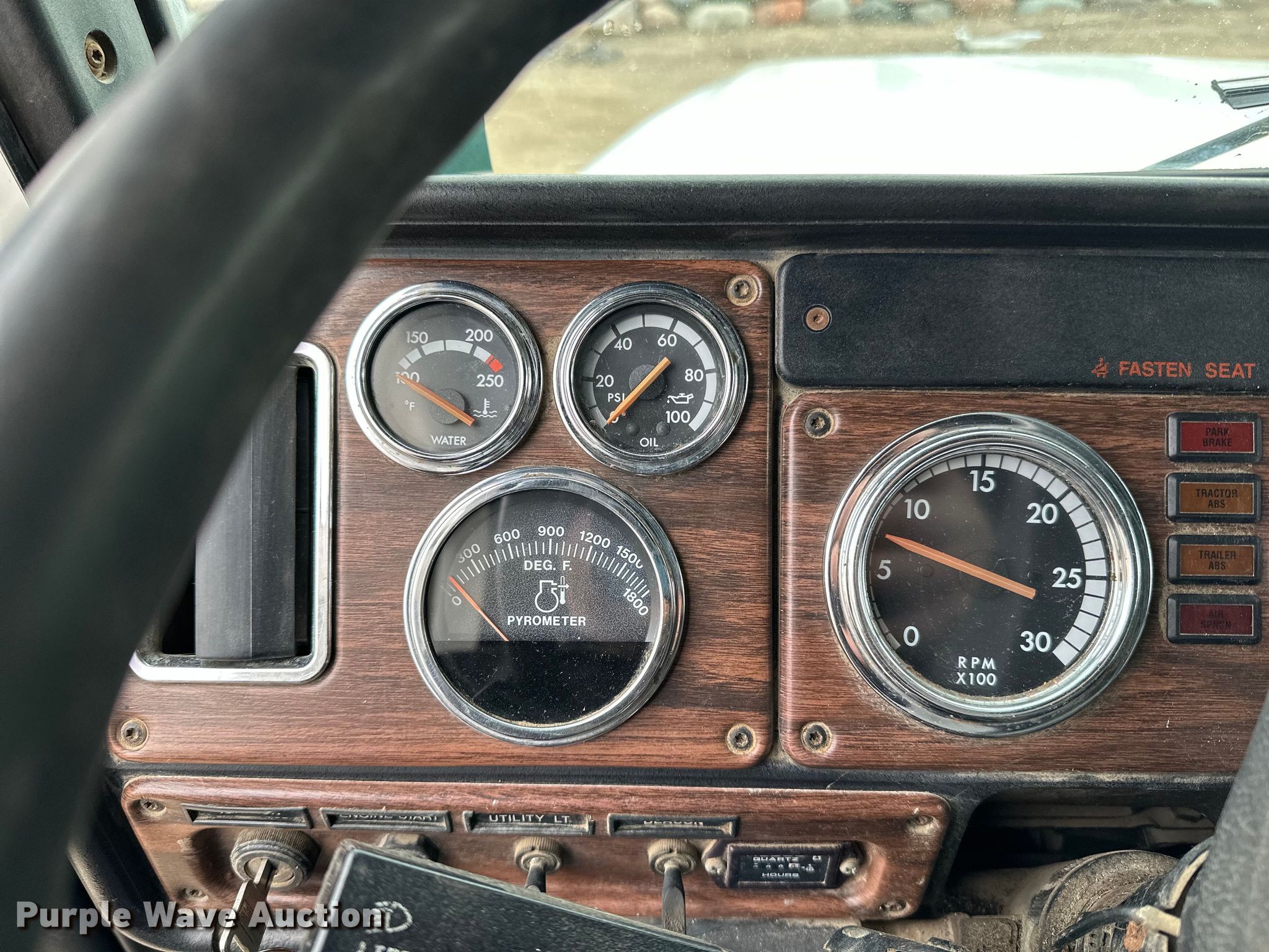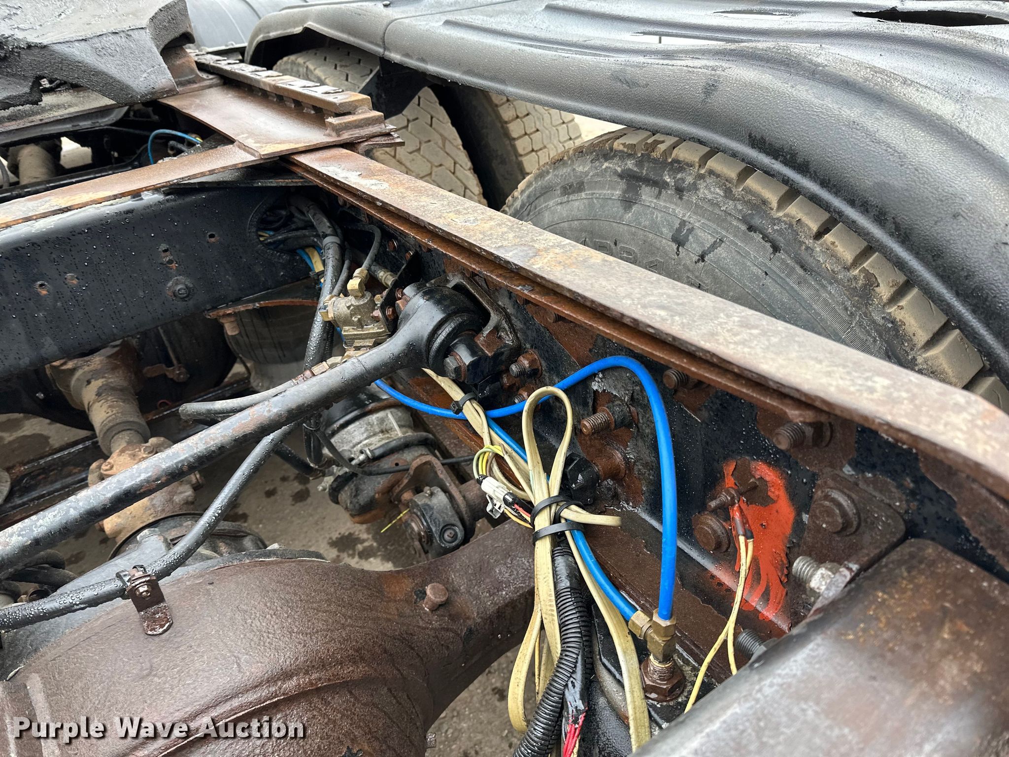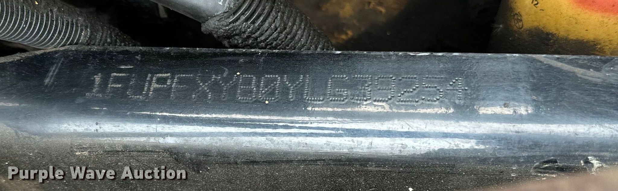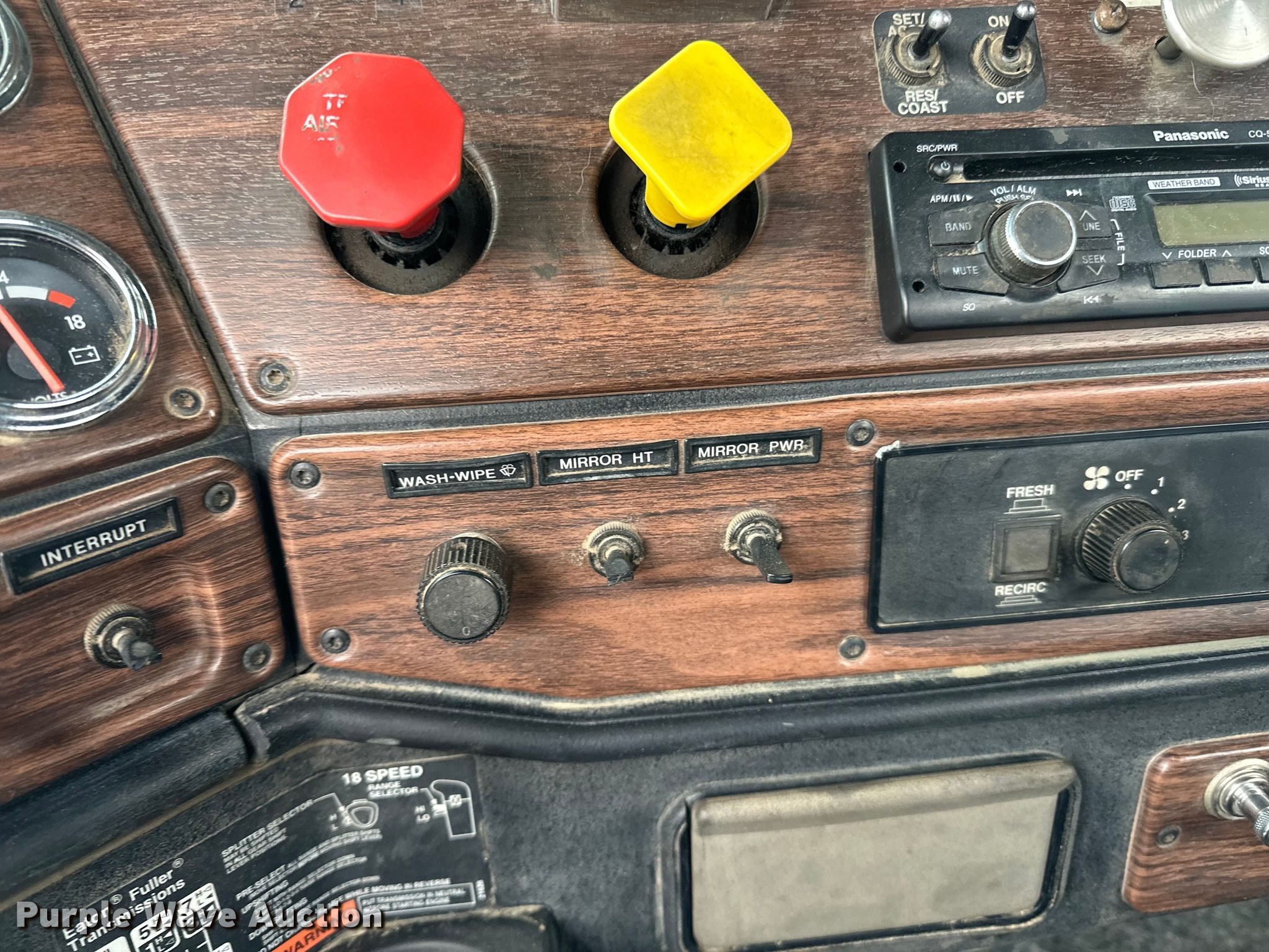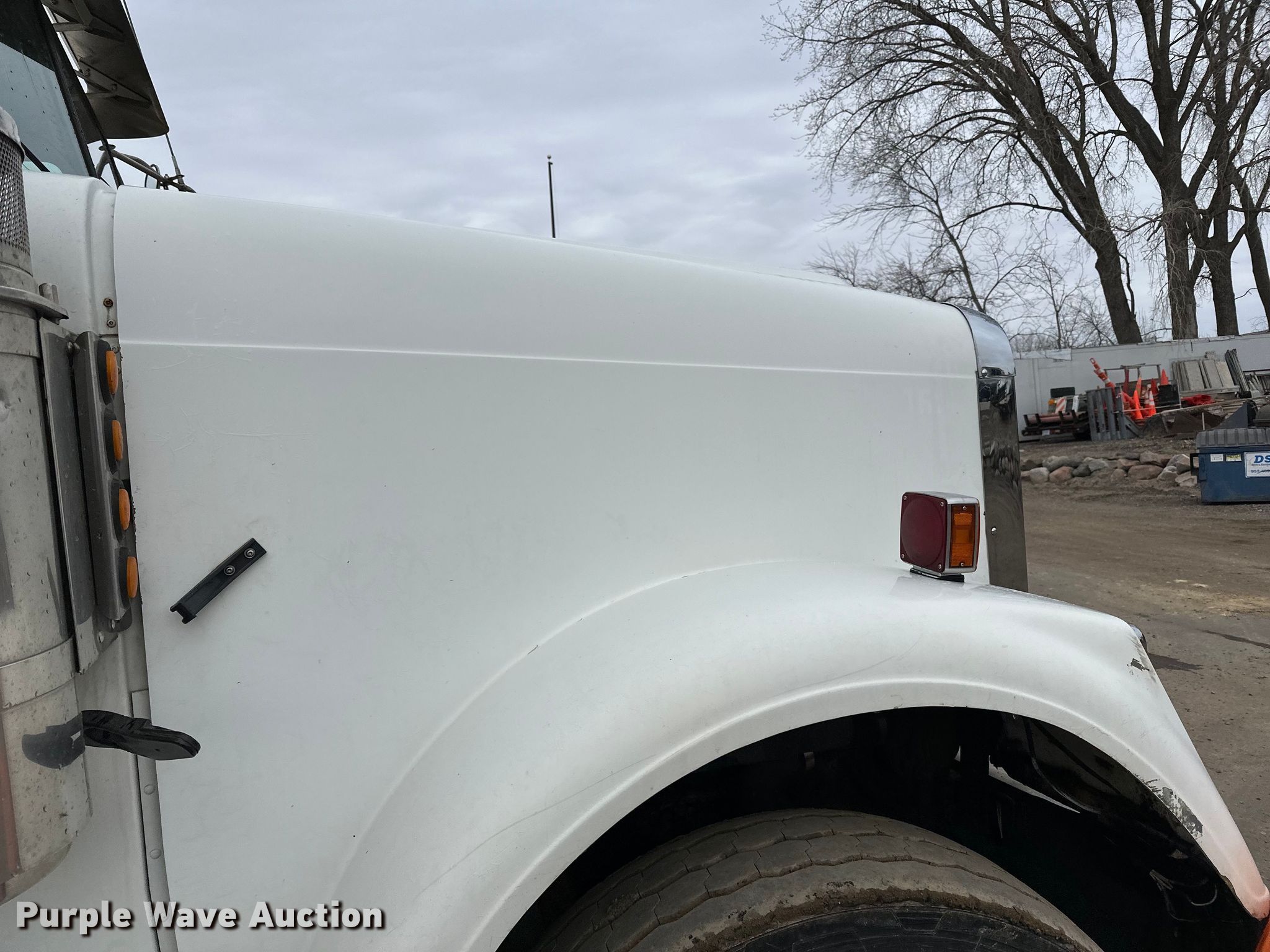 2000 Freightliner FLD120 semi truck. Miles: 831,765 on odometer, Hours: 4,999 on meter, VIN: 1FUPFXYB0YLG39254. Engine Caterpillar C15, Cylinders: 6, Fuel type: Diesel, HP: 450, kW: 335, Engine brake. Transmission Eaton Fuller, Manual, Speed: 18. Chassis Axles: Triple, Pusher axle, Differential lock: Inter-axle, Suspension: Air Dump valves, Brakes: Air, PTO, Wet kit. Interior AC, Heat, Heated mirrors, Cruise control, Air ride cab. Features Deck plate: Steel, Fifth wheel type: Air operated, Sliding, Fuel tank: Dual. Tires Front: 315/80R22.5, Rear: 11R24.5, Lift axle: 295/75R22.5. Minnesota title. Title distribution may be delayed up to 14 days from verification of funds. Turner Bros Inc. - Open inspection April 13 and April 18. 12540 Nevada Ave S. Savage, MN 55378