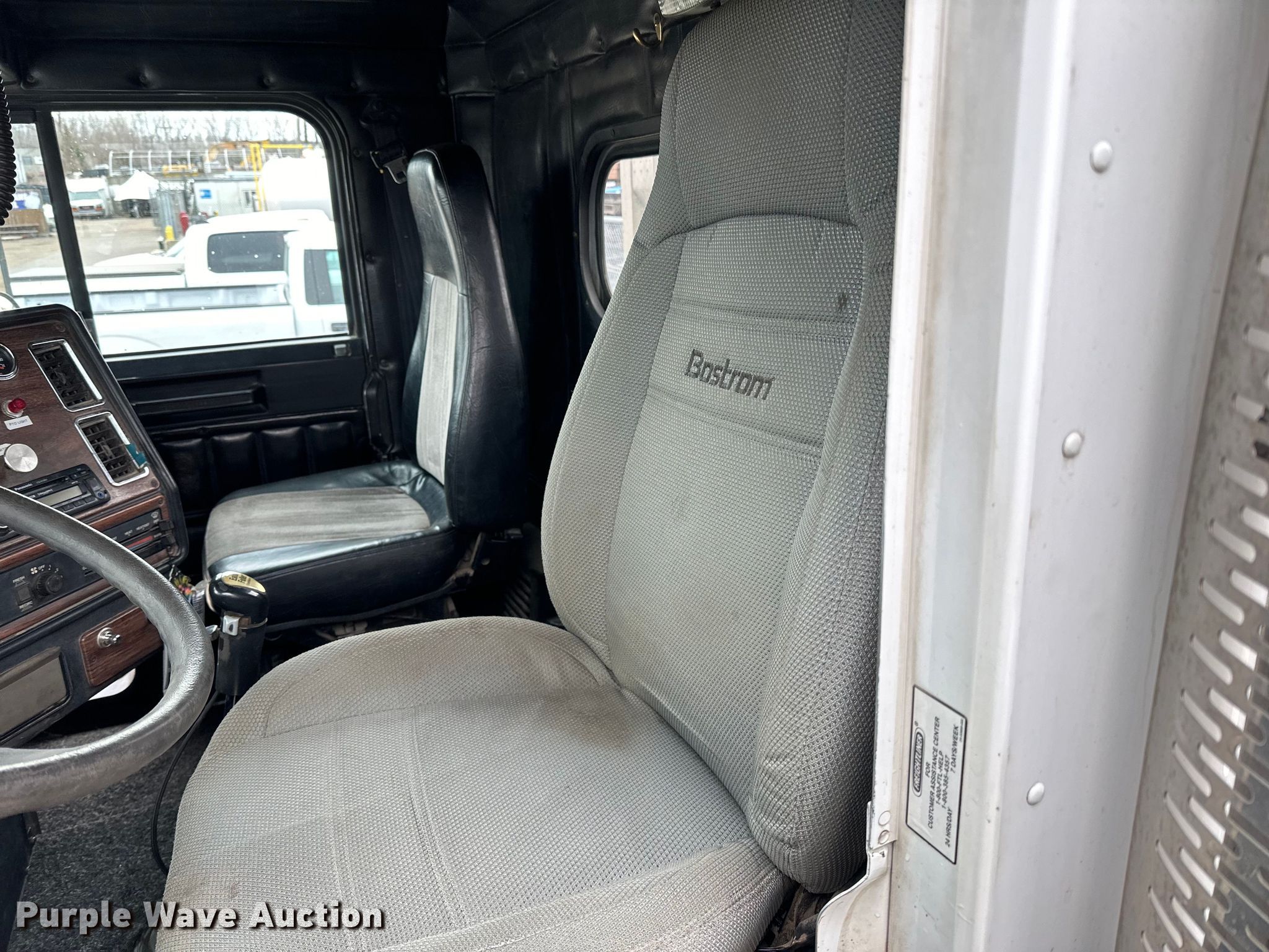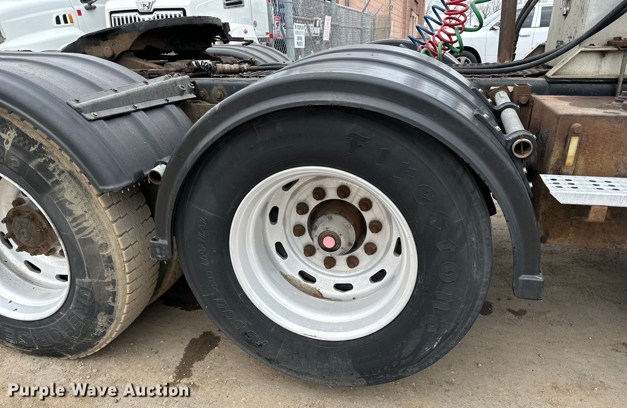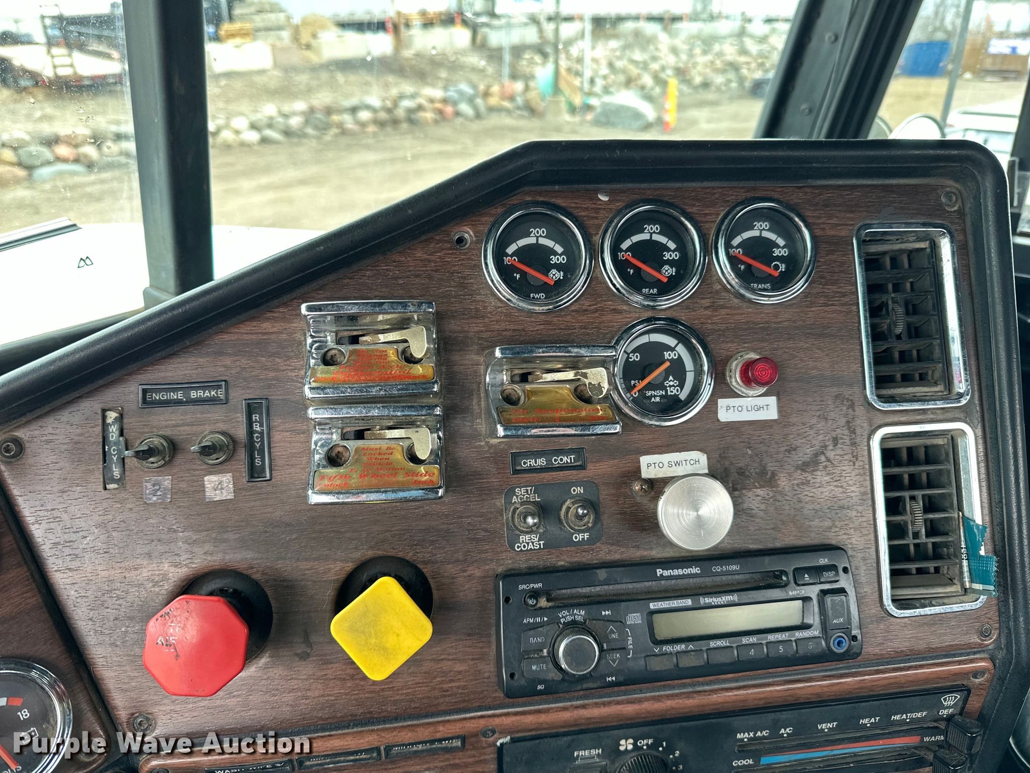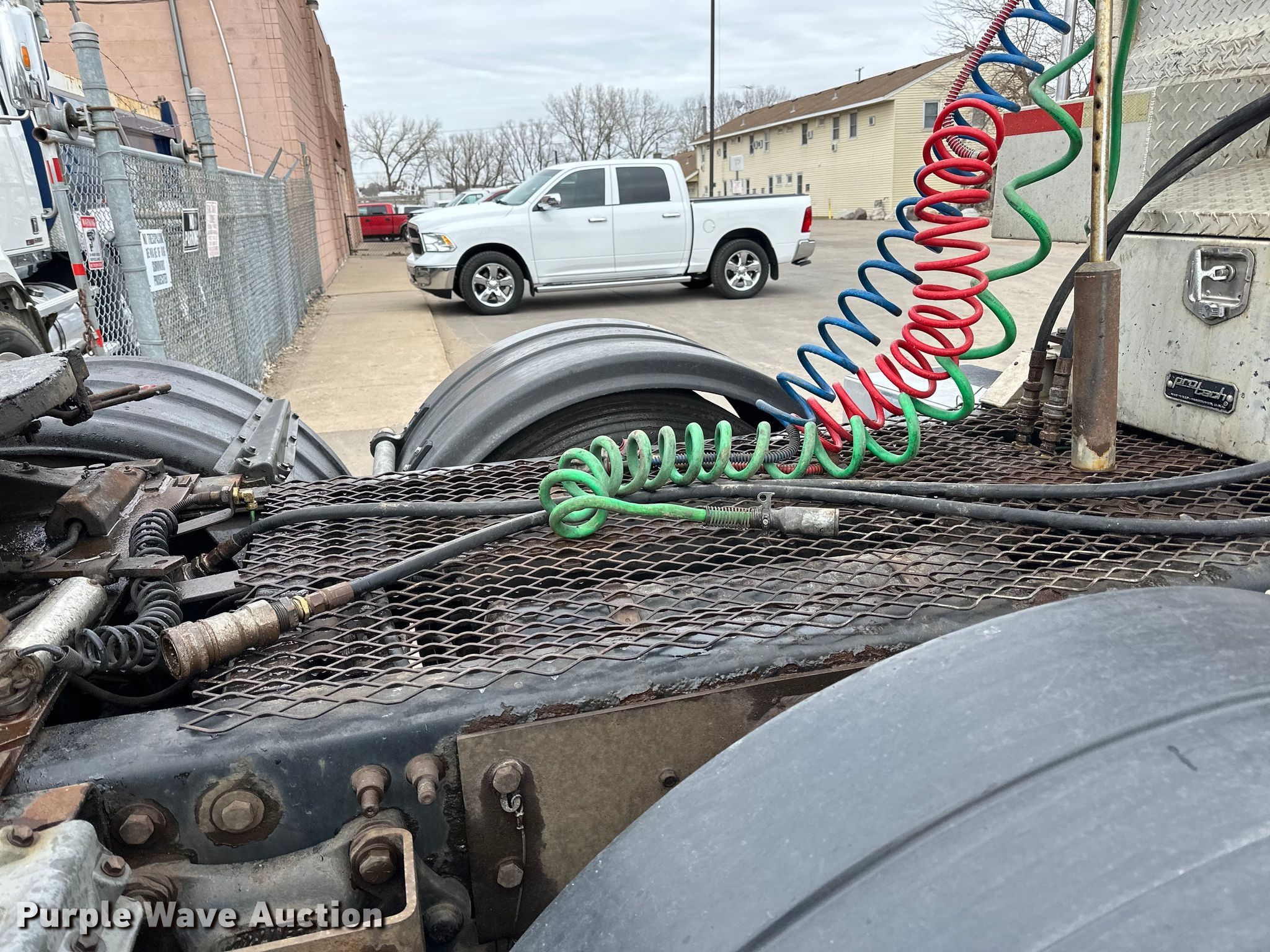 2000 Freightliner FLD120 semi truck. Miles: 831,765 on odometer, Hours: 4,999 on meter, VIN: 1FUPFXYB0YLG39254. Engine Caterpillar C15, Cylinders: 6, Fuel type: Diesel, HP: 450, kW: 335, Engine brake. Transmission Eaton Fuller, Manual, Speed: 18. Chassis Axles: Triple, Pusher axle, Differential lock: Inter-axle, Suspension: Air Dump valves, Brakes: Air, PTO, Wet kit. Interior AC, Heat, Heated mirrors, Cruise control, Air ride cab. Features Deck plate: Steel, Fifth wheel type: Air operated, Sliding, Fuel tank: Dual. Tires Front: 315/80R22.5, Rear: 11R24.5, Lift axle: 295/75R22.5. Minnesota title. Title distribution may be delayed up to 14 days from verification of funds. Turner Bros Inc. - Open inspection April 13 and April 18. 12540 Nevada Ave S. Savage, MN 55378