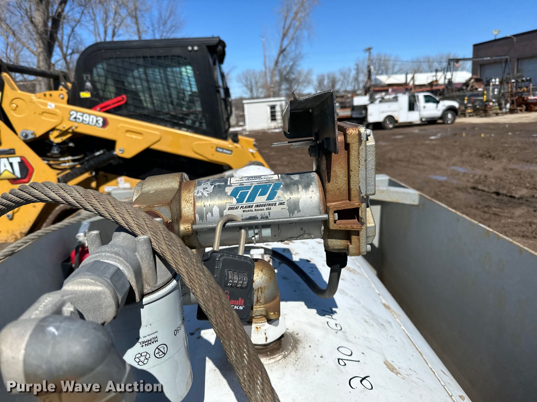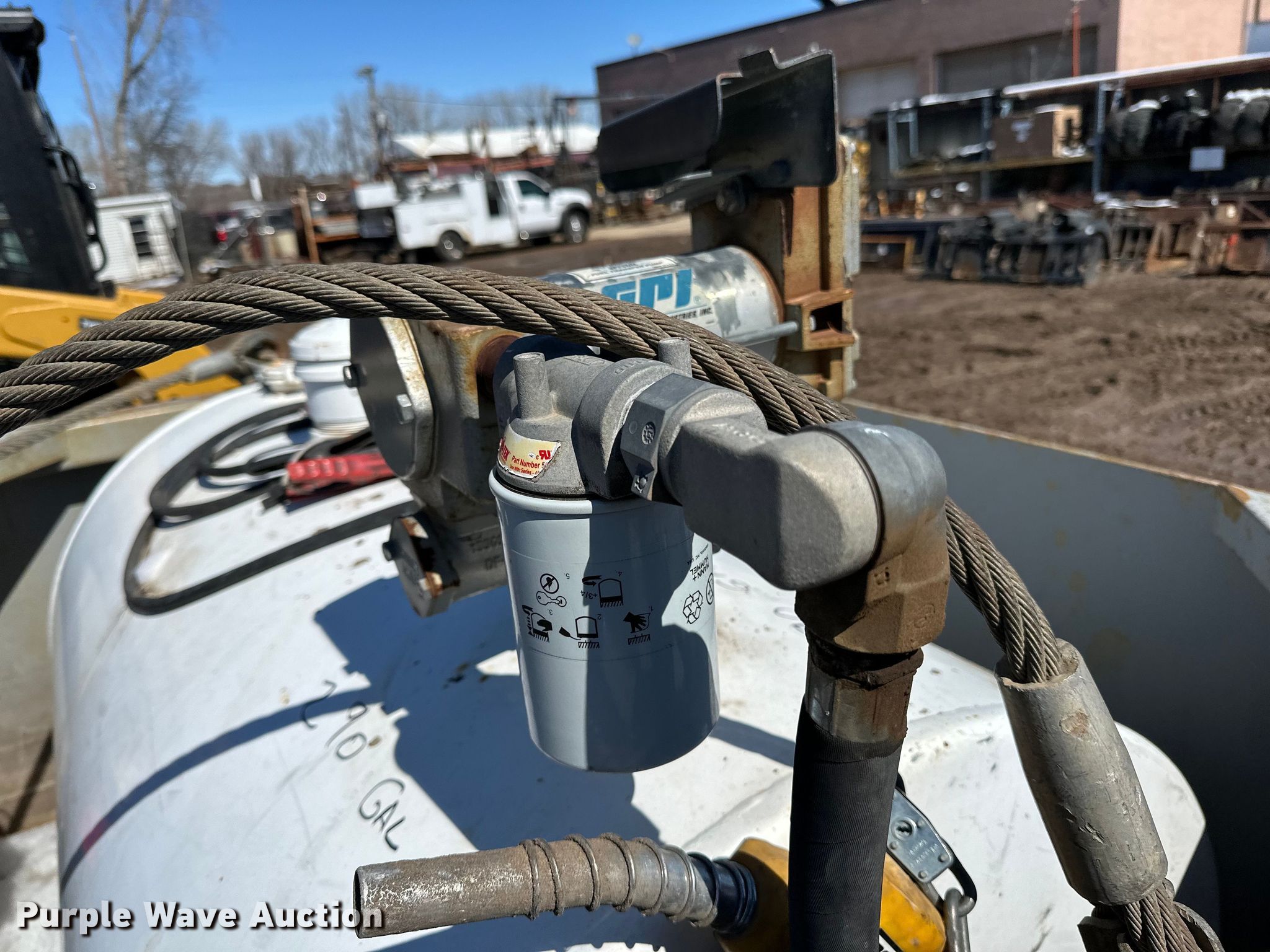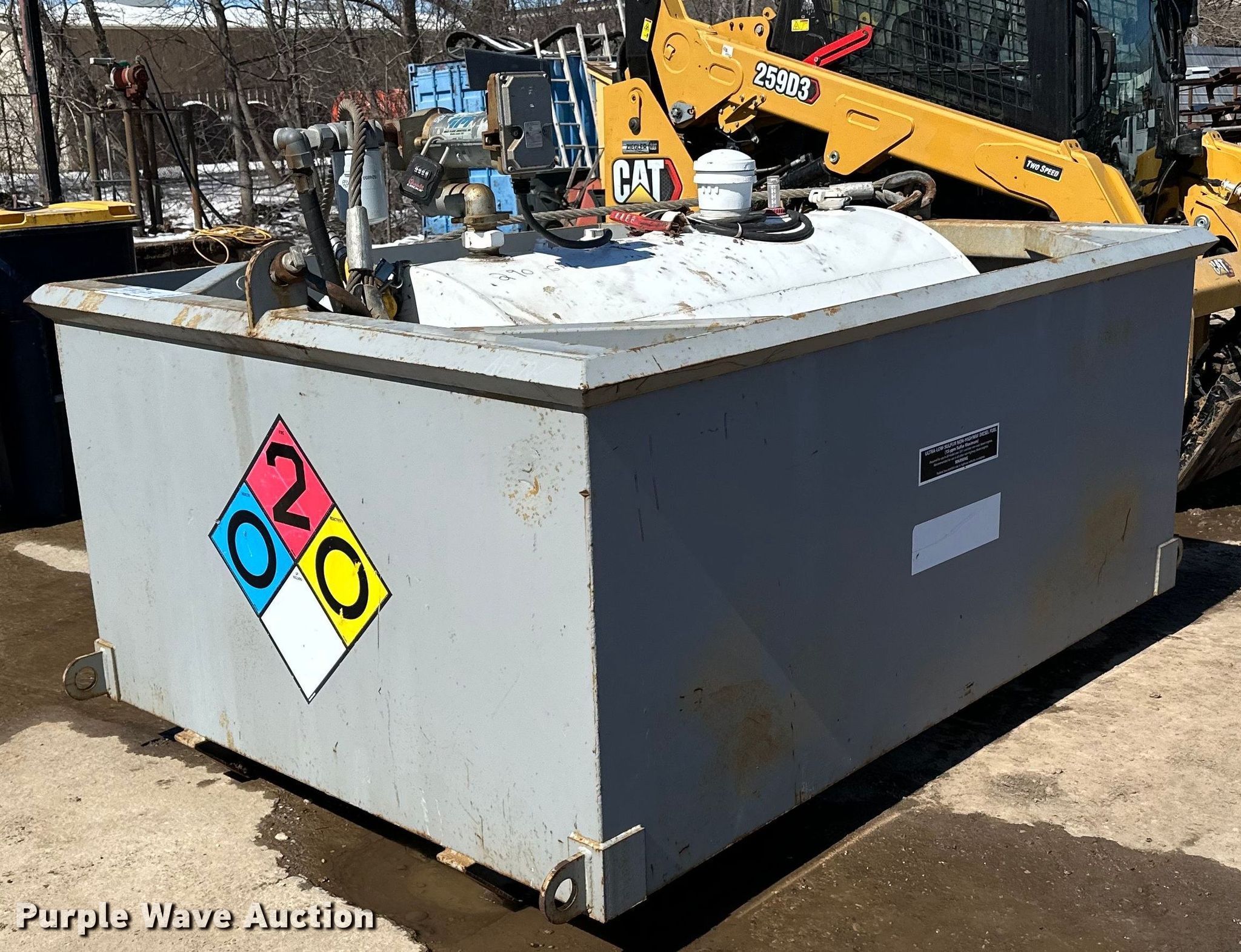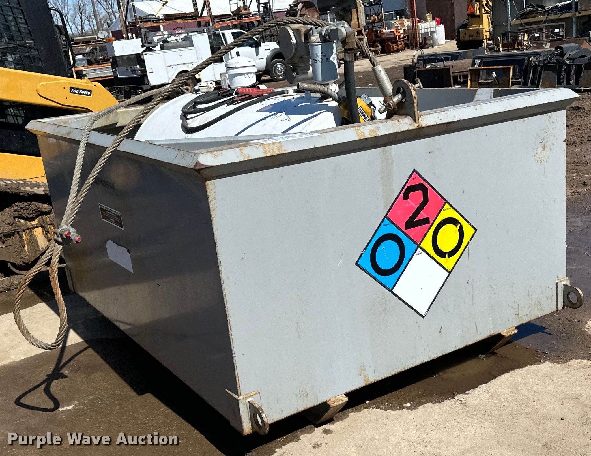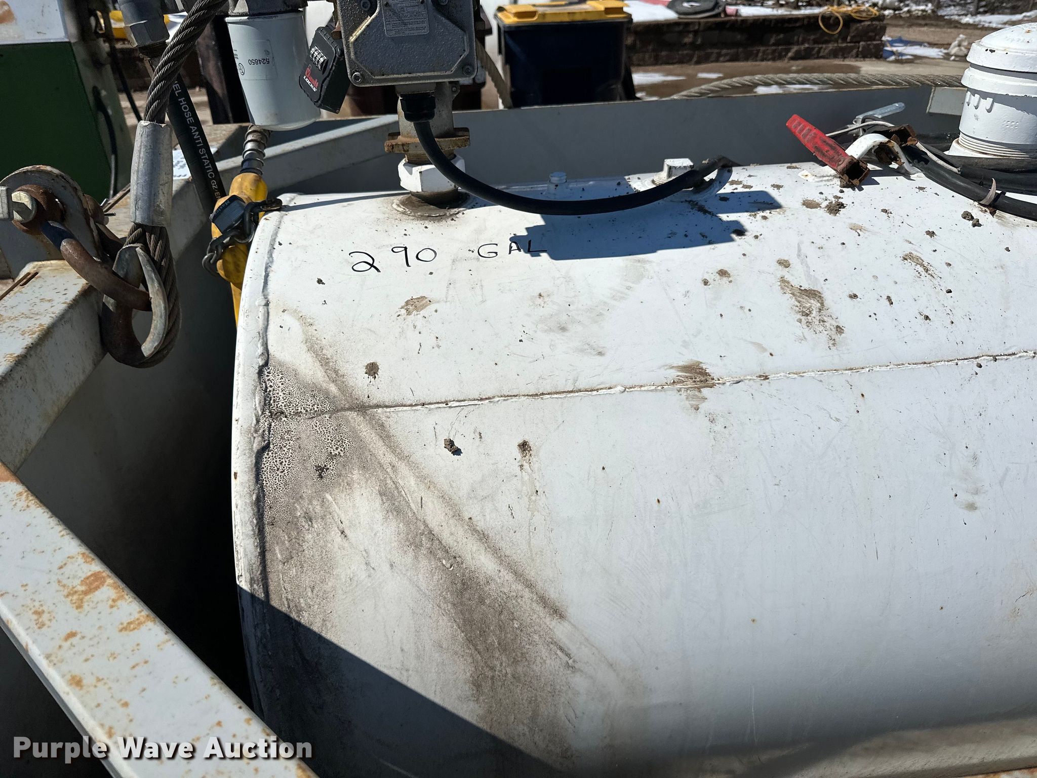 Purple Wave is selling a used Tanks in Minnesota. This item is a Fuel tank with the following: Dimensions: 7' 3" L X 5' 4" W X 4' 8" H, Fuel type: Diesel, GPI pump, Volts: 12, Secondary containment