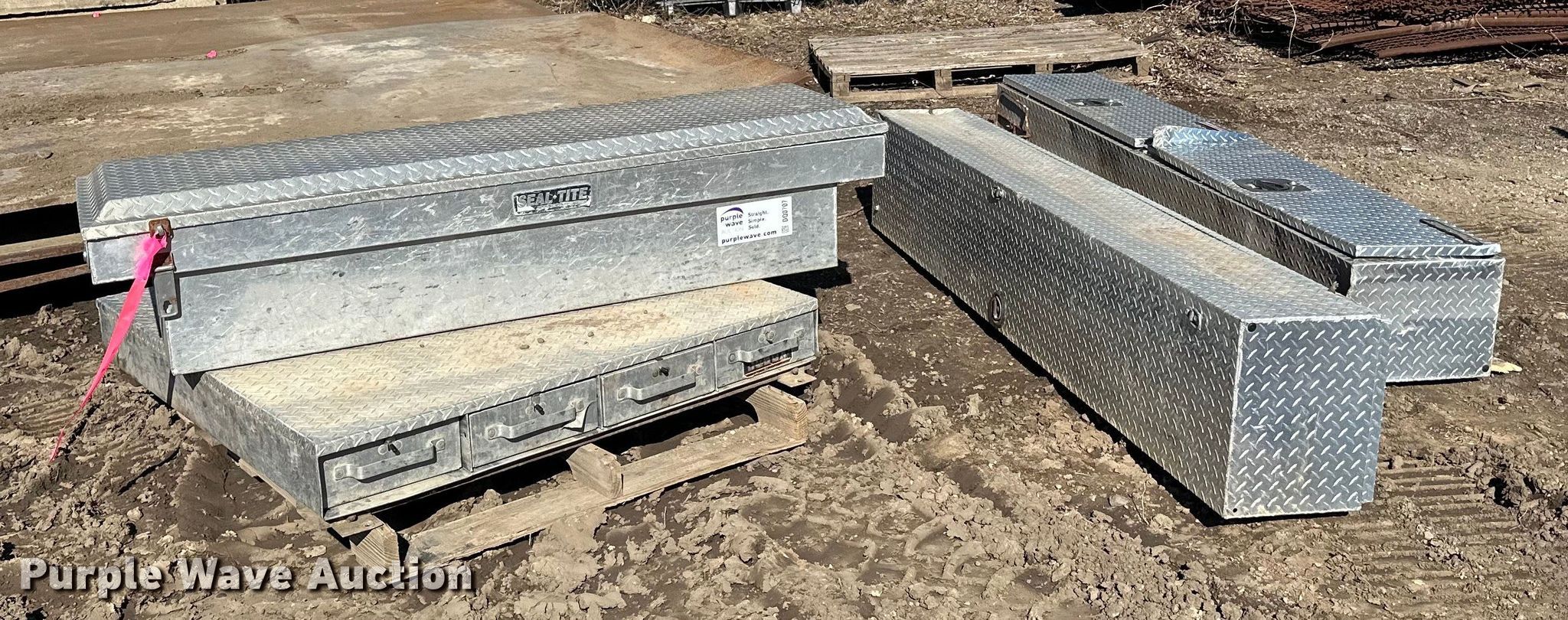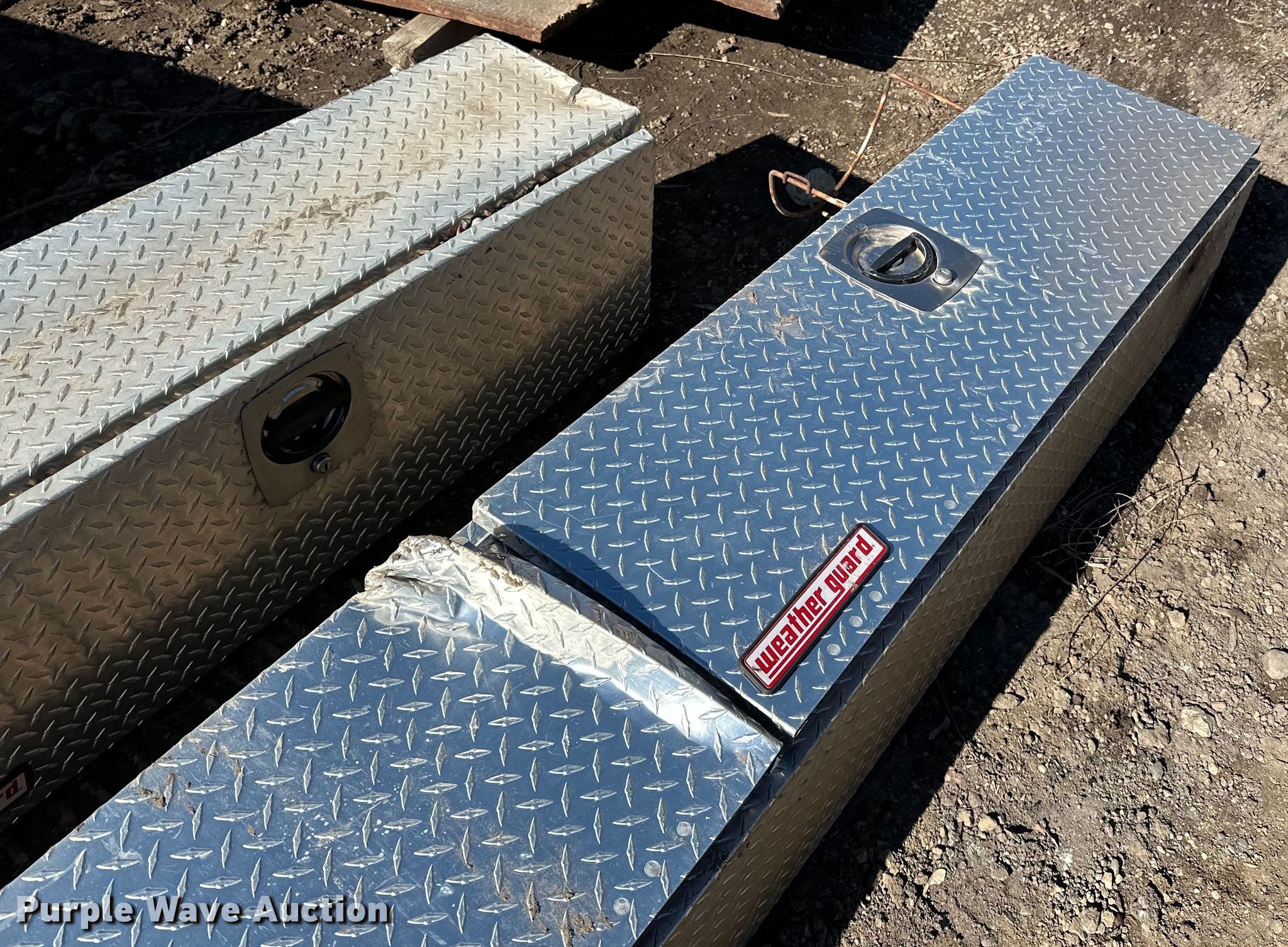 (3) toolboxes. Weatherguard 8' L x 16" W x 12" H, Northern 5' 11 L x 21 W" x 17" H, 6' L x 4' 3" W x 6" H. Turner Bros Inc. - Open inspection April 13 and April 18. 12540 Nevada Ave S. Savage, MN 55378