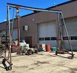 A-frame hoist. Dimensions 16' 6" L x 7' 6" W x 13' 11" H, Capacity: 4,000 lbs. Turner Bros Inc. - Open inspection April 13 and April 18. 12540 Nevada Ave S. Savage, MN 55378