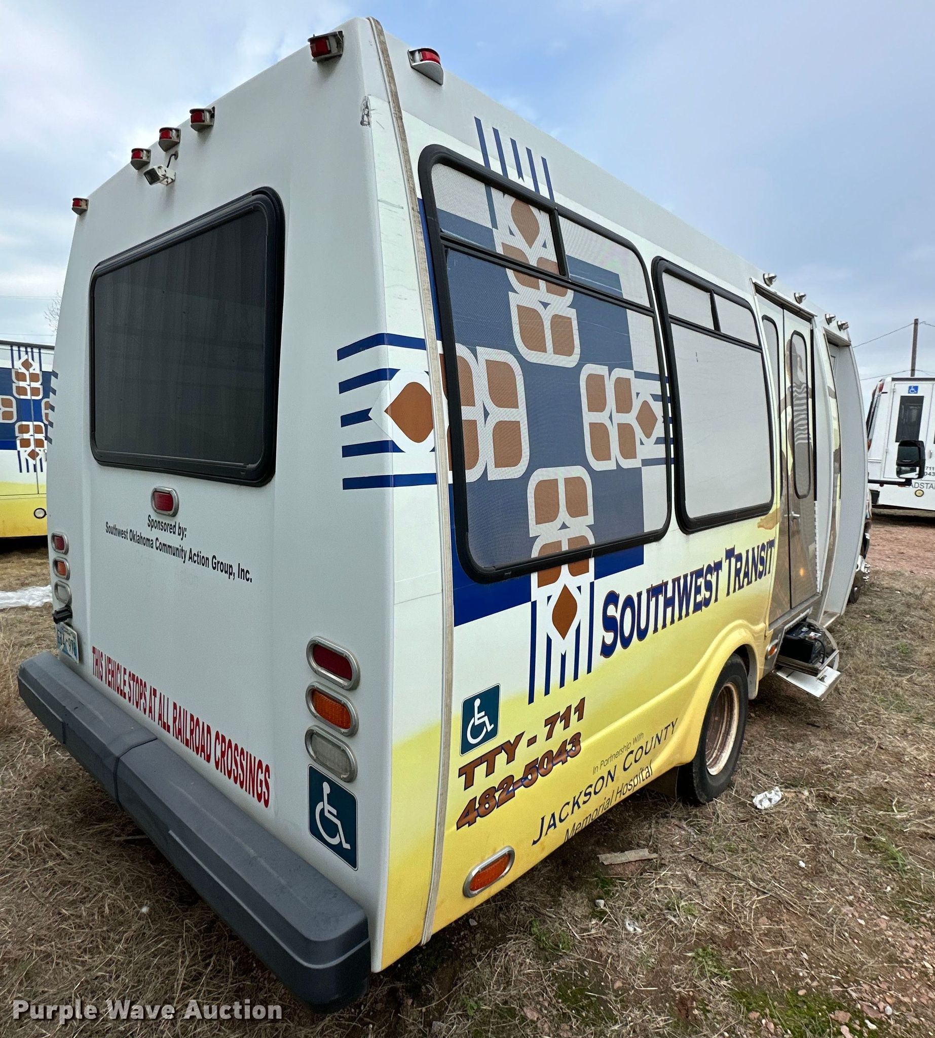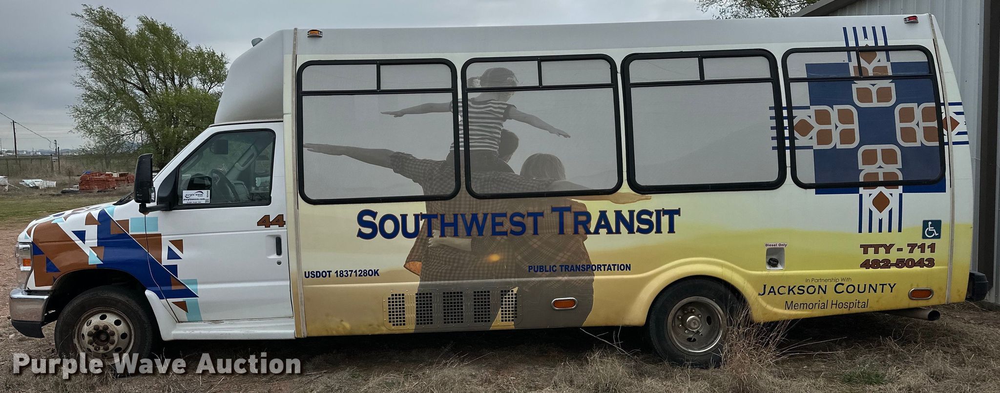 2009 Ford E450 shuttle bus. Miles: 224,327 on odometer, VIN: 1FDXE45P49DA92177. Engine Displacement: 6.0L, Cylinders: 8, Fuel type: Diesel. Transmission Automatic. Chassis Axles: Single, Suspension: Spring, Brakes: Hydraulic, GVWR: 14,500 lbs. Interior AC, Heat, Cruise control, Electric passenger sliding door, Passengers: 18, Wheelchair lift. Tires Size: 225/75R16. Notes Non-operational unit. Oklahoma title. Title distribution may be delayed up to 30 days from verification of funds. Southwest Oklahoma Community Action. 1401 Ridge Crest Road. Altus , OK 73521
