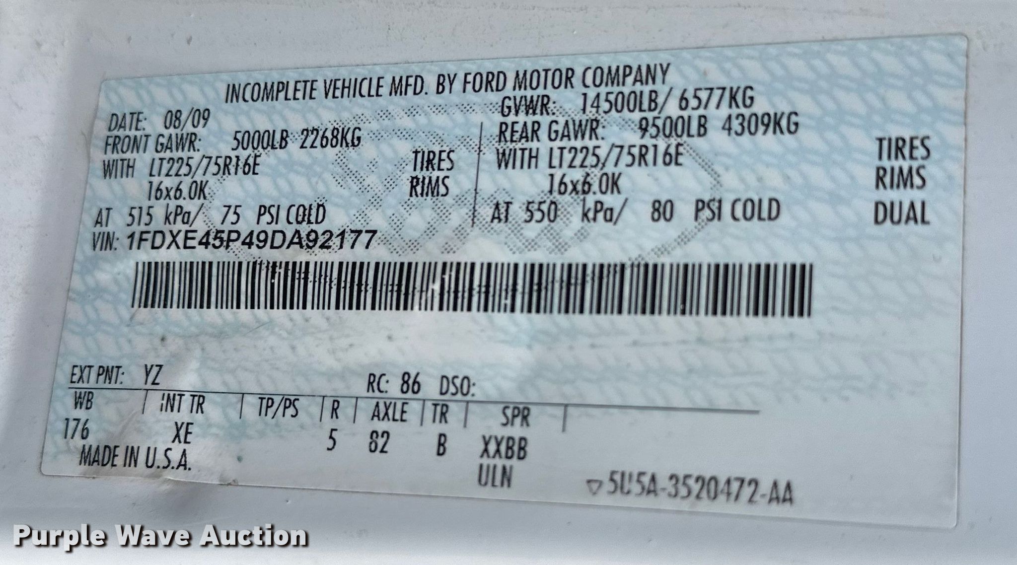 - VIN: 1FDXE45P49DA92177