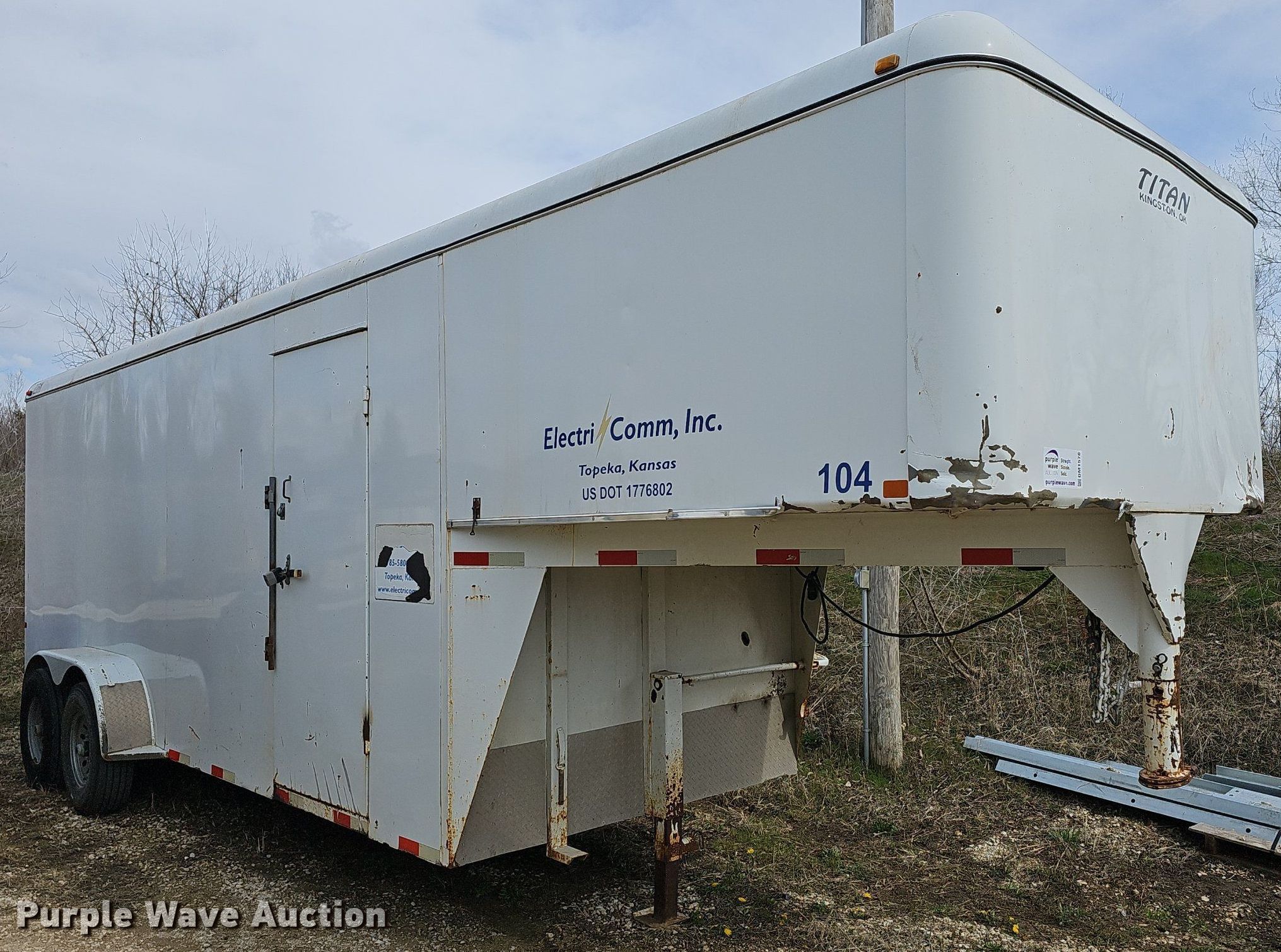 Purple Wave is selling a used Enclosed Cargo Trailer in Kansas. This item is a 2008 Titan enclosed cargo trailer with the following: VIN: 5DZGN620581005836, Unit #: 104
