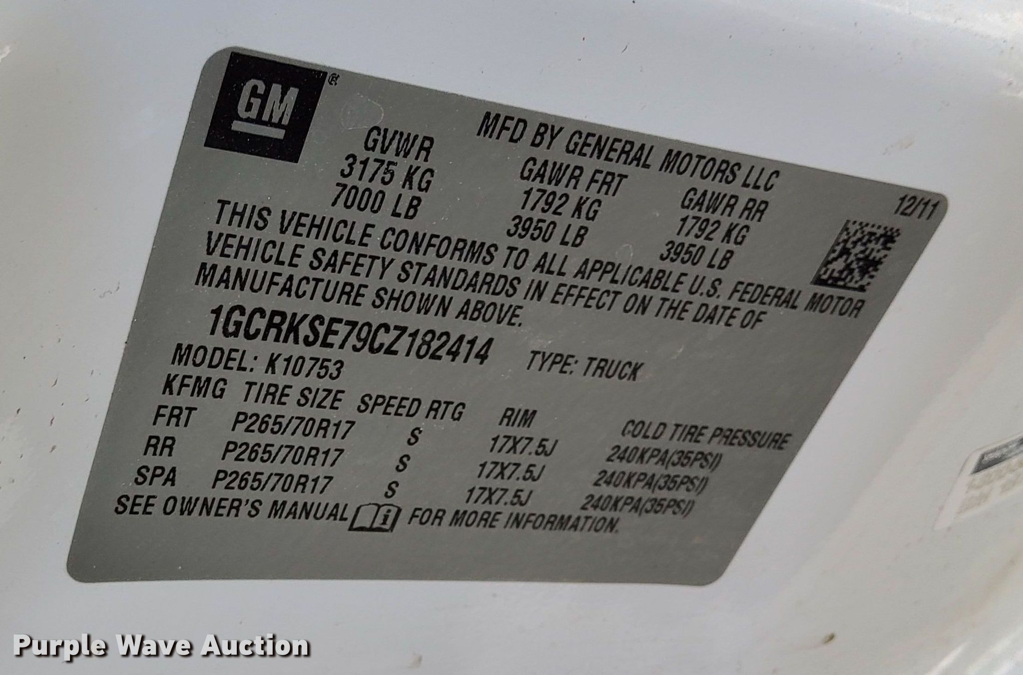 - VIN: 1GCRKSE79CZ182414