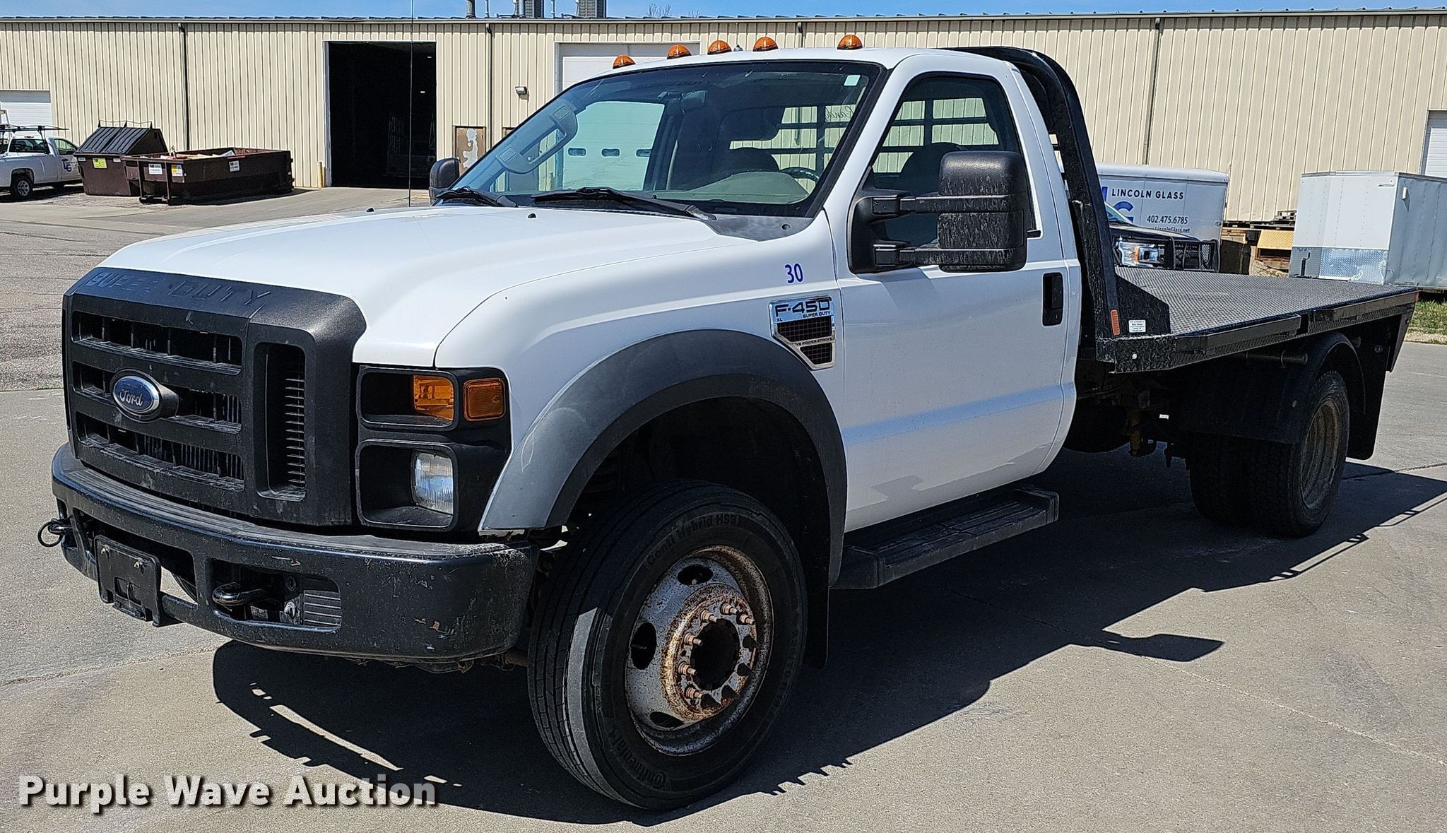 Purple Wave is selling a used Flat Bed Truck in Nebraska. This item is a 2008 Ford F450 Super Duty XL flatbed truck with the following: Miles: 183,612 on odometer, VIN: 1FDXF46RX8EA36105