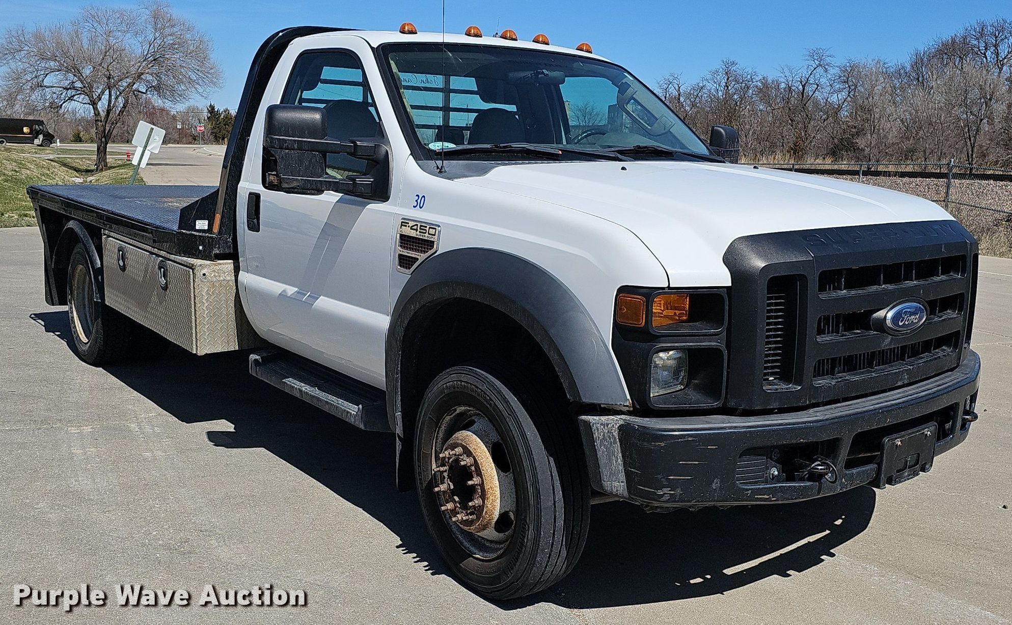 This 2008 Ford F450 Super Duty XL flatbed truck will sell to the highest bidder regardless of price.