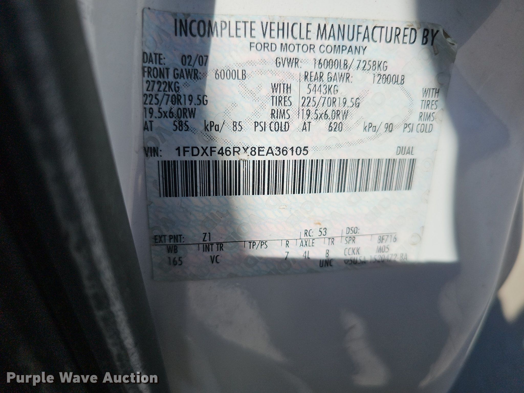 - VIN: 1FDXF46RX8EA36105