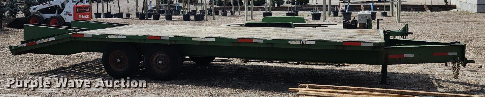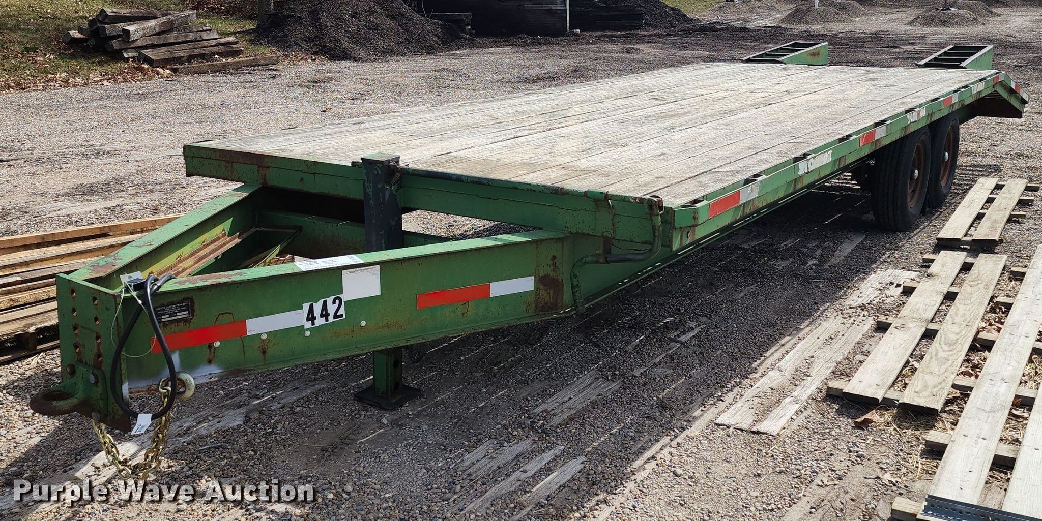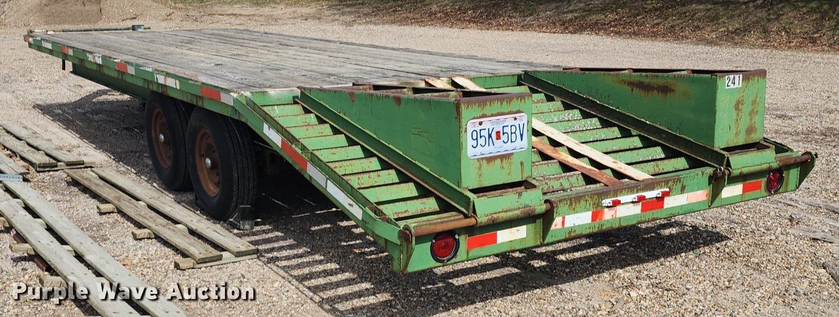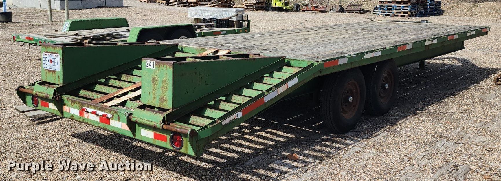 2001 Scotts Custom Trailers equipment trailer. VIN: 1S9FP25221E359088. Dimensions Overall: 30'L x 101" W, Deck: 20'L x 101" W, Tail length: 5', Ramps: Manual Length: 5'. Features Deck type: Wood. Chassis Hitch: Pintle, Landing gear: Single, Suspension: Spring, Brakes: Electric, Axles: Tandem. Tires Size: 225/90D16. Notes Unknown operating condition of brakes. Missouri title. GrassPad Inc.. 11500 Northwest Barry Road. Kansas City, MO 64153