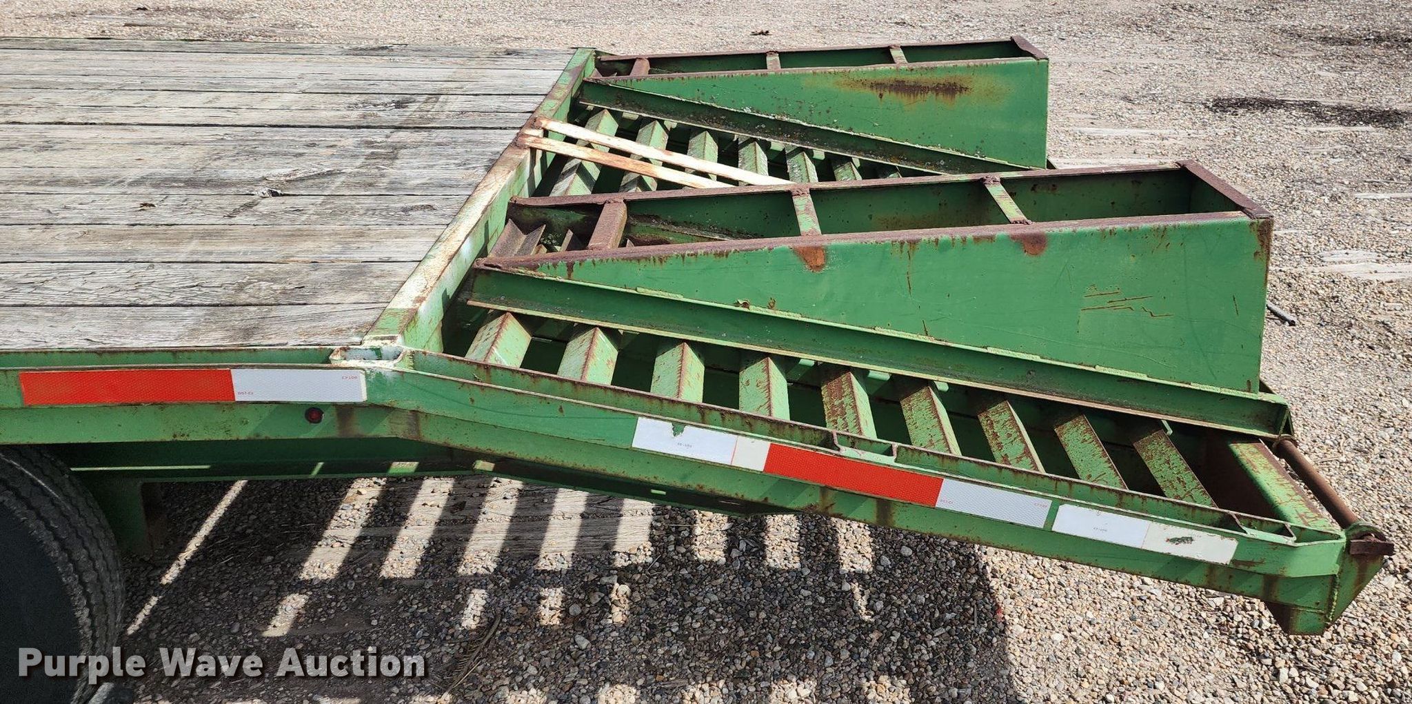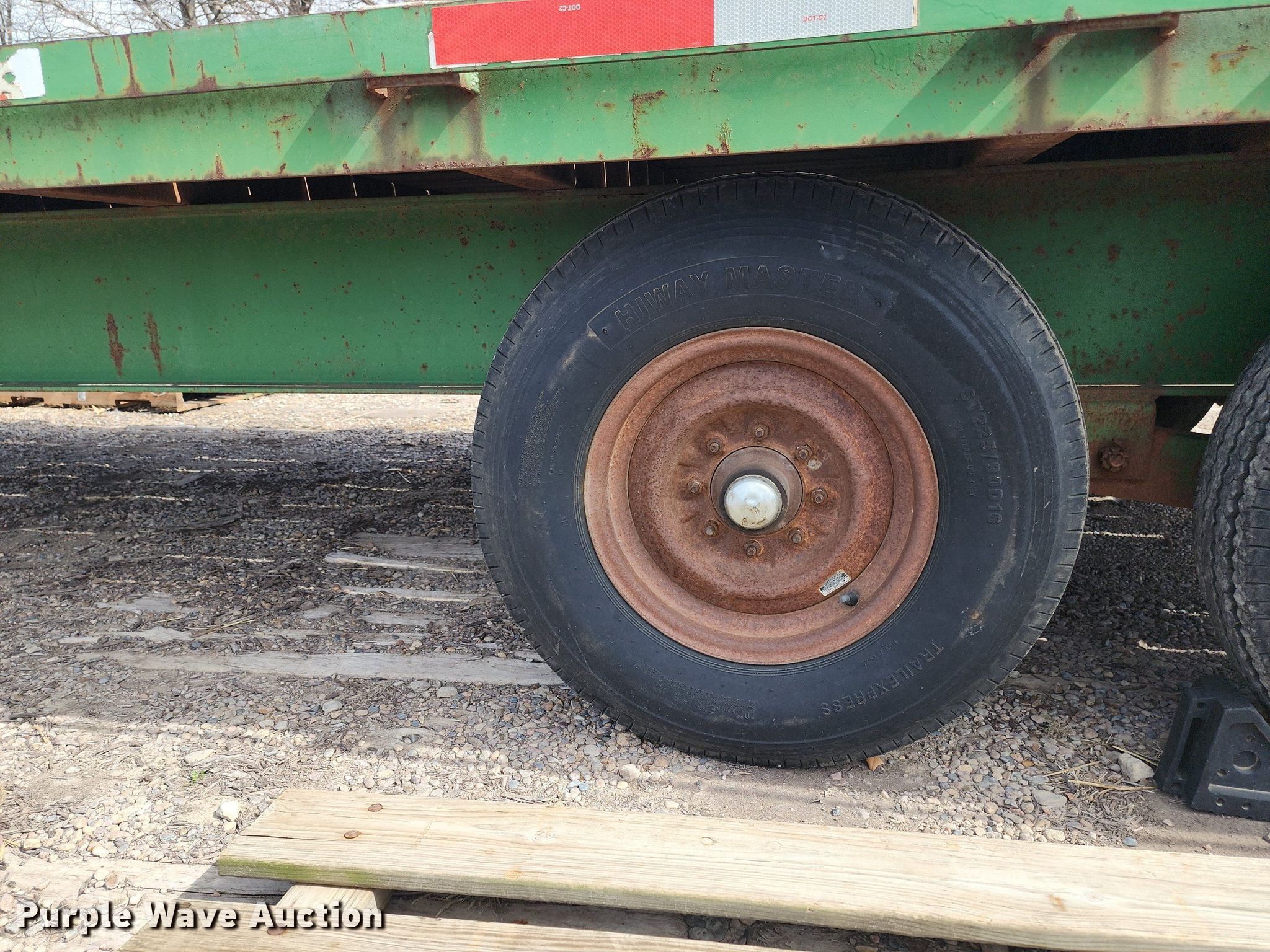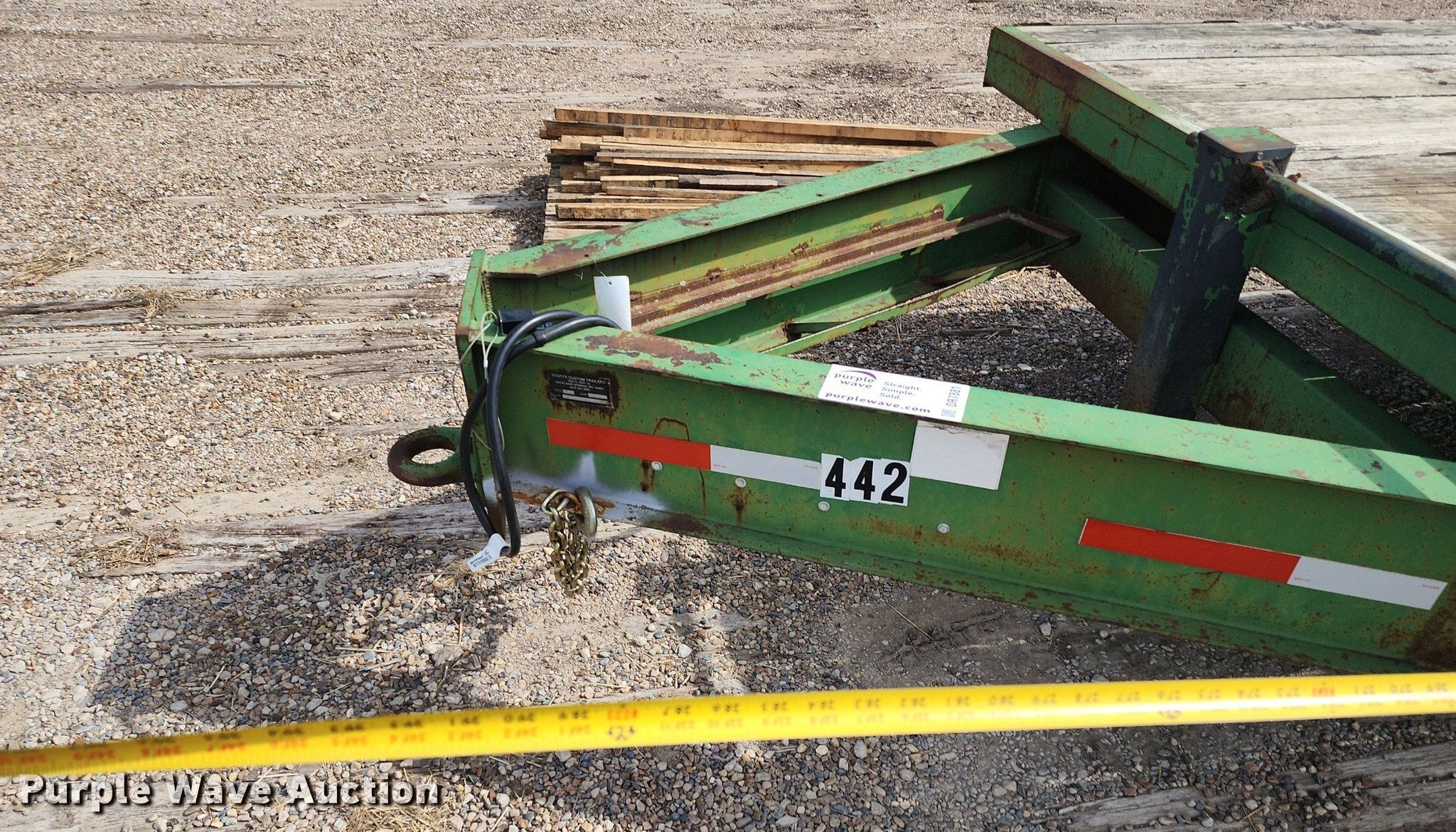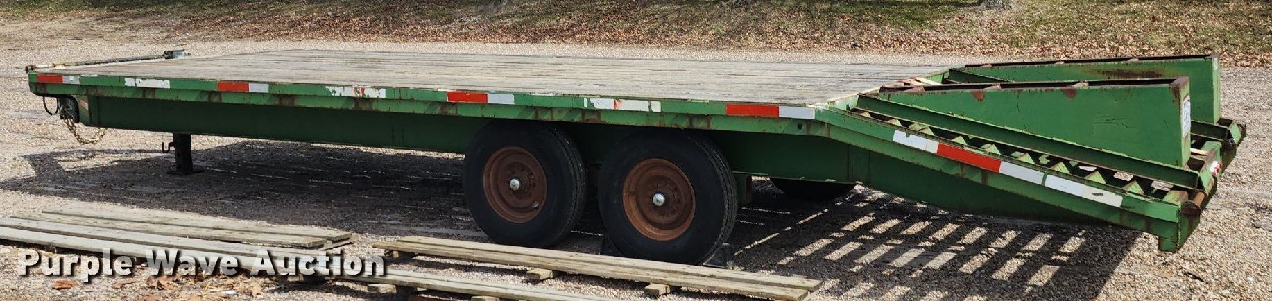 2001 Scotts Custom Trailers equipment trailer. VIN: 1S9FP25221E359088. Dimensions Overall: 30'L x 101" W, Deck: 20'L x 101" W, Tail length: 5', Ramps: Manual Length: 5'. Features Deck type: Wood. Chassis Hitch: Pintle, Landing gear: Single, Suspension: Spring, Brakes: Electric, Axles: Tandem. Tires Size: 225/90D16. Notes Unknown operating condition of brakes. Missouri title. GrassPad Inc.. 11500 Northwest Barry Road. Kansas City, MO 64153