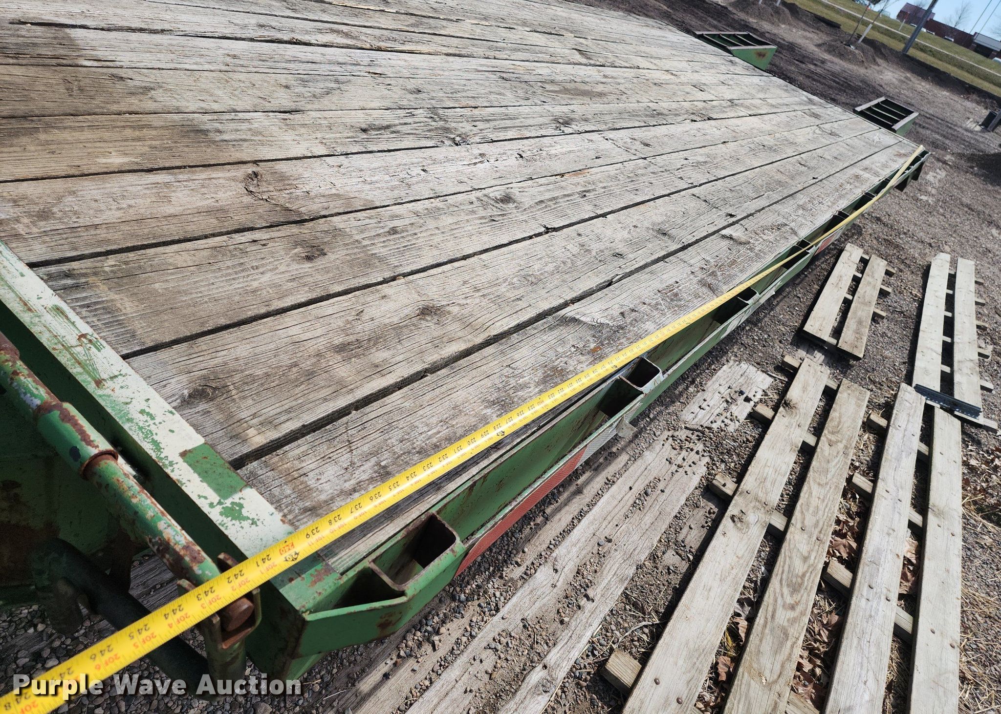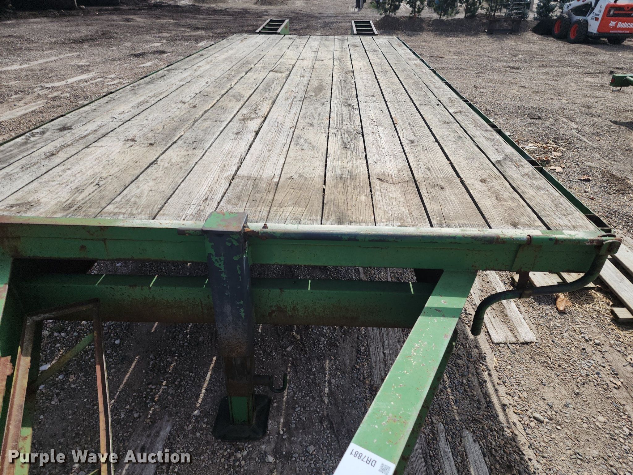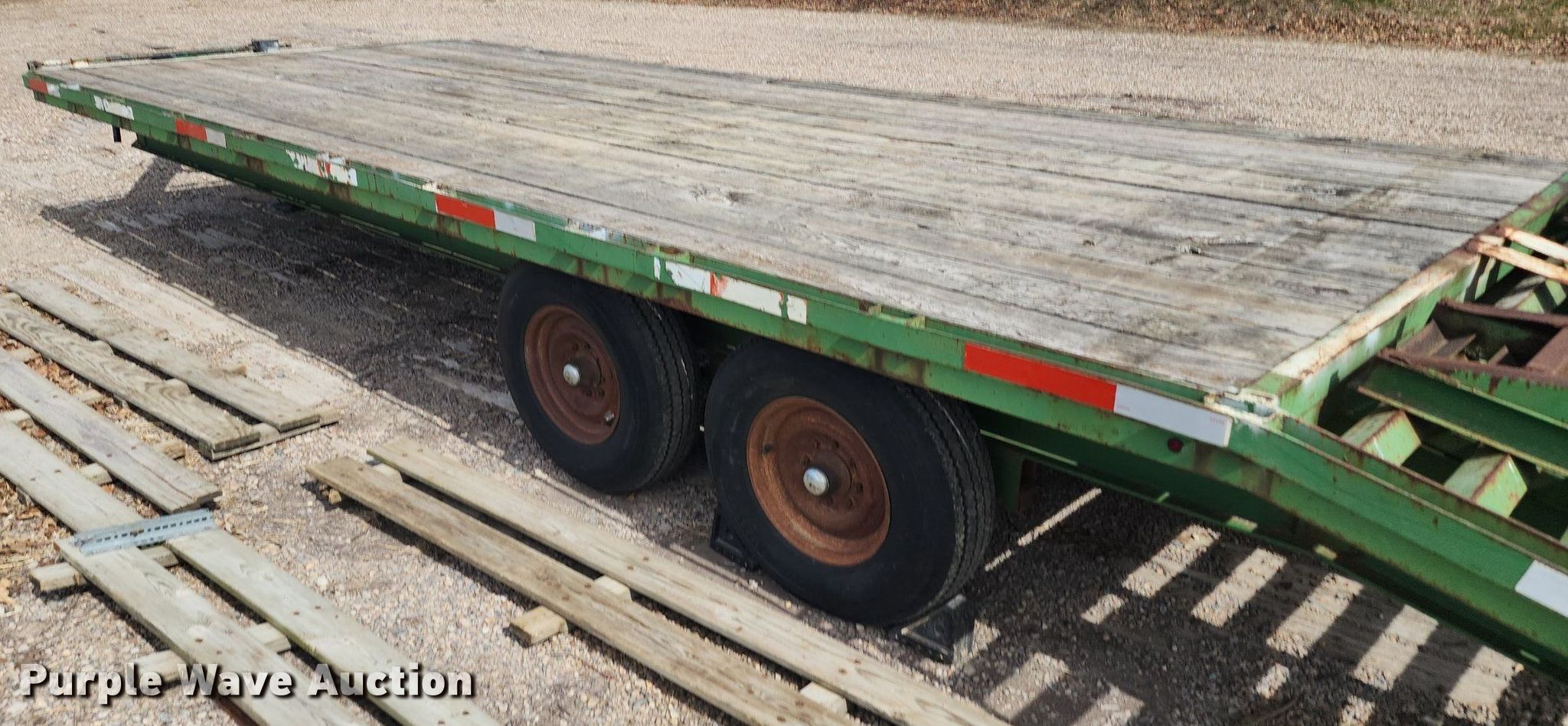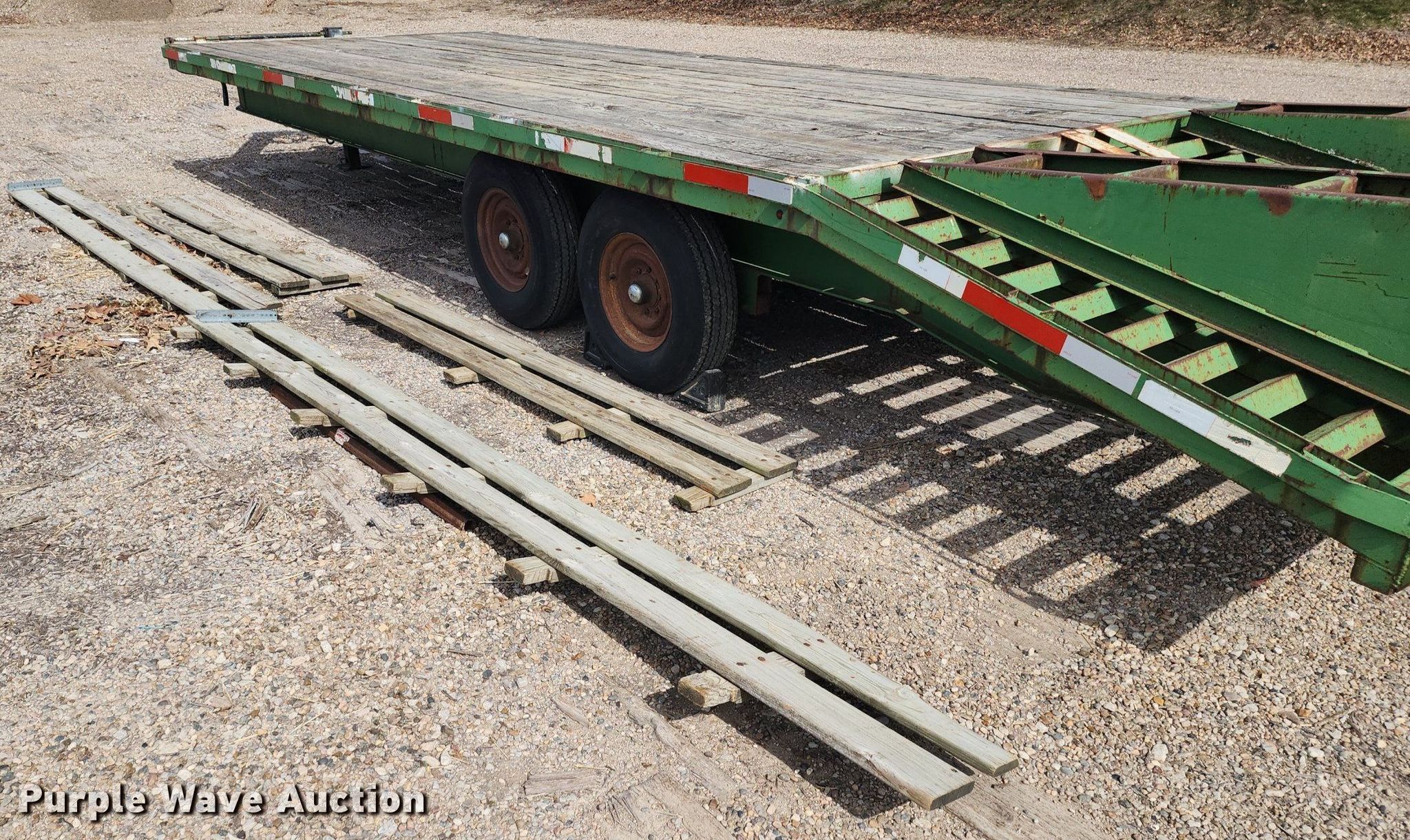 2001 Scotts Custom Trailers equipment trailer. VIN: 1S9FP25221E359088. Dimensions Overall: 30'L x 101" W, Deck: 20'L x 101" W, Tail length: 5', Ramps: Manual Length: 5'. Features Deck type: Wood. Chassis Hitch: Pintle, Landing gear: Single, Suspension: Spring, Brakes: Electric, Axles: Tandem. Tires Size: 225/90D16. Notes Unknown operating condition of brakes. Missouri title. GrassPad Inc.. 11500 Northwest Barry Road. Kansas City, MO 64153