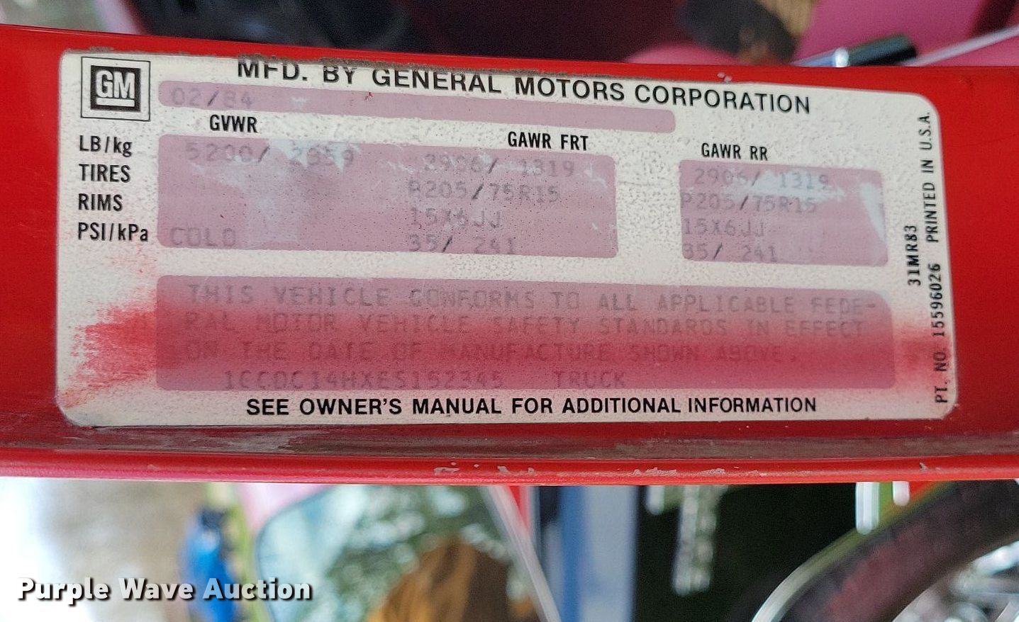 Purple Wave is selling a used 1/2 Ton Pickup or Van in Missouri. This item is a 1984 Chevrolet C10 pickup truck with the following: Miles: 64,728 on odometer, VIN: 1GCDC14HXES152345