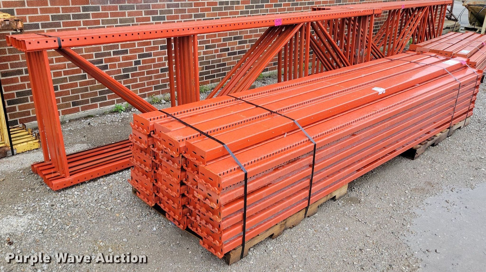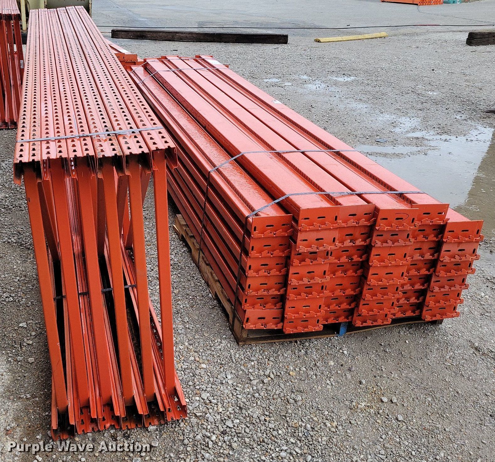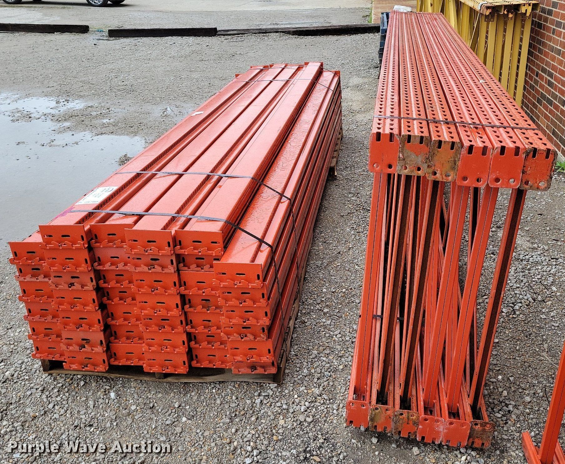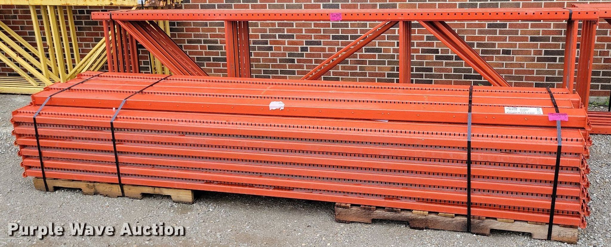 Purple Wave is selling a used Pallet Racking in Missouri. This item is a Pallet racking with the following: Unit #: 866077, (6) 42" x 168" uprights, (40) 144" cross beams