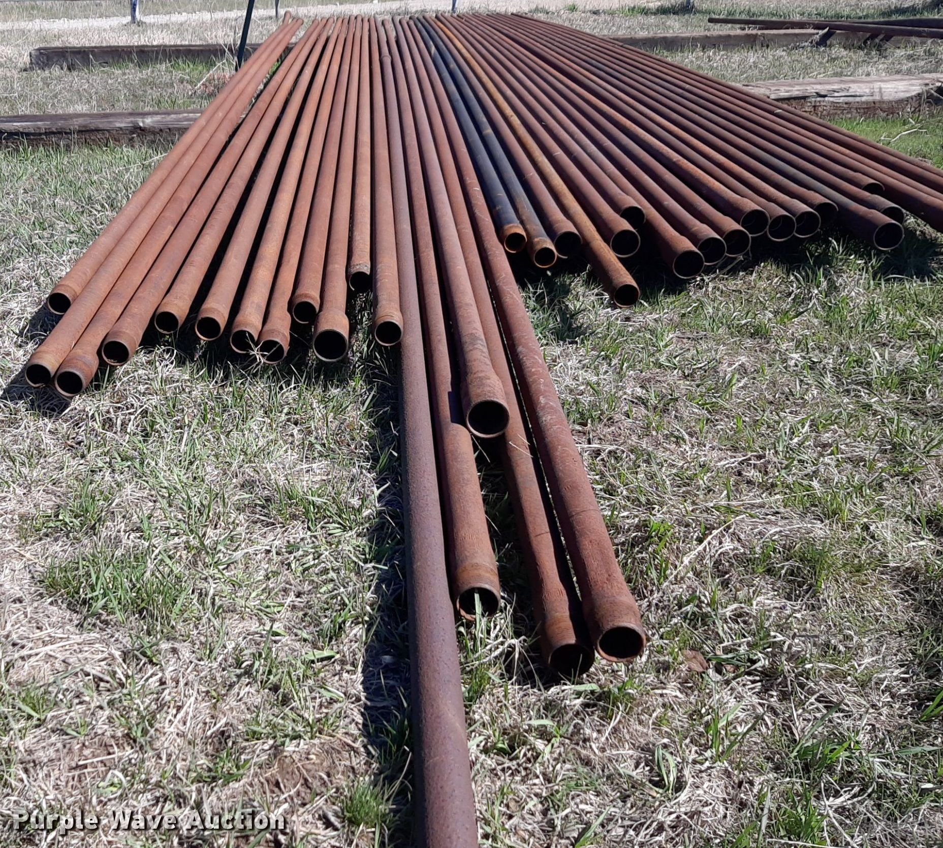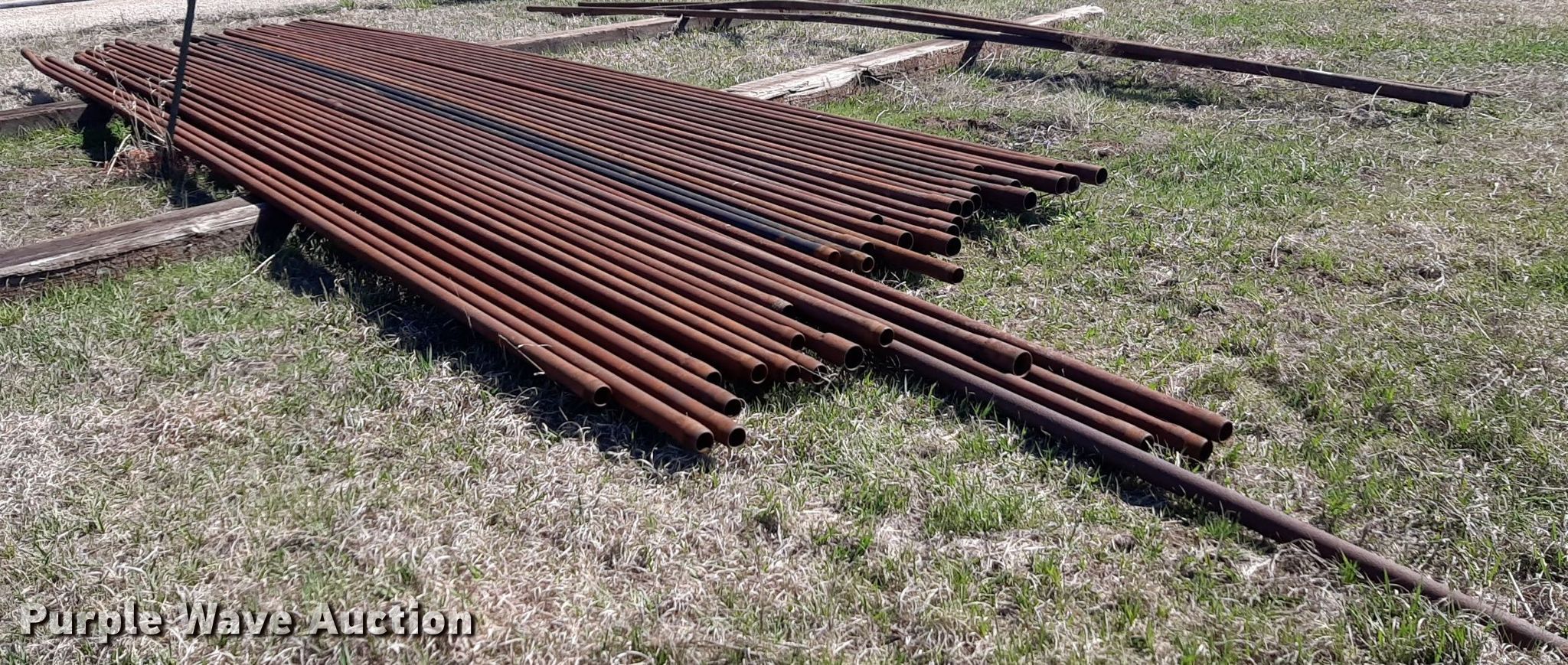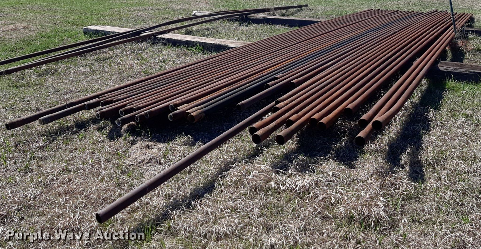 Purple Wave is selling a used Oilfield Equip. in Kansas. This item is a Approximately 43 joints of 30' L x 2 3/8" diameter oilfield pipe with the following: Approximately 43 joints of 30' L x 2 3/8" diameter oilfield pipe. Butler Brothers Inc.. Winfield, KS 67156