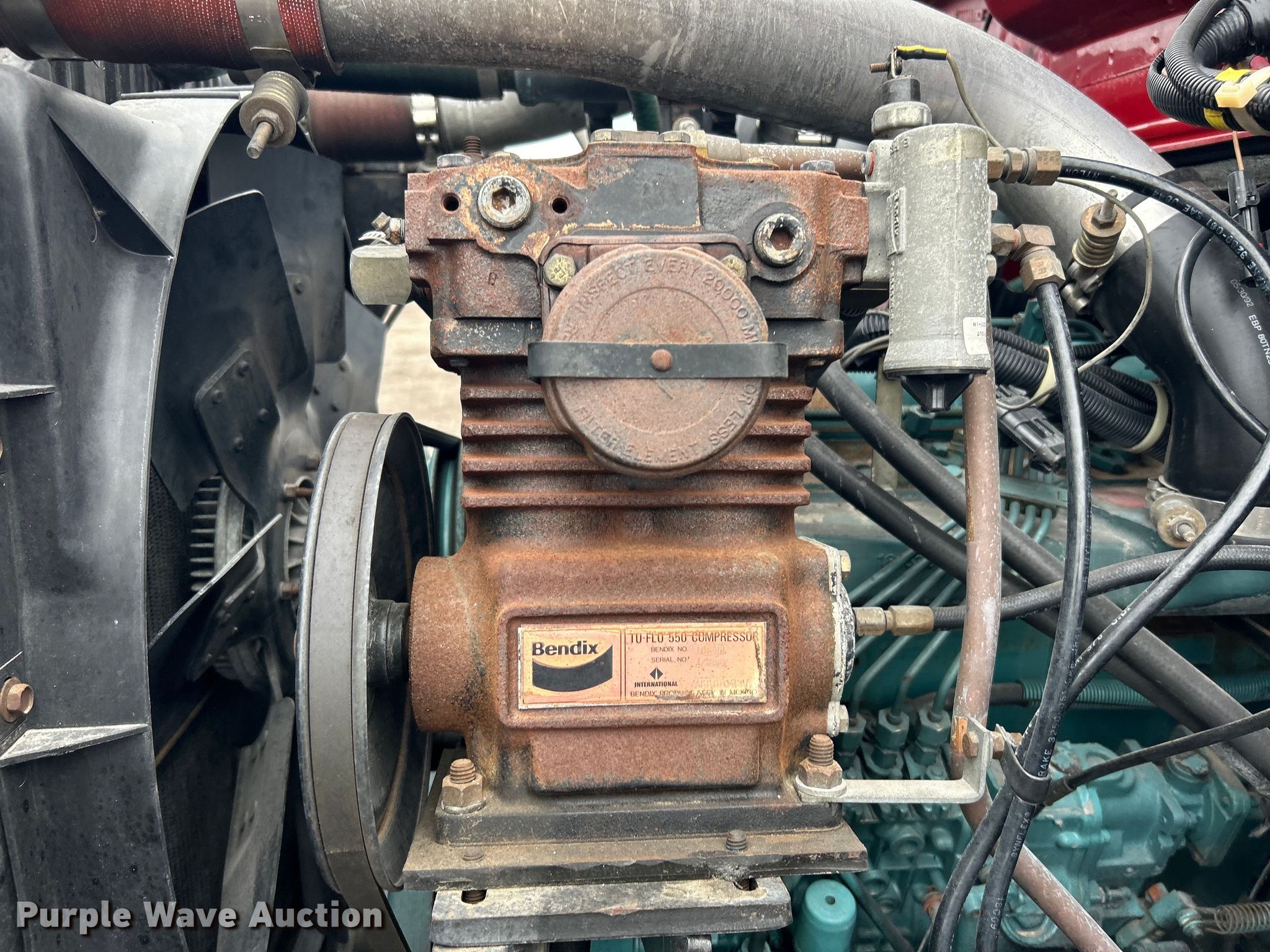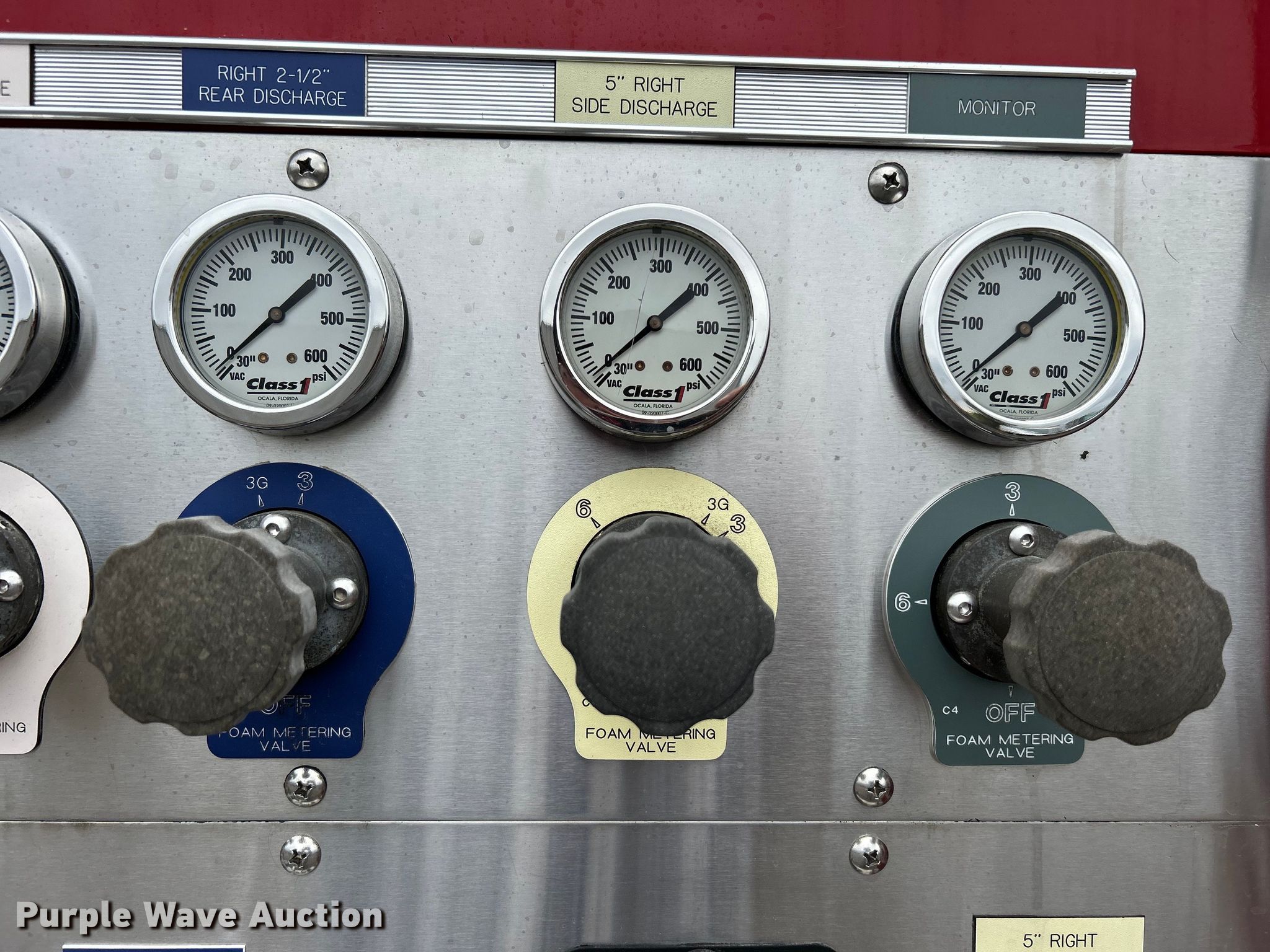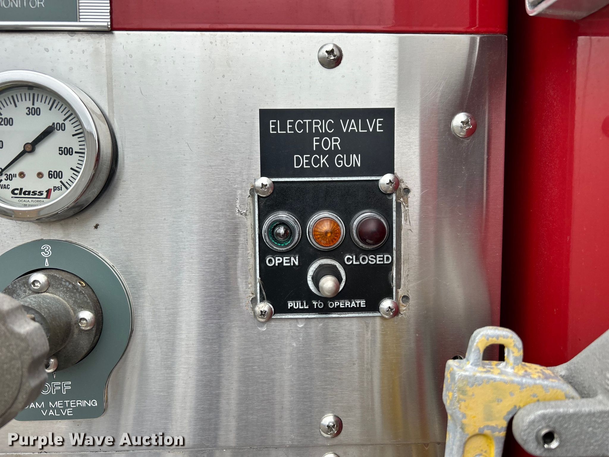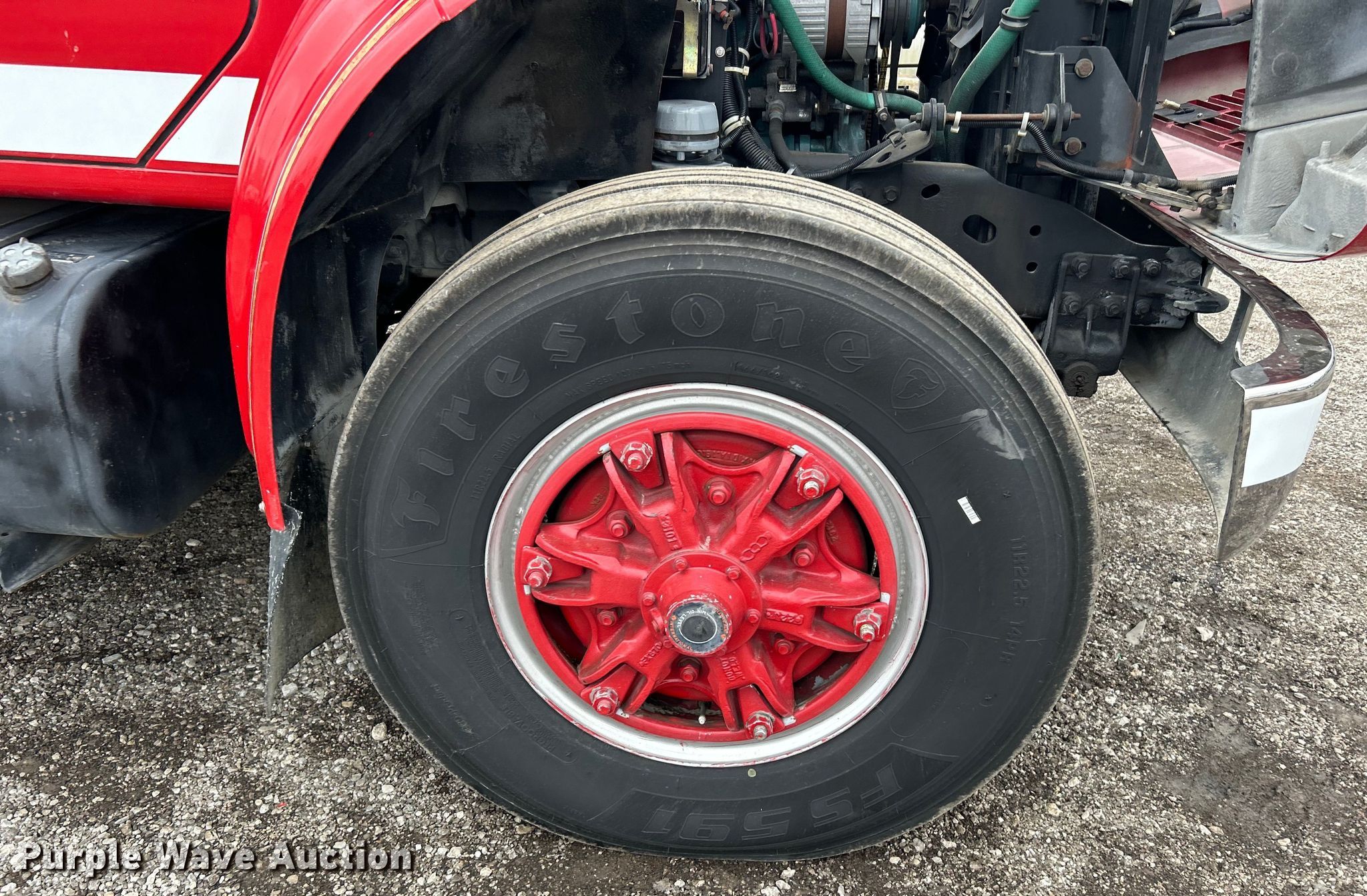 1993 International 4900 pumper fire truck. Miles: 17,549 on odometer, Hours: 1,382 on meter, VIN: 1HTSDN6R9PH495961. Engine International DT466, Displacement: 7.6L, Cylinders: 6, Fuel type: Diesel. Transmission Automatic. Chassis Axles: Single, Suspension: Spring, Brakes: Air, GVWR: 36,220 lbs. Interior AC/Heat. Features Fire truck body Elevated deck gun, Pump 1,519 gpm, Generator Onan 6DJBFL, Serial: H920479606, Fuel type: Diesel, kW: 6, PA/ siren controls. Tires Size: 11R22.5. Notes Windshield chipped or cracked. Oklahoma classic title. Mileage has not been verified. Exempt will be written in the odometer disclosure on the title. Title distribution may be delayed up to 14 days from verification of funds. 15107 North 137th East Avenue. Collinsville, OK 74021