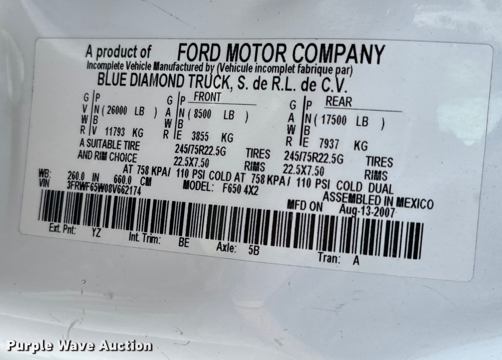 - VIN: 3FRWF65W08V662174