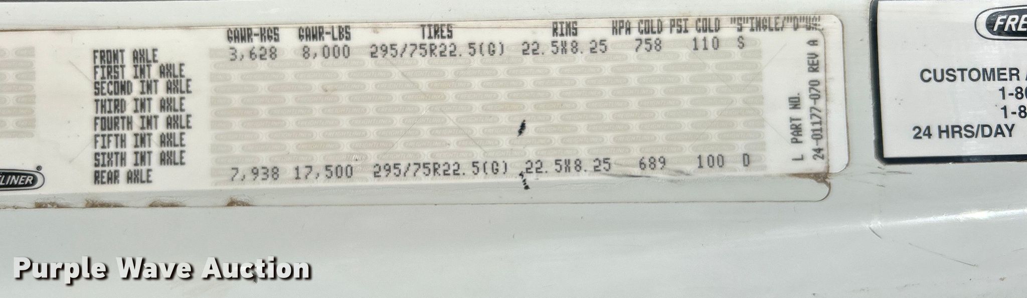 2005 Freightliner Business Class M2 flatbed truck. Miles: 165,173 on odometer, Hours: 11,243 on meter, VIN: 1FVACWCS75HU54545. Engine Mercedes Benz OM906, Displacement: 388 C.I.D., Cylinders: 6, Fuel type: Diesel, HP: 260. Transmission Manual, Speed: 6. Chassis Axles: Single, Suspension: Spring, Brakes: Air, GVWR: 25,500 lbs. Interior AC, Heat, Heated mirrors, Cruise control, Brake controller. Features Flatbed 16' L x 92" W. Tires Size: 295/75R22.5. Notes Windshield chipped or cracked. Oklahoma title. Title distribution may be delayed up to 14 days from verification of funds. 15107 North 137th East Avenue. Collinsville, OK 74021