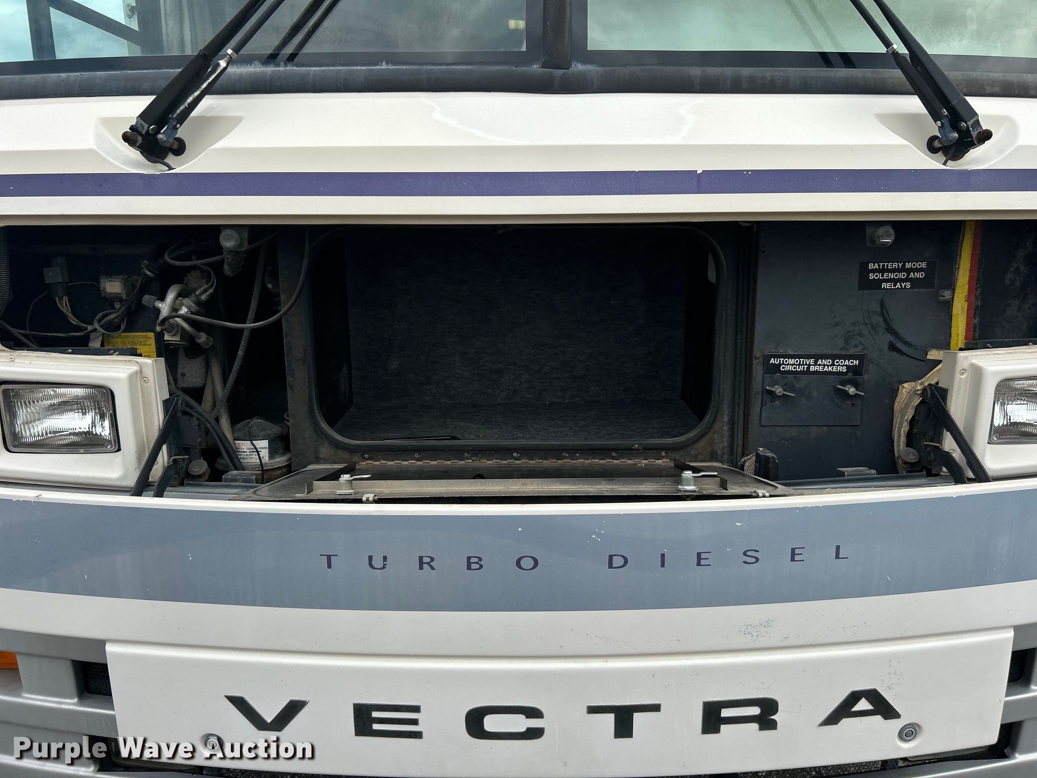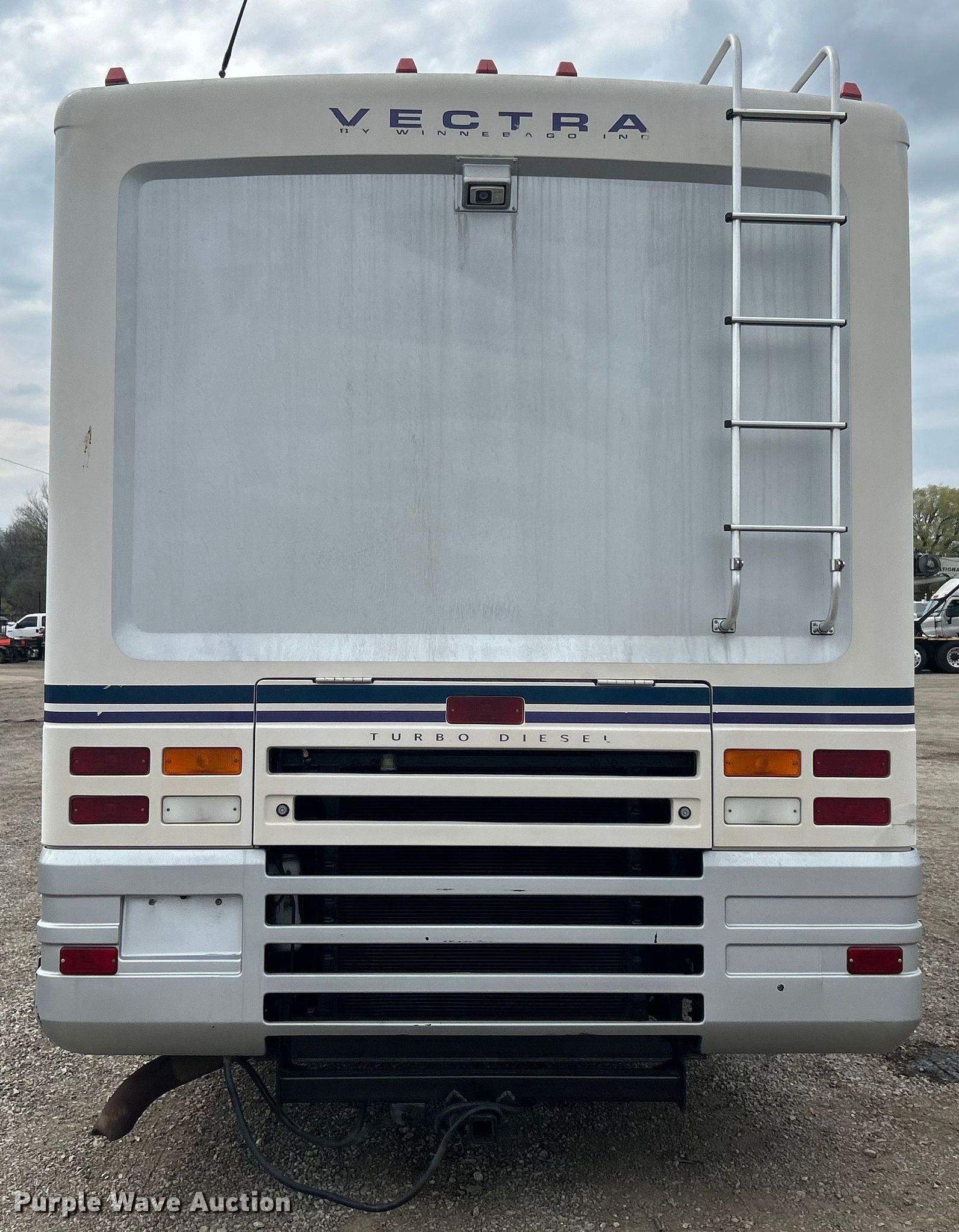 1994 Winnebago Vectra RV. Miles: 96,172 on odometer, Camper length: 35', VIN: 4S7UT9J15RC014216. Engine Cummins, Displacement: 5.9L, Cylinders: 6, Fuel type: Diesel. Transmission Automatic. Chassis Axles: Single, Suspension: Spring, Brakes: Air, GVWR: 20,500 lbs. Interior Kitchen: Sink, Refrigerator, Freezer, Microwave, Stove: Propane, Living room: Table, Couch, Bathroom, Beds: 1 Bed type: Double, TVs: 2, Heater, AC units: 1. Features Awnings: 1 Awning type: Manual, Auto leveler, Generator Onan Marquis 6500LP, Fuel type: LPG, Rear hitch. Tires Size: 225/70R19.5. Oklahoma classic title. Title distribution may be delayed up to 14 days from verification of funds. 15107 North 137th East Avenue. Collinsville, OK 74021