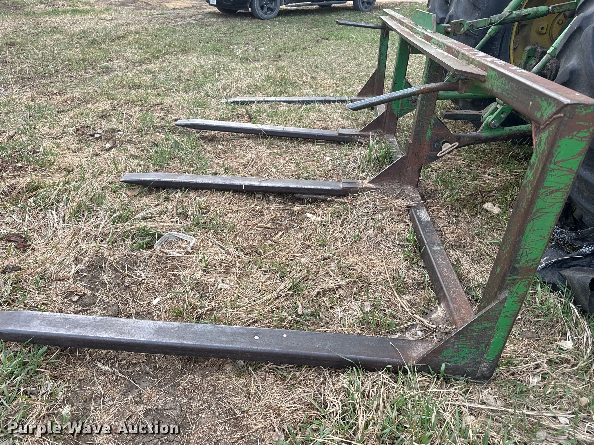 Purple Wave is selling a used Hay Handling in Kansas. This item is a Bale moving equipment with the following: Bale mover, Bale capacity width: 5', Hitch: Three point, Hydraulic squeeze, John Deere bale mover, Bale capacity: 2, Hitch: Three point, Width: 11'