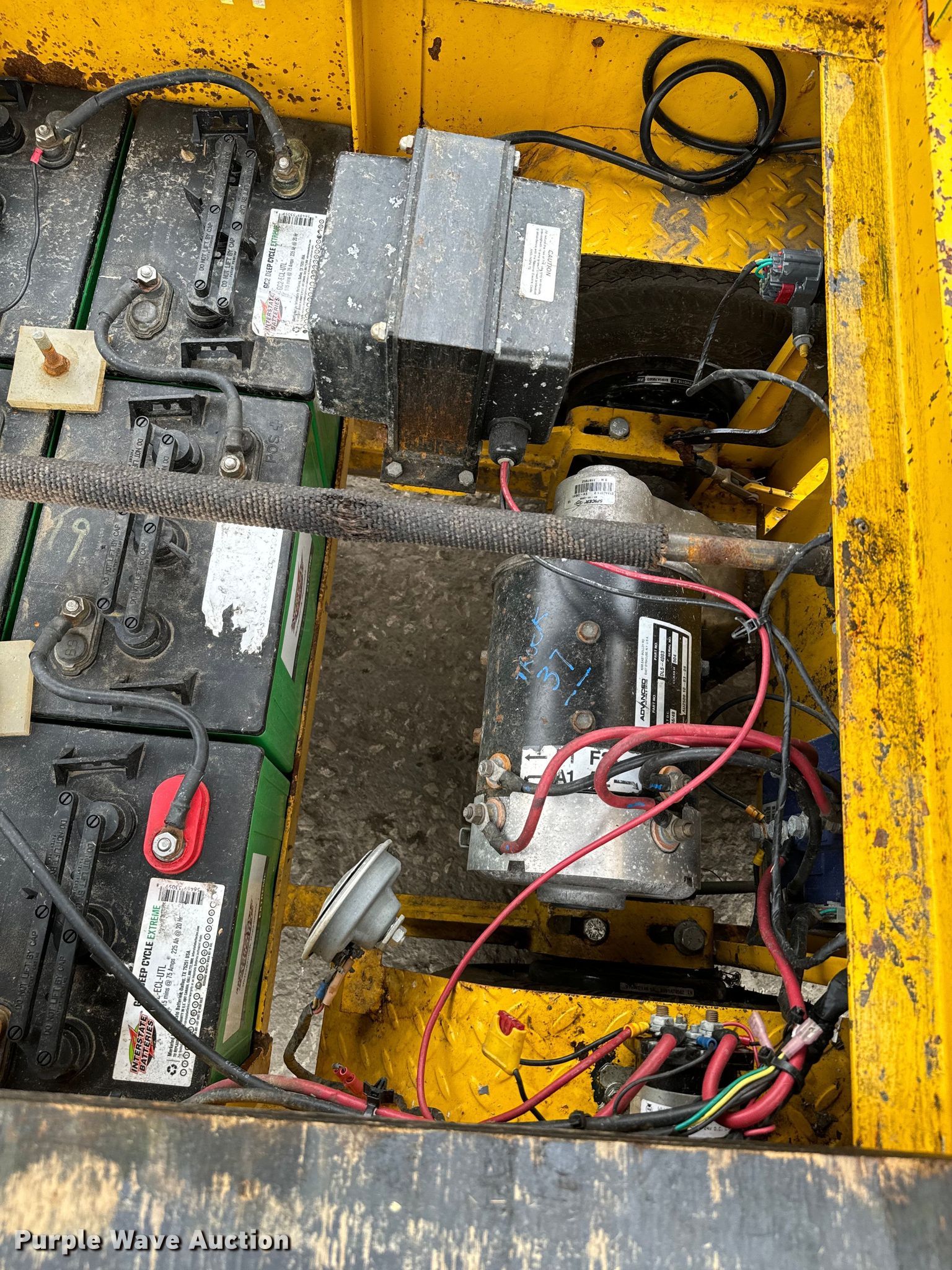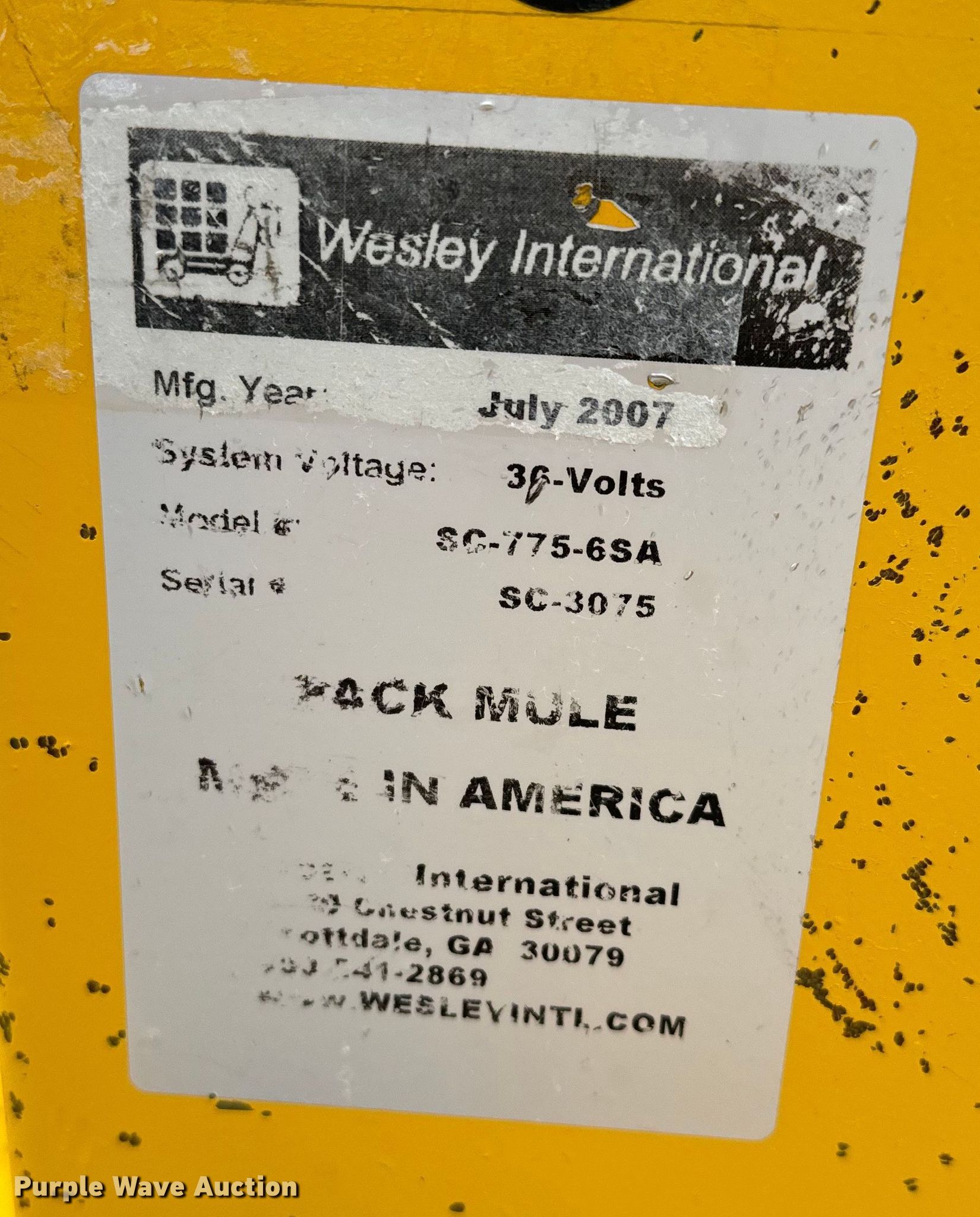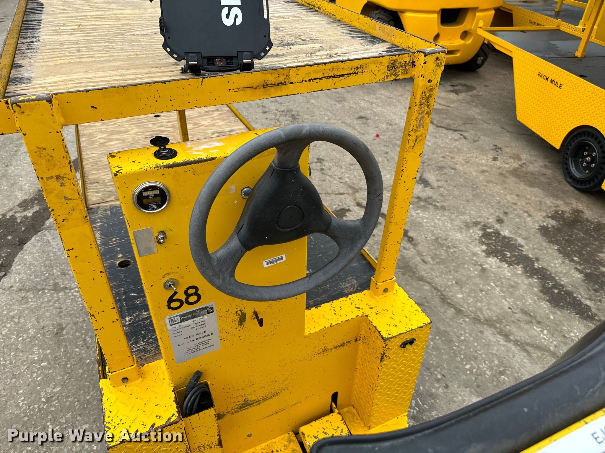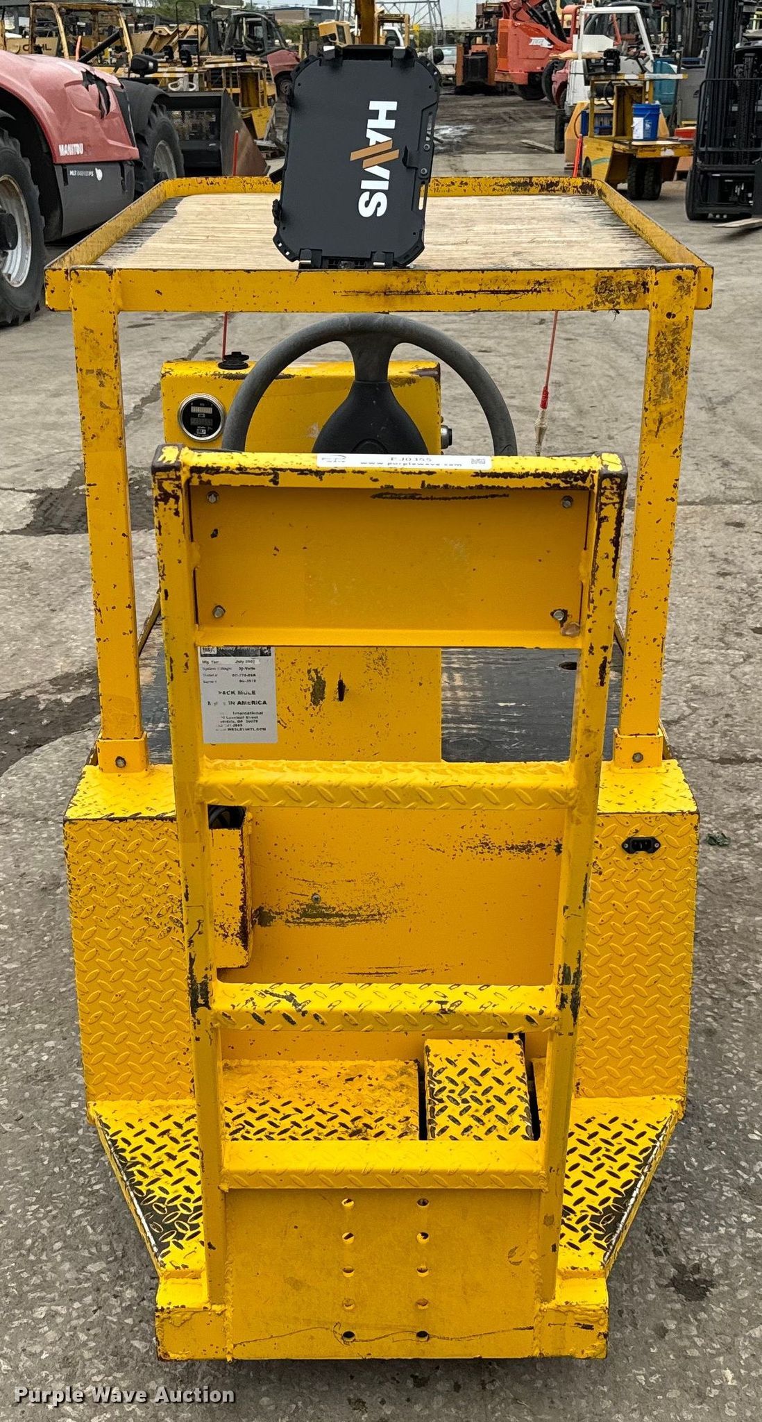 Park Mule SC-775-6SA utility cart. Hours: 29,566 on meter, Serial: SC-3075. Electric Motor Volts: 36. Features Top Platform: 49"x32", Bottom platform: 69"x32". Tires Size: 4.00-8. Scotts Equipment. 2060 North Loop 12. Irving, TX 75061