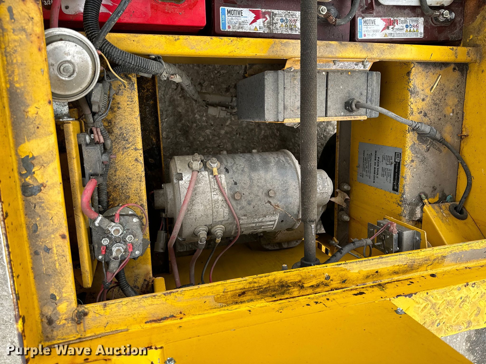Pack Mule SC-775-6CA utility cart. Hours: 2,777 on meter, Serial: SC5952. Electric Motor Volts: 36. Features Top Platform: 49"x32", Bottom platform: 69"x32". Tires Size: 4.00-8. Scotts Equipment. 2060 North Loop 12. Irving, TX 75061