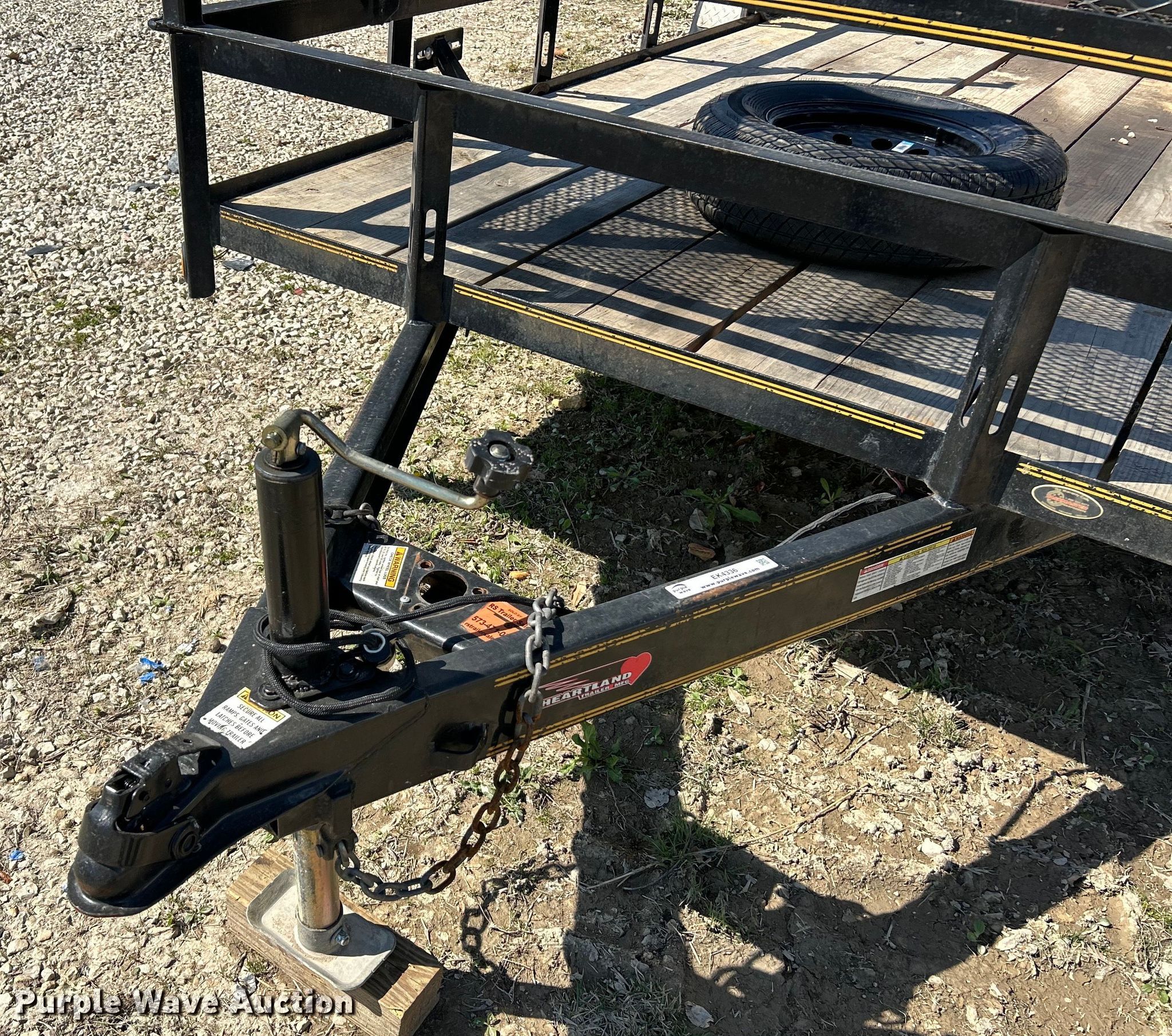 2017 Heartland 20' Tandem utility trailer. VIN: 430HD202XHM053815. Dimensions Overall: 23' 6" L, Deck: 20' L x 76" W, Ramps: Manual Length: 4'. Features Deck type: Wood. Chassis Landing gear: Single, Suspension: Spring, Brakes: Electric, Axles: Tandem, GVWR: 7,000 lbs, GAWR: 3,500 lbs. Tires Steel wheels, Size: ST205/75R15. Missouri title. Title distribution may be delayed up to 14 days from verification of funds. Stump-I-Cide, LLC. Pacific, MO 63069