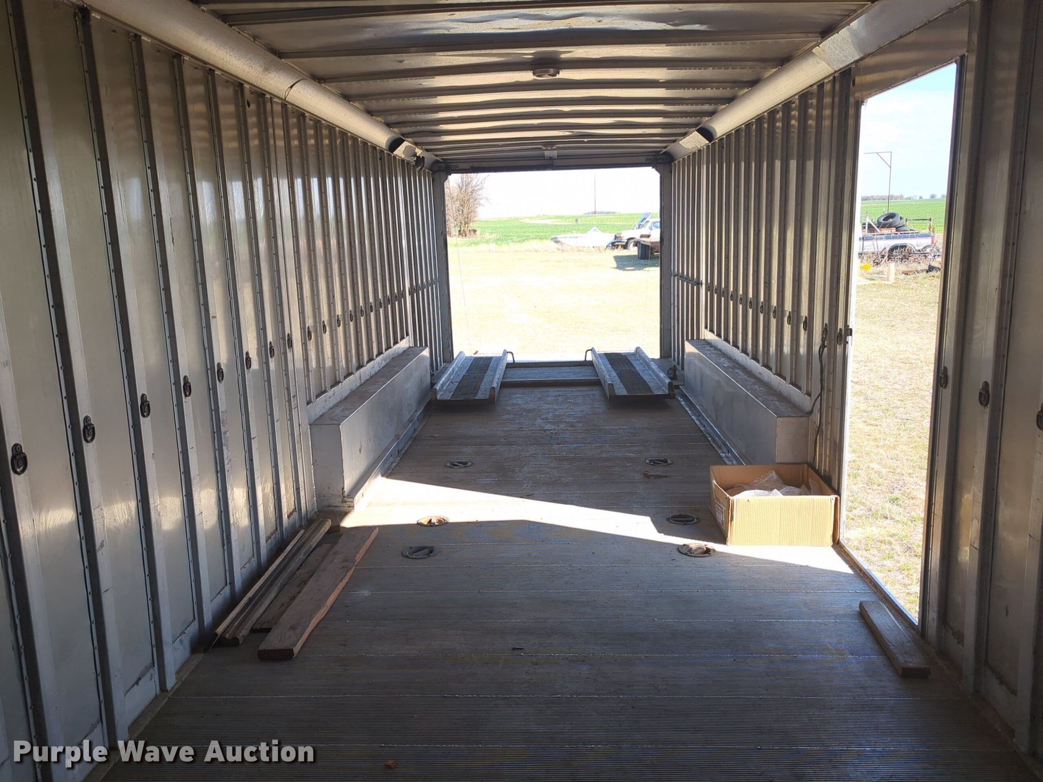 1989 Shop built enclosed car carrier. VIN: 48HCA403XK1000643. Dimensions Overall: 47' 6" L, Deck: 40', Ramps: Manual Length: 84". Features Deck type: Aluminum, Winch, Hydraulic lift ramp. Chassis Landing gear: Dual, Suspension: Spring, Brakes: Electric, Axles: Triple, GVWR: 21,000 lbs, GAWR: 7,000 lbs. Tires Size: 7.50-16. Oklahoma title. Title distribution may be delayed up to 30 days from verification of funds. 17503 S. Banner. Ames, OK 73718