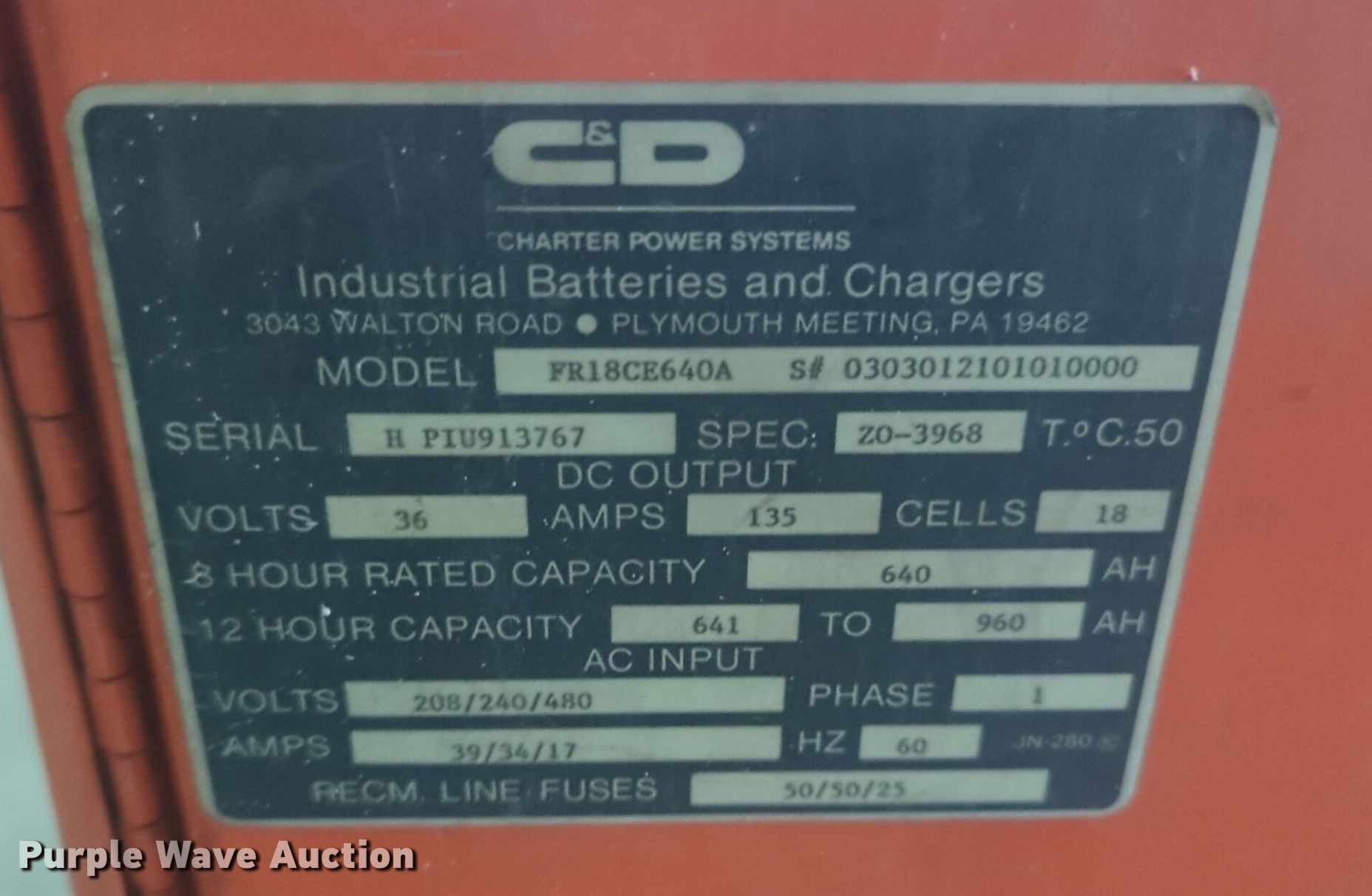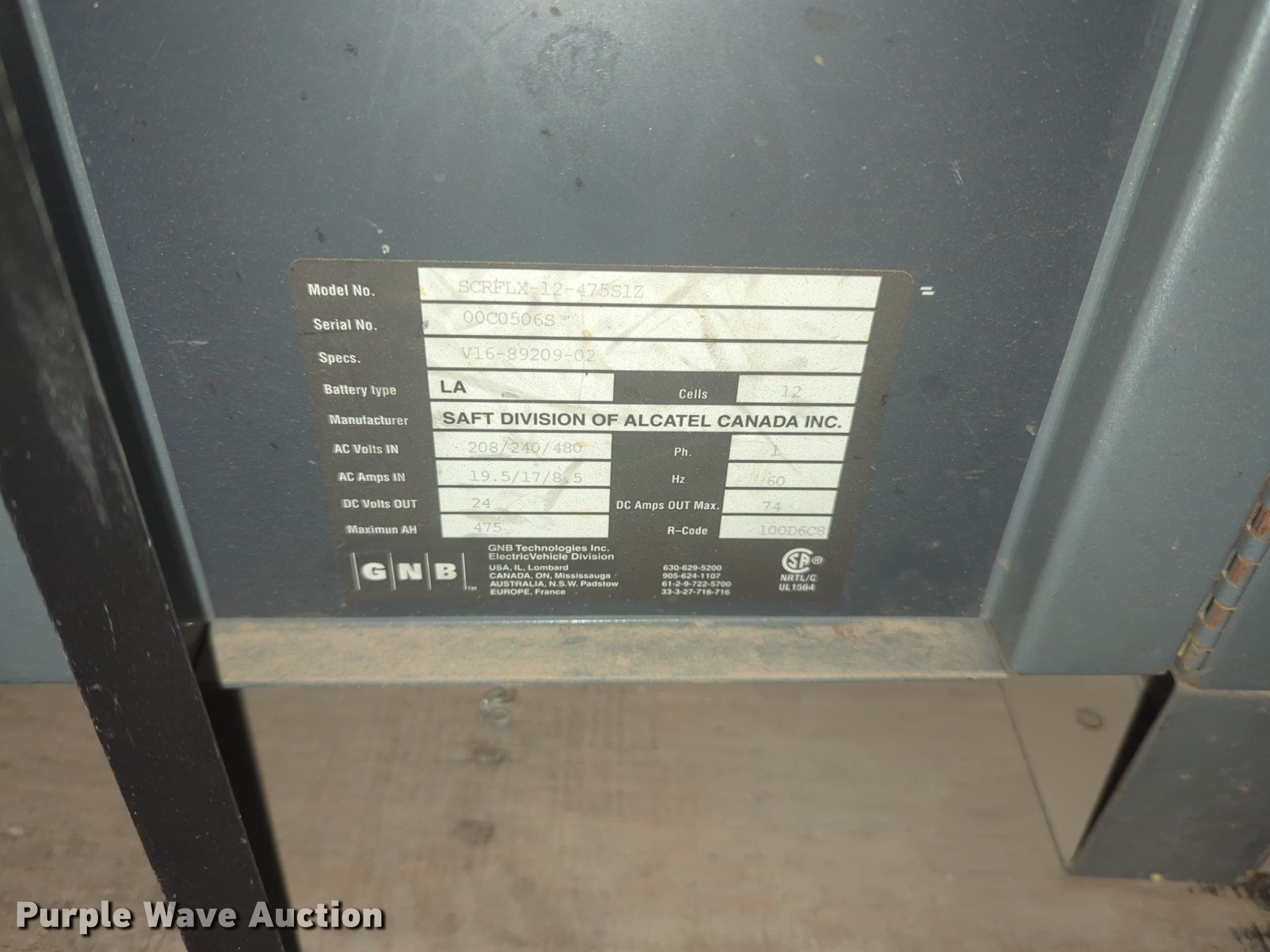 Purple Wave is selling a used Forklift Attach. in Oklahoma. This item is a (2) forklift chargers with the following: GNB, Volts: 208/240/480, C&D, Volts: 208/240/480
