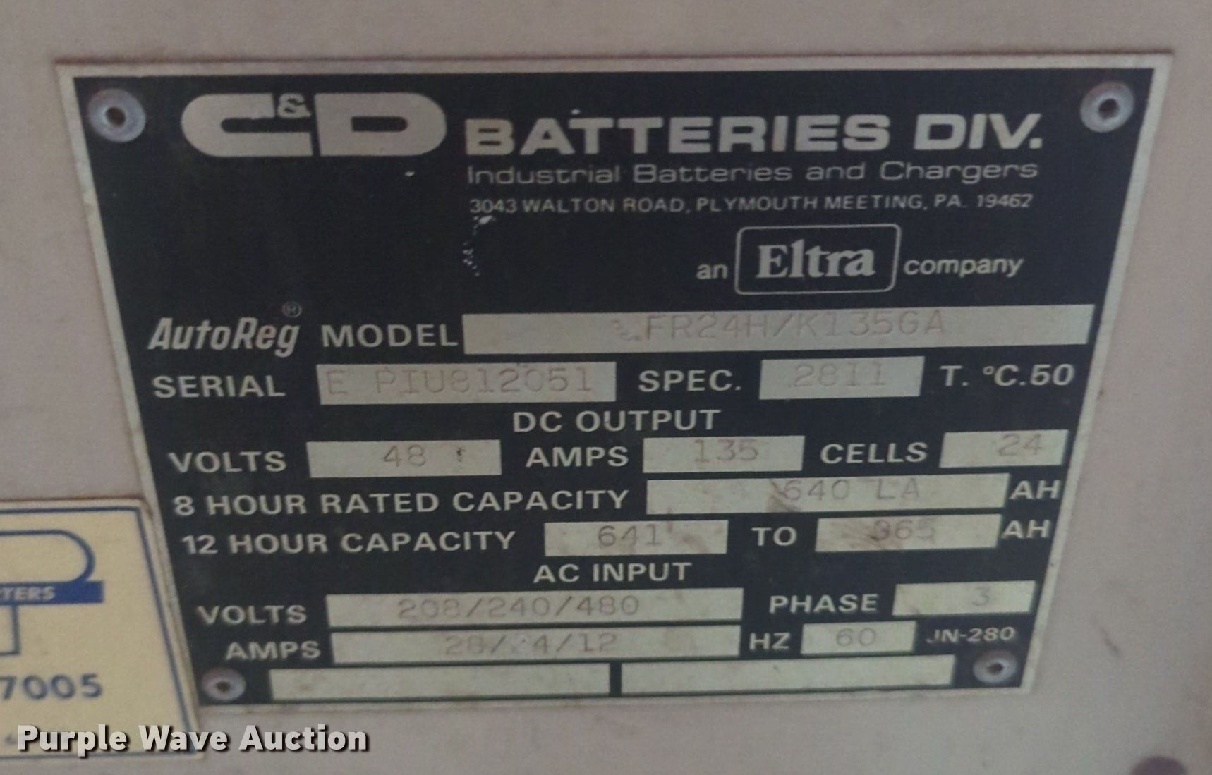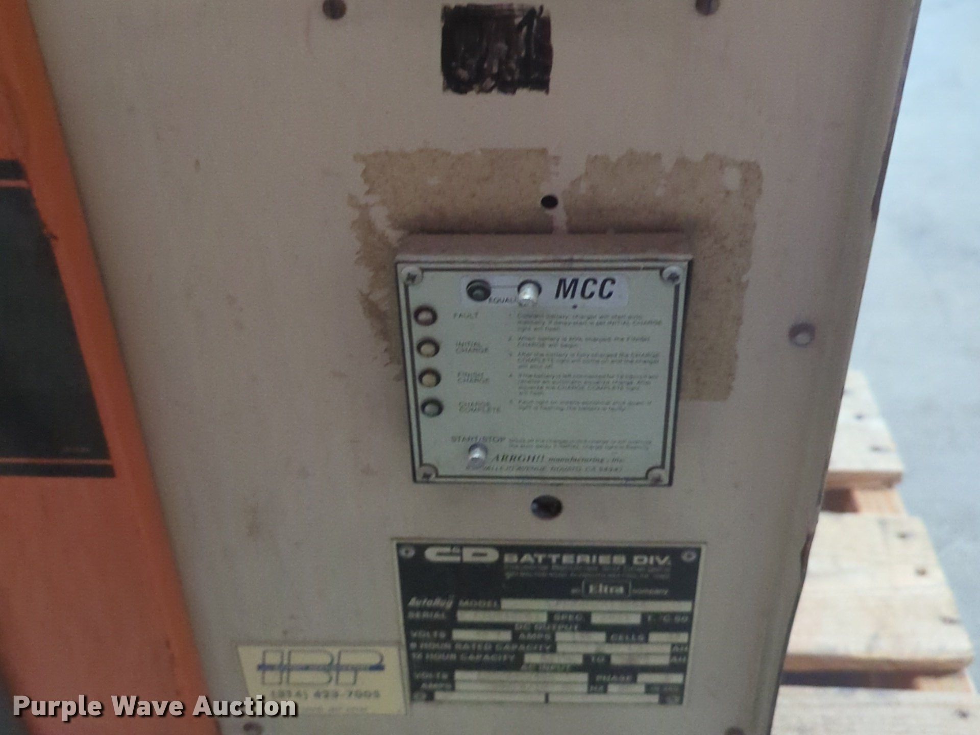 Purple Wave is selling a used Forklift Attach. in Oklahoma. This item is a (2) forklift chargers with the following: Exide Loadhog, AC volts: 208/240/480, DC volts: 36, Phase: Three, CD Ferro, AC volts: 208/240/480, DC volts: 48, Phase: Three