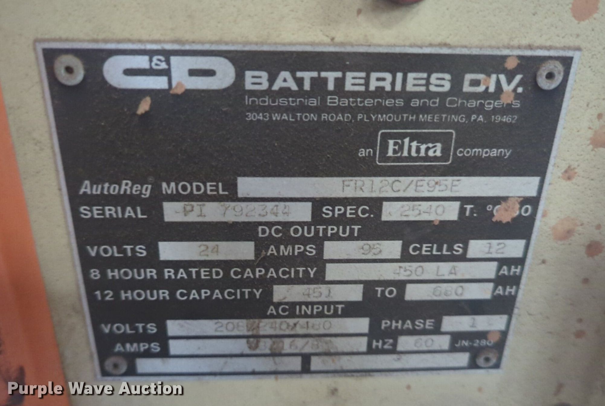 Purple Wave is selling a used Forklift Attach. in Oklahoma. This item is a (2) forklift chargers with the following: C&D, Volts: 208/240/480, Phase: Single, Hertner, Volts: 240/480, Phase: Three