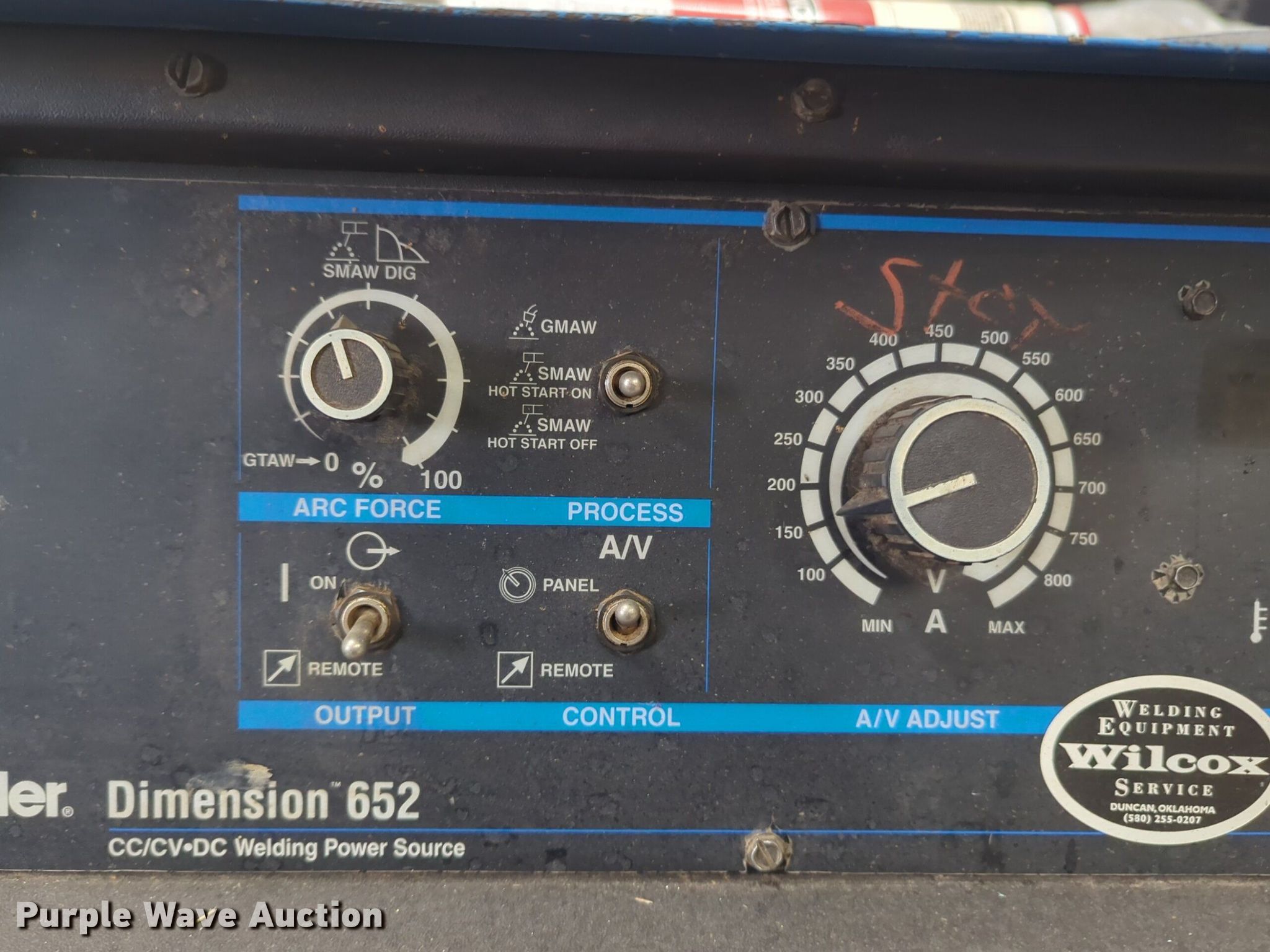 Purple Wave is selling a used Welder (Manual) in Oklahoma. This item is a Miller Dimension 652 welder with the following: Serial: KK173403