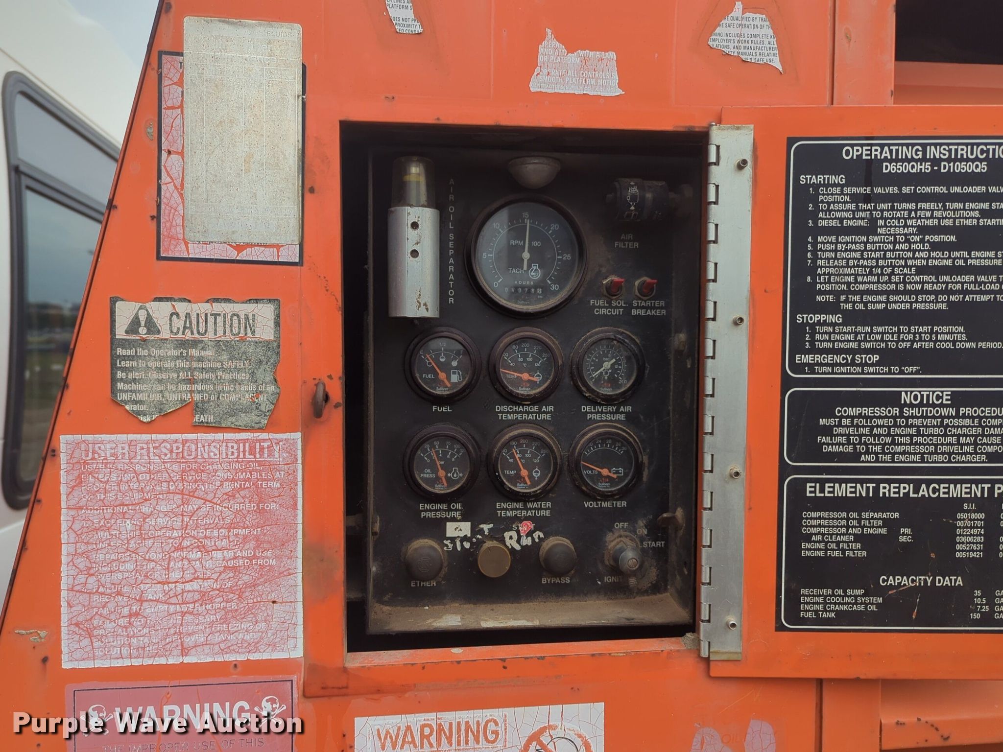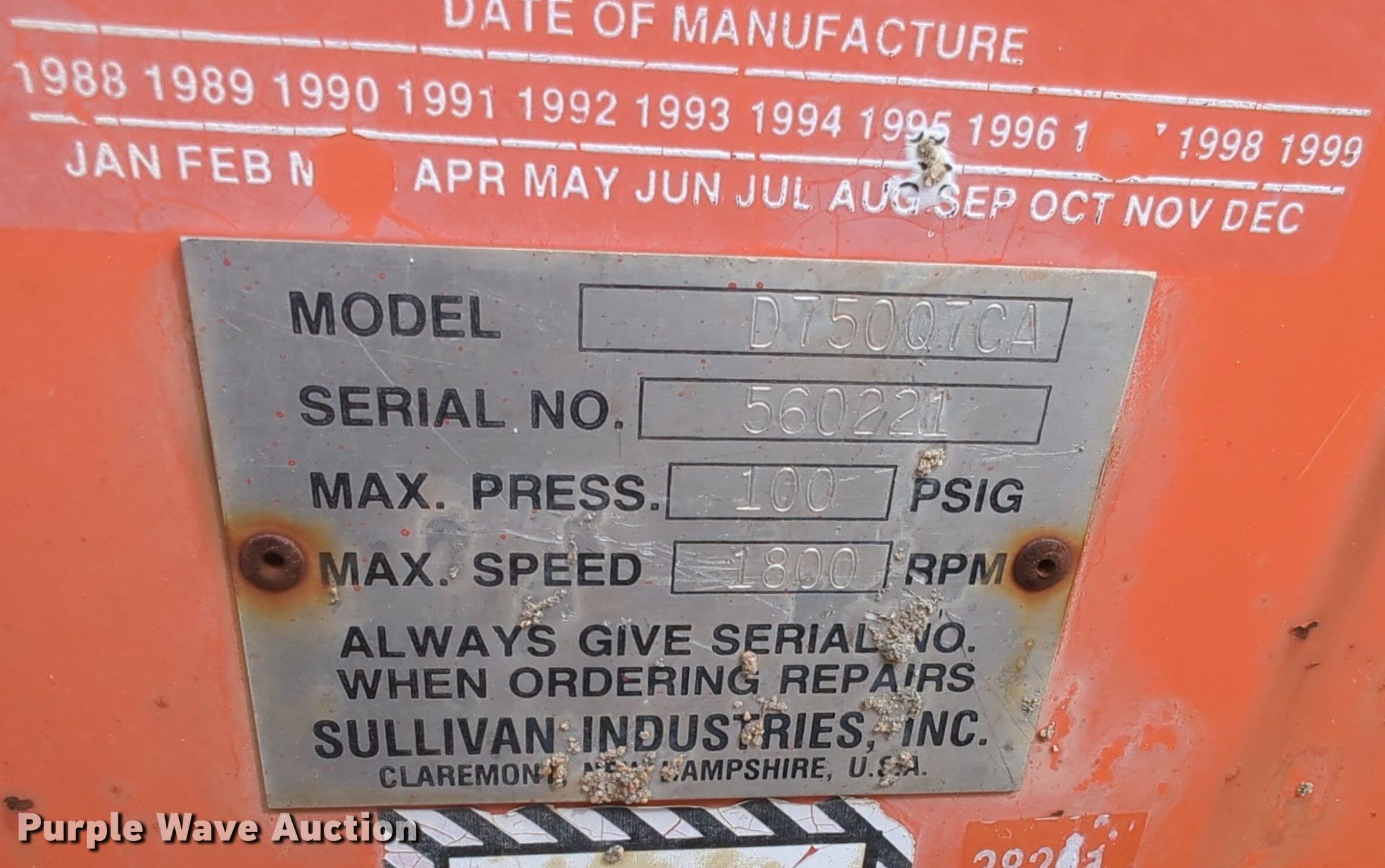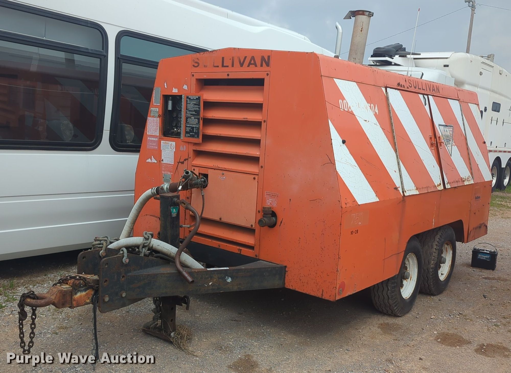 Purple Wave is selling a used Air Compressor in Oklahoma. This item is a Sullivan D75007CA air compressor with the following: Hours: 4,078 on meter, Serial: 560221