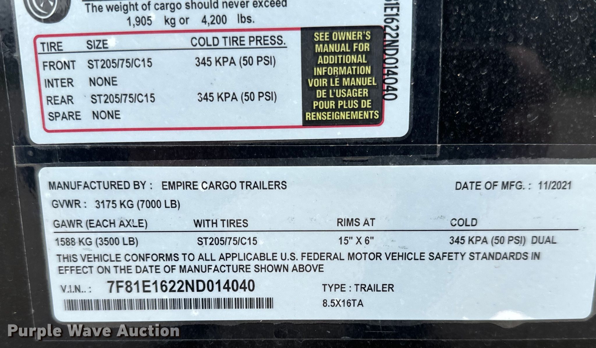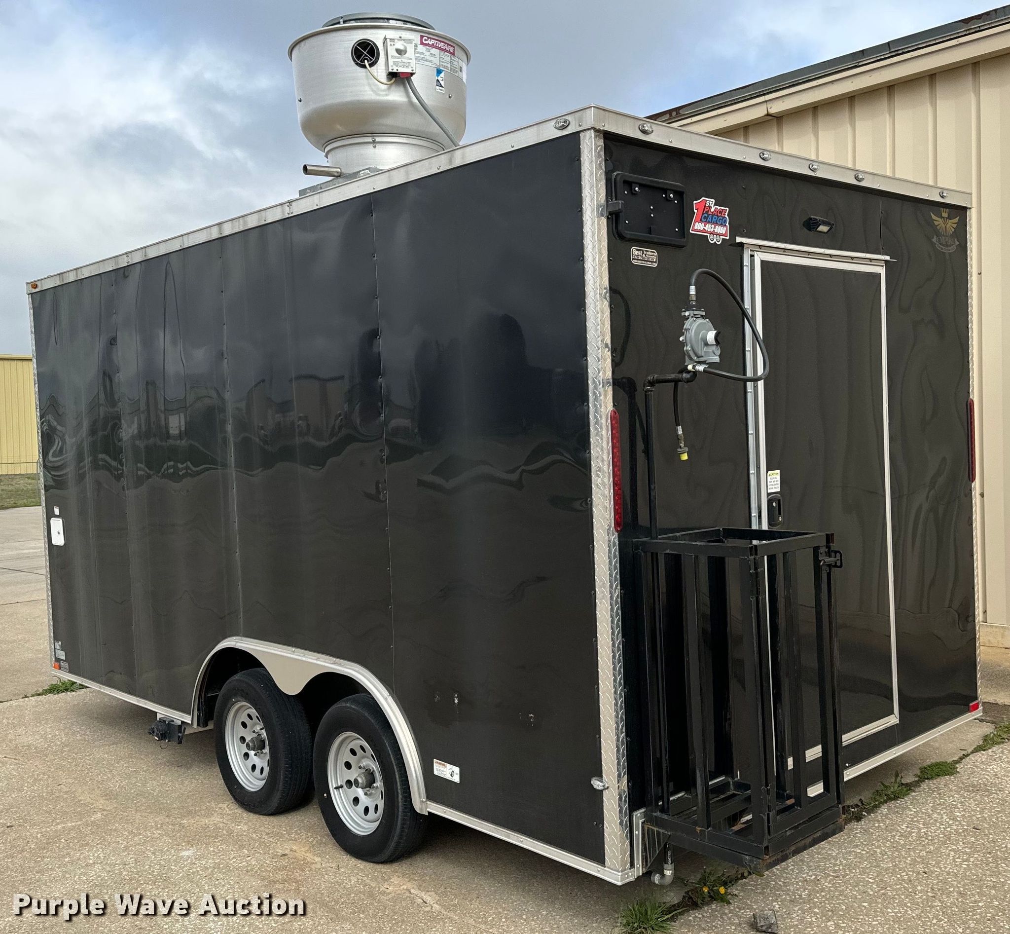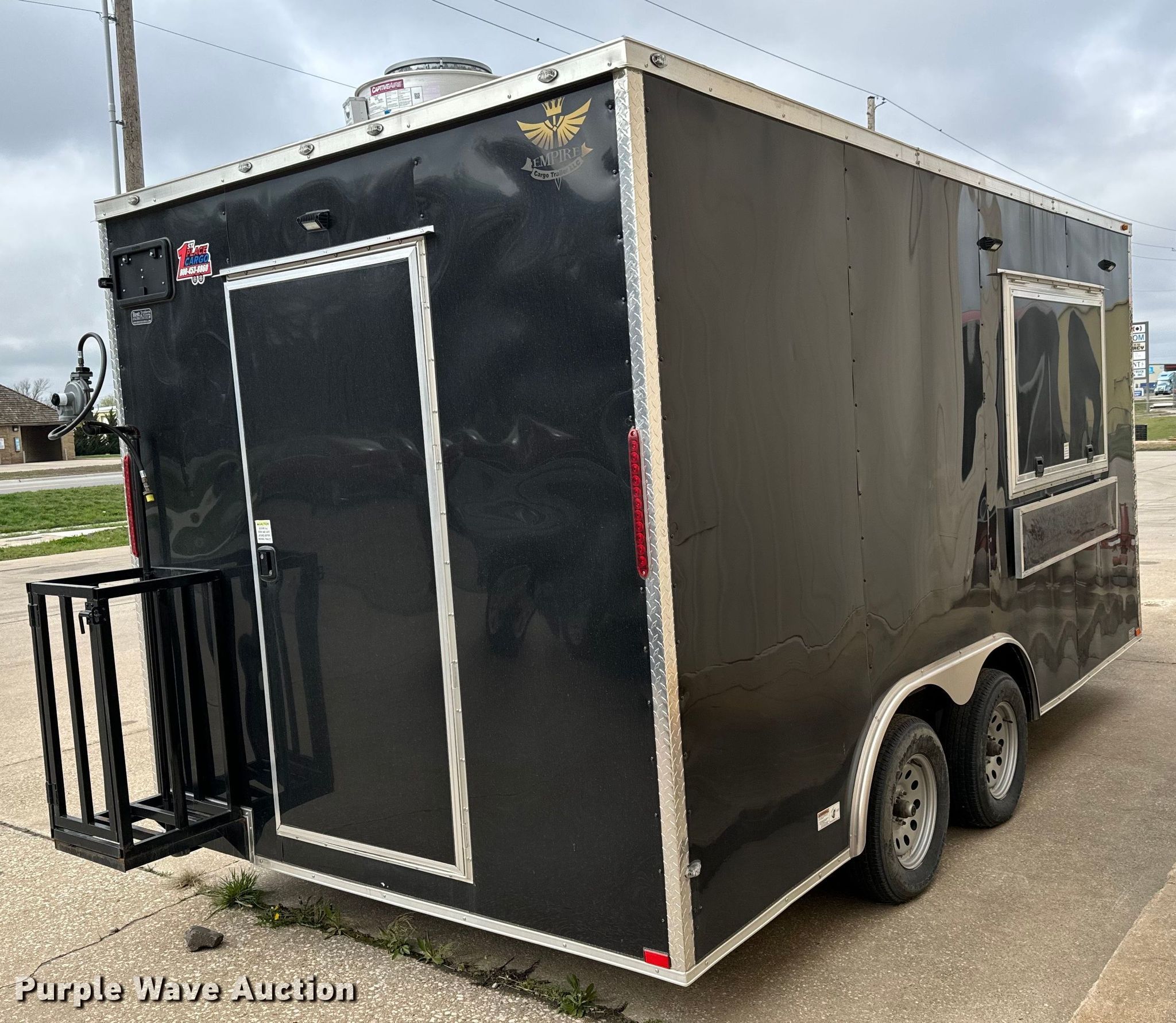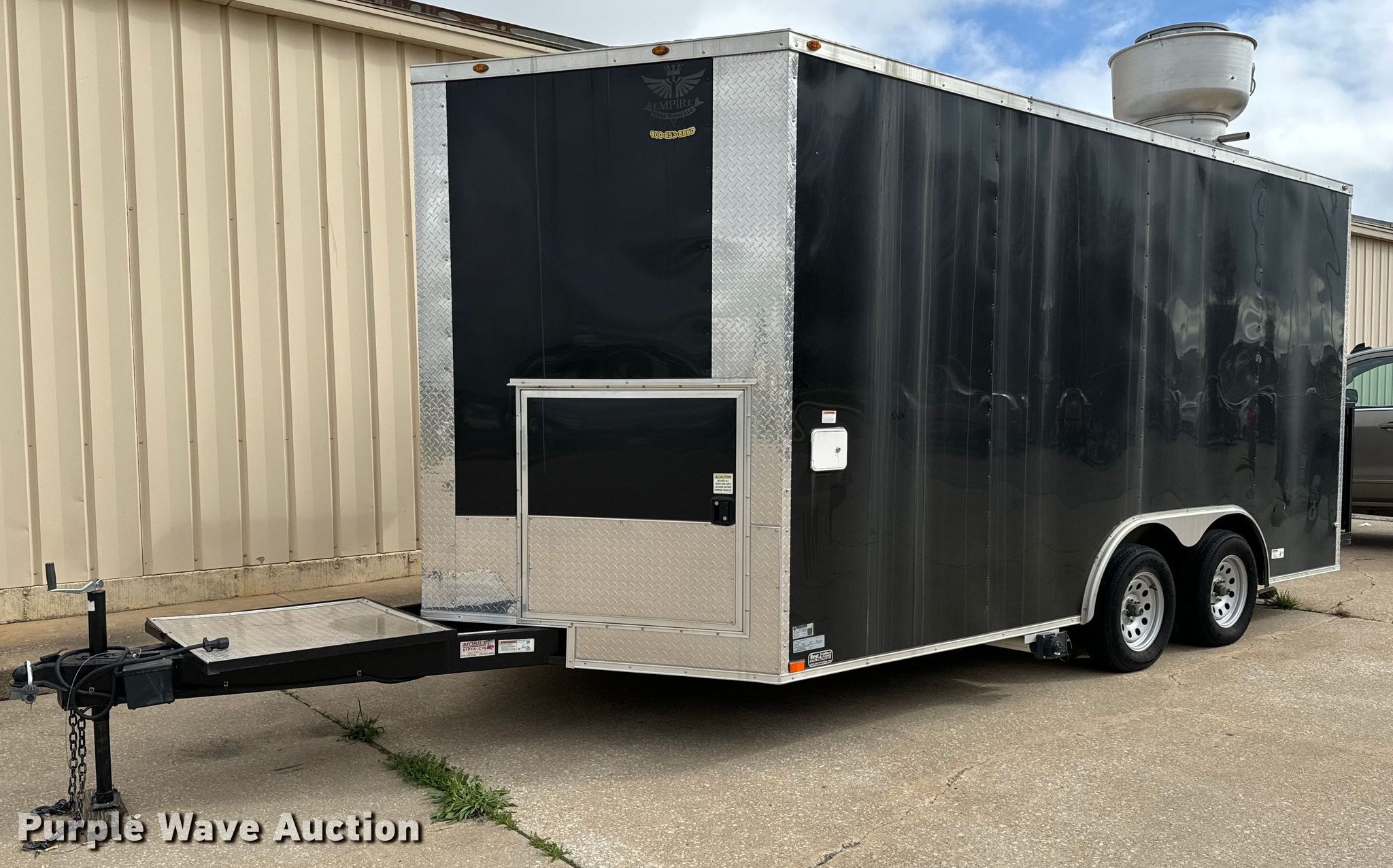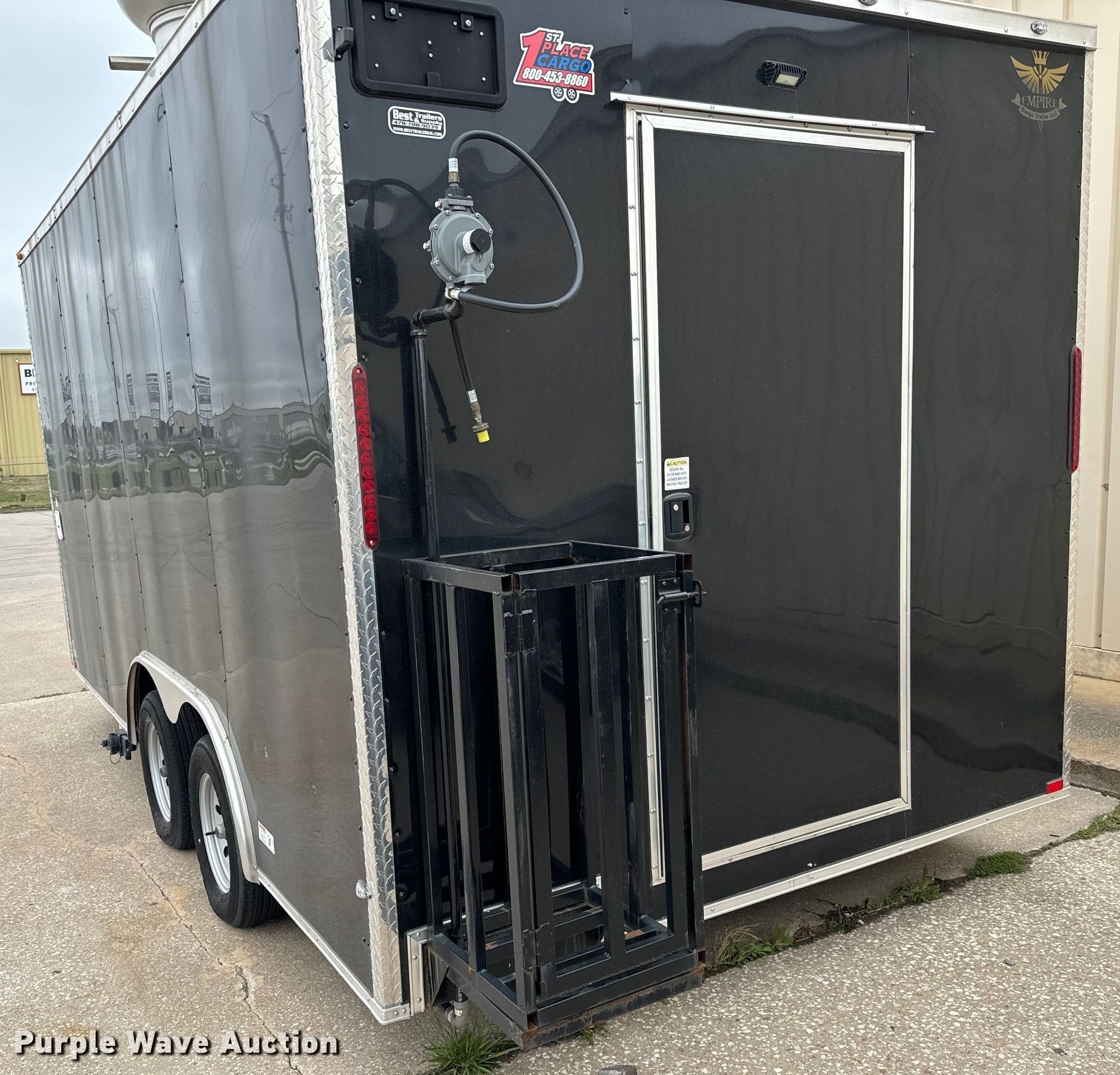Purple Wave is selling a used Enclosed Cargo Trailer in Kansas. This item is a 2022 Empire Cargo Trailers 8.5X16TA concession trailer with the following: VIN: 7F81E1622ND014040