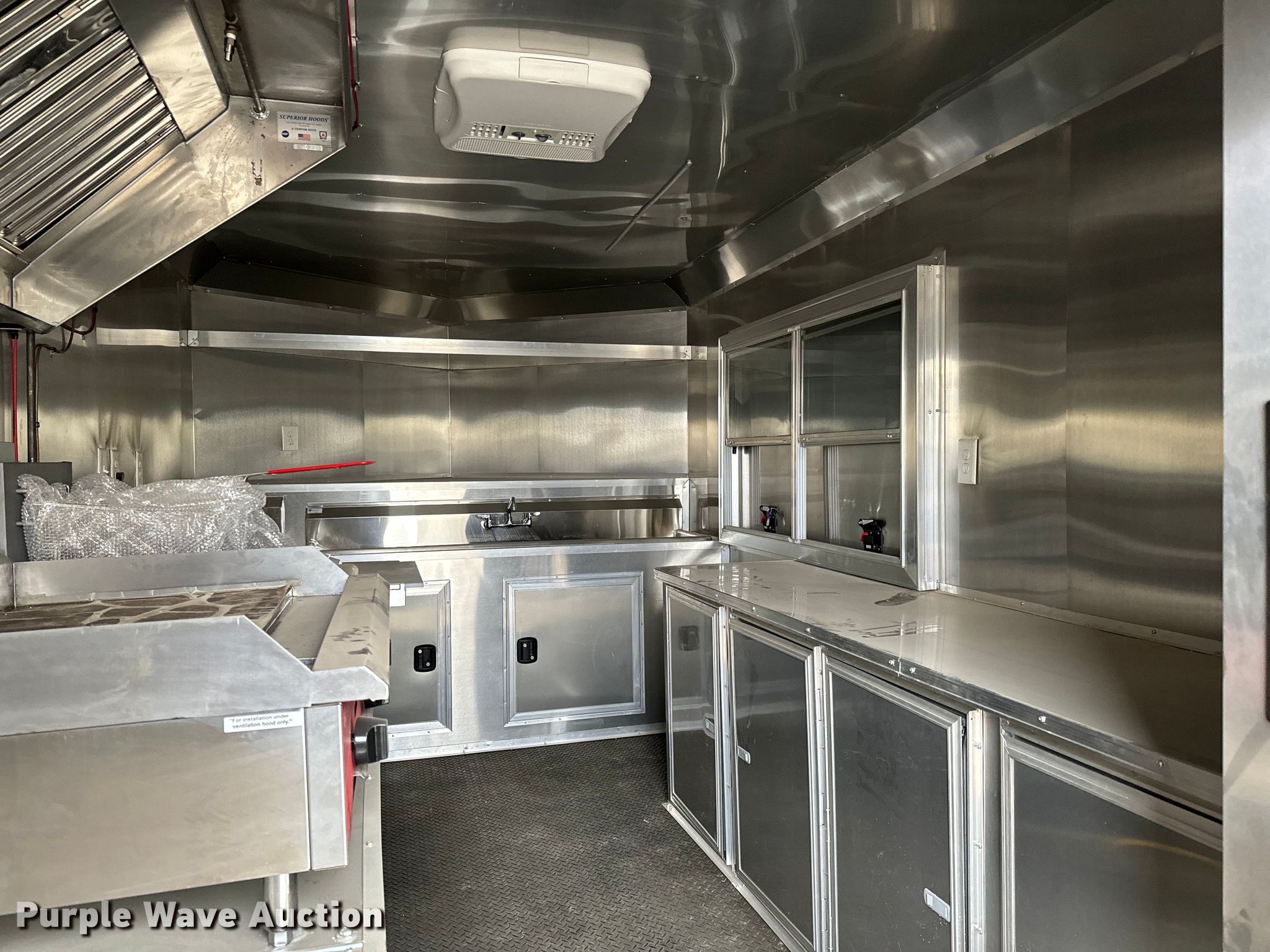 2022 Empire Cargo Trailers 8.5X16TA concession trailer. VIN: 7F81E1622ND014040. Dimensions Overall: 25' 6" L x 102" W, Body: 19' L x 99" W. Features Deck type: Wood, Dometic AC and heat, Klingers MCS32D sink, Klingers EHS-1319 sink, Avantco Chef Series griddle, Mainstreet 541FF40L fryer, Fagor FMT 27 12N HC top refrigerated unit, Avantco 178A23RHC refrigerator, LaVanture water tank, Eemax water heater, FloJet water pump, Siemens electrical panel Amps: 100, Powermax PM3-35LK power converter. Chassis Ball hitch: 2 5/16", Landing gear: Single, Suspension: Spring, Brakes: Electric, Axles: Tandem, GVWR: 7,000 lbs, GAWR: 3,500 lbs. Tires Steel wheels, Size: 205/75R15. Notes Appliances unused. Kansas title. Title distribution may be delayed up to 14 days from verification of funds. Wichita, KS 67204