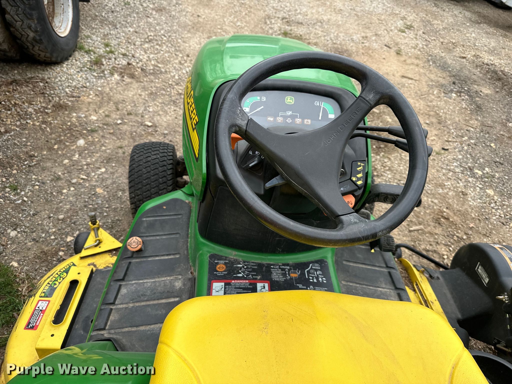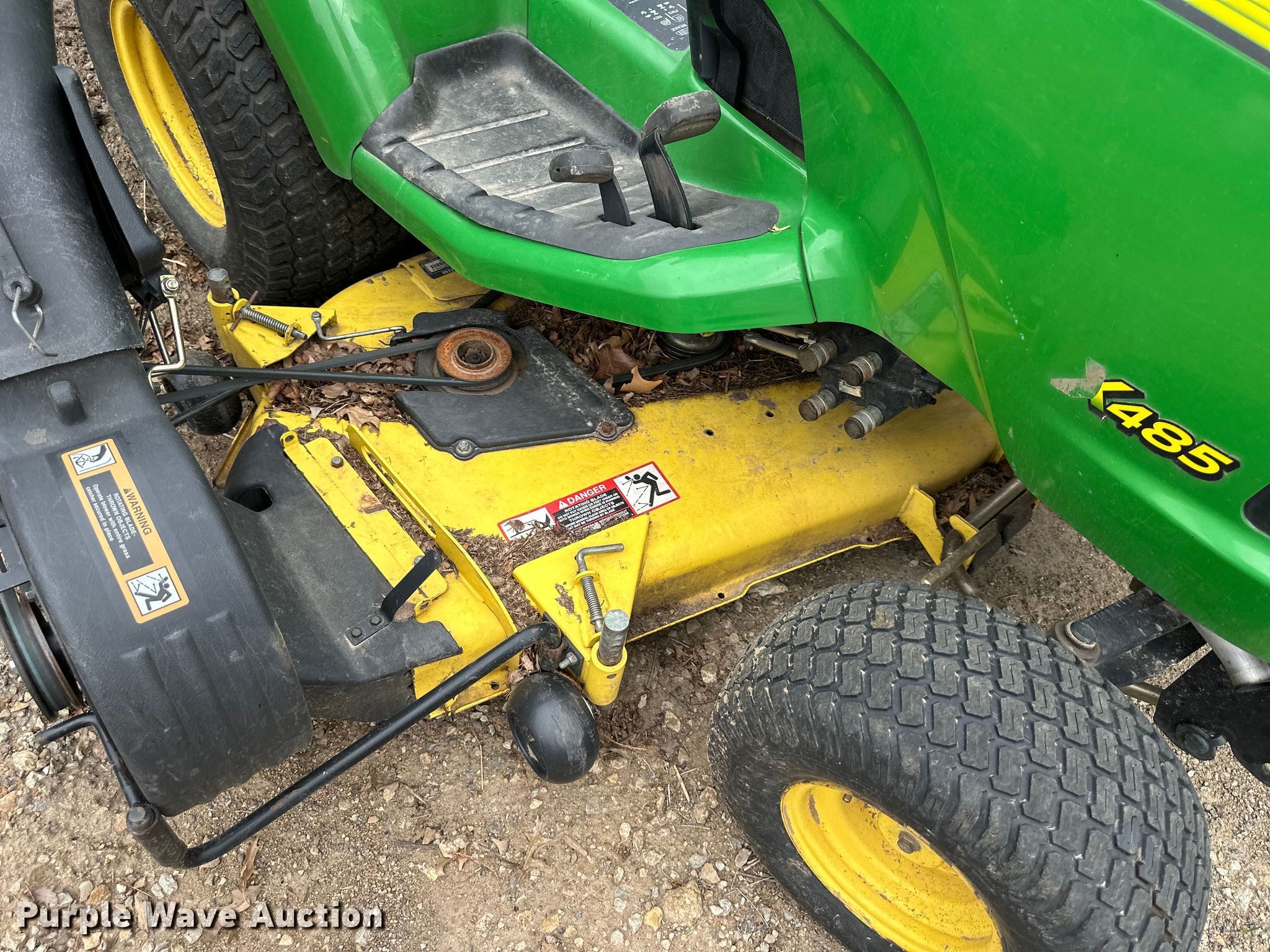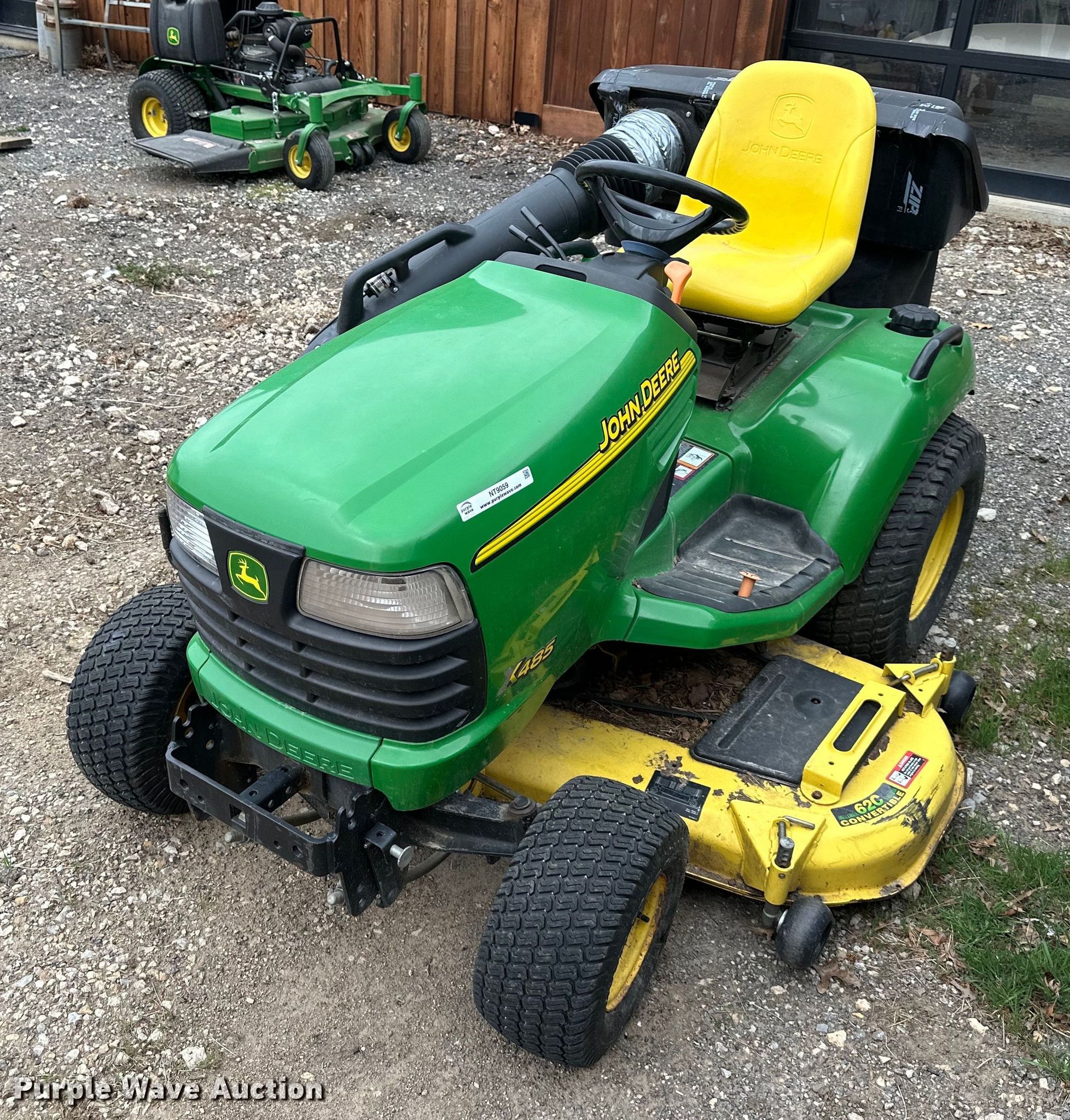 Purple Wave is selling a used Commercial Turf Mower in Kansas. This item is a John Deere X485 lawn mower with the following: Hours: Unknown, Cutting width: 62"