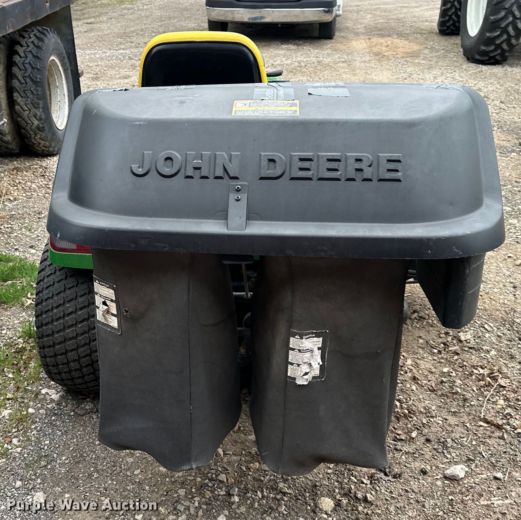 John Deere X485 lawn mower. Hours: Unknown, Cutting width: 62". Engine Kawasaki, Cylinders: 2, Fuel type: Gas. Transmission Hydrostatic. Features Hydraulic remote sets Side: 2, Grass bagger. Tires Front: 18x8.50-8, Rear: 26x12.00-12. Lagrange Ranch. Basehor, KS 66007
