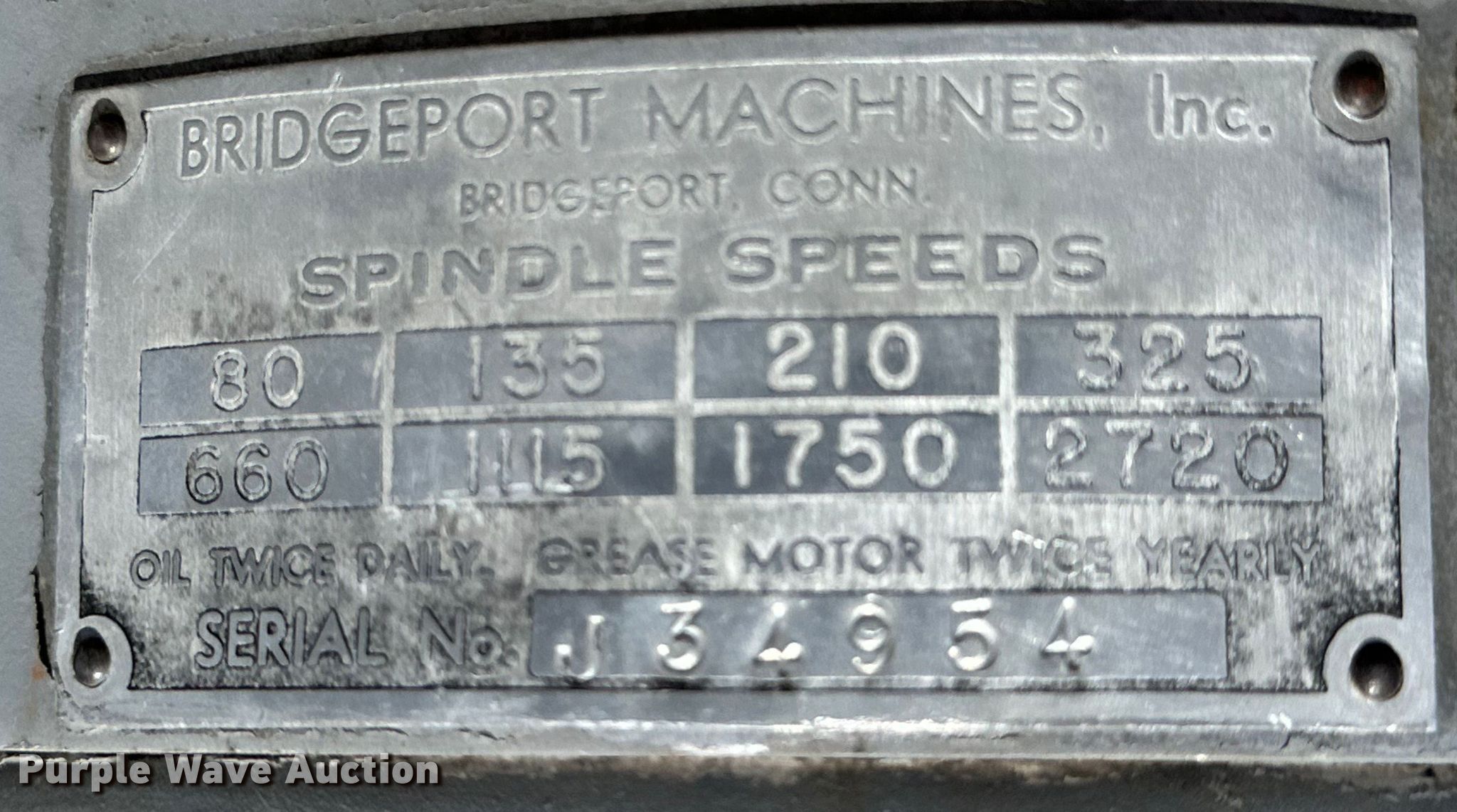 Purple Wave is selling a used Milling Machines in Kansas. This item is a Bridgeport milling machine with the following: Serial: J34954, Unknown operating condition