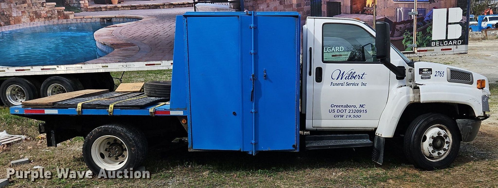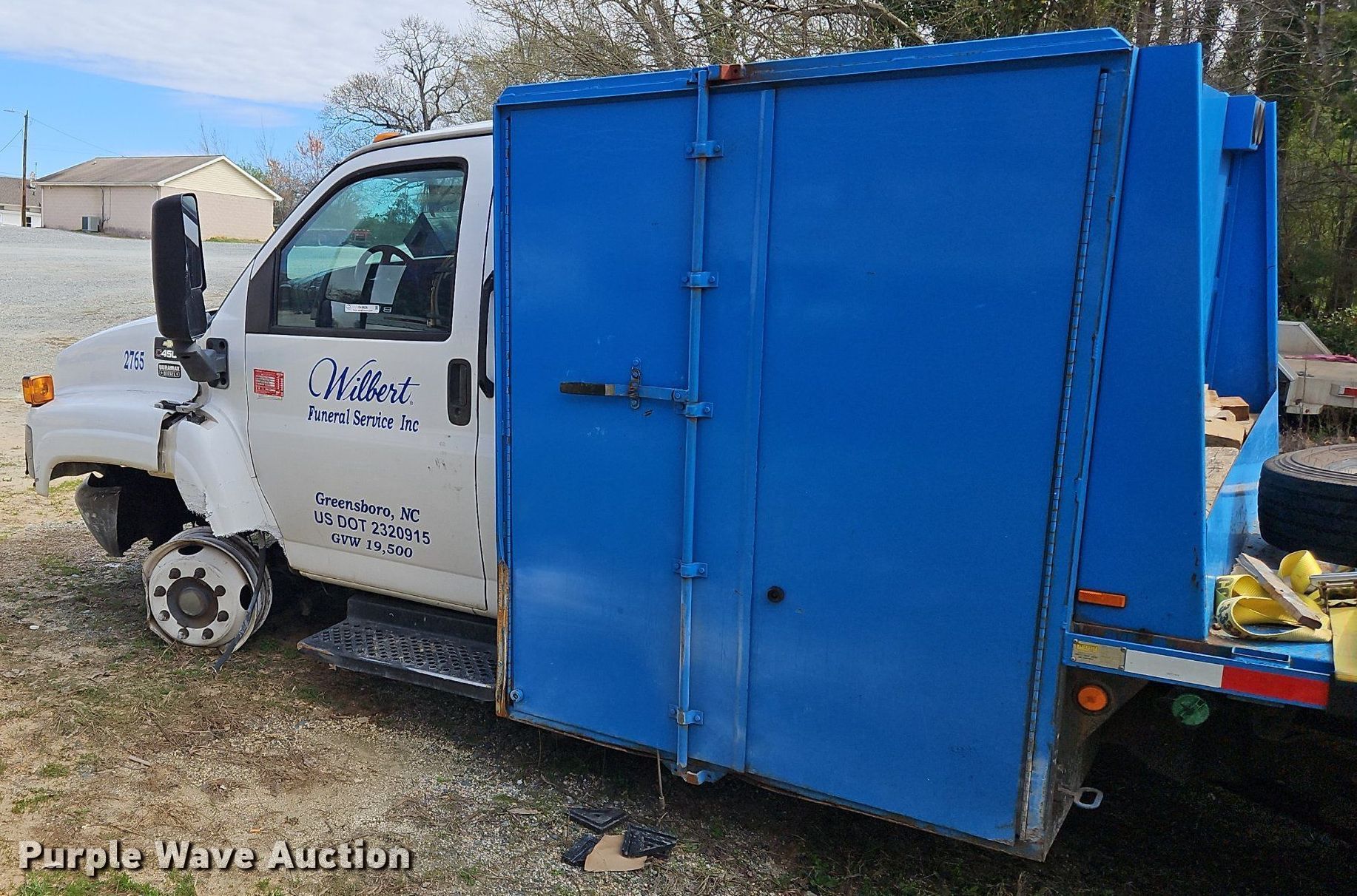 2008 Chevrolet C4500 flatbed truck. Miles: Unknown, VIN: 1GBE4C19X8F404834. Engine Duramax 6.6, Displacement: 6.6L, Cylinders: 8, Fuel type: Diesel. Transmission Automatic. Chassis Axles: Single, Suspension: Spring, Brakes: Hydraulic, GVWR: 17,500 lbs. Interior AC, heat. Features Flatbed 8' L x 7' W. Tires Size: 225/70R19.5. Notes Bed contents not included, Dead battery, Wrecked vehicle , Non-operational unit. North Carolina title. Mileage has not been verified. Odometer discrepancy will be marked on the title. Title distribution may be delayed up to 30 days from verification of funds. Wilbert Funeral Services. 108 Buchanan Church Road. Greensboro, NC 27405