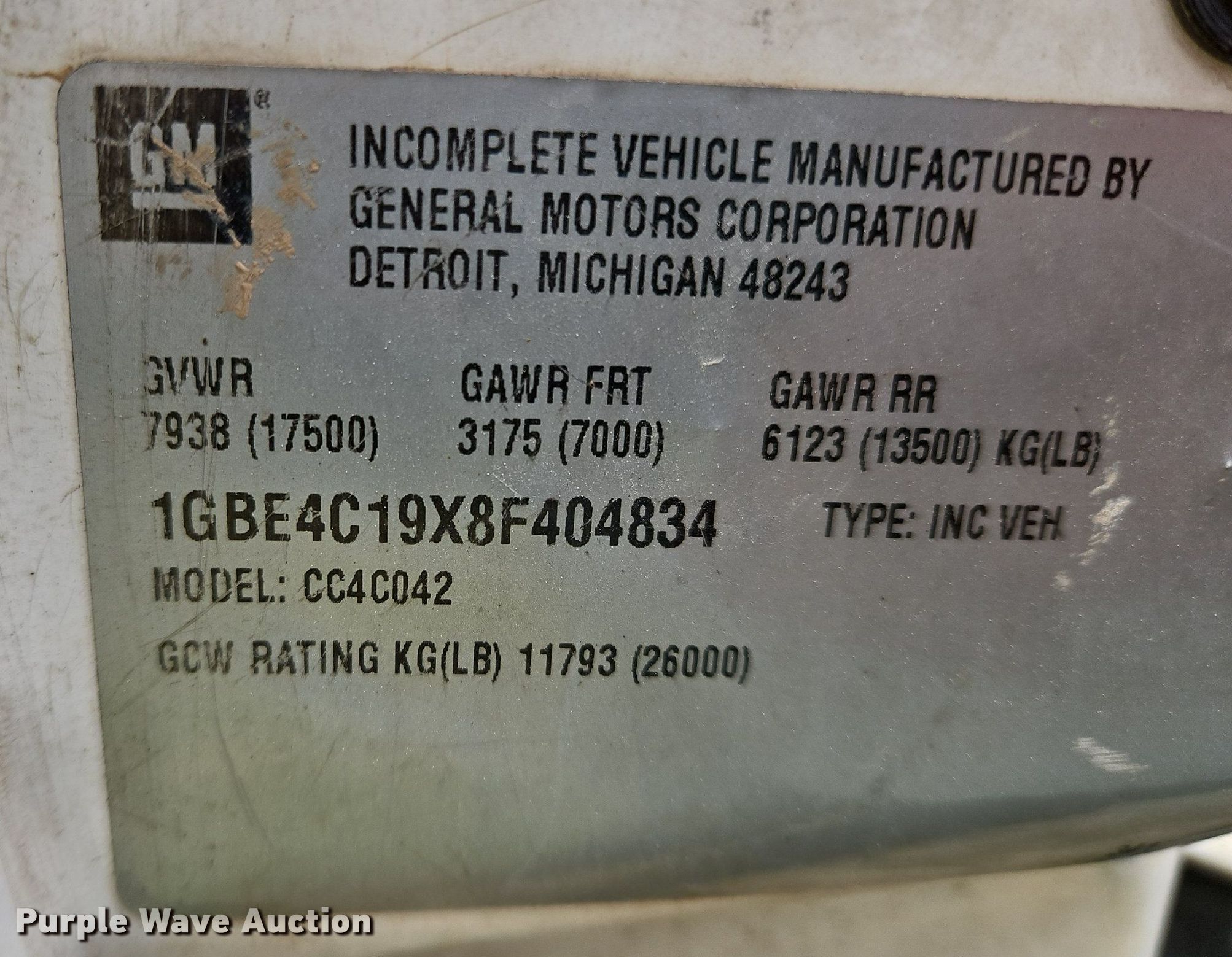 • VIN: 1GBE4C19X8F404834
