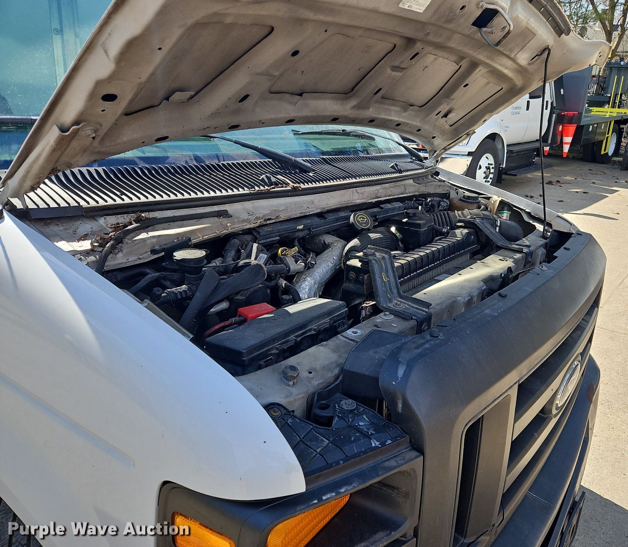 2010 Ford E450 Super Duty sewer inspection truck. Miles: 119,276 on odometer, VIN: 1FDWE4FP4ADA36965. Engine Displacement: 6.0L V8 OHV, Cylinders: 8, Fuel type: Diesel. Transmission Automatic. Chassis Axles: Single, Suspension: Spring, Brakes: Hydraulic. Interior AC, Heat, Cruise control. Features Box bed 12' L x 90" W, Floor: Aluminum. Tires Size: 225/75R16. Notes Dash warning indicator: Check engine. Ohio title. Title distribution may be delayed up to 14 days from verification of funds. Champion Cleaning Specialists. 8391 Blue Ash Road. Cincinnati, OH 45236