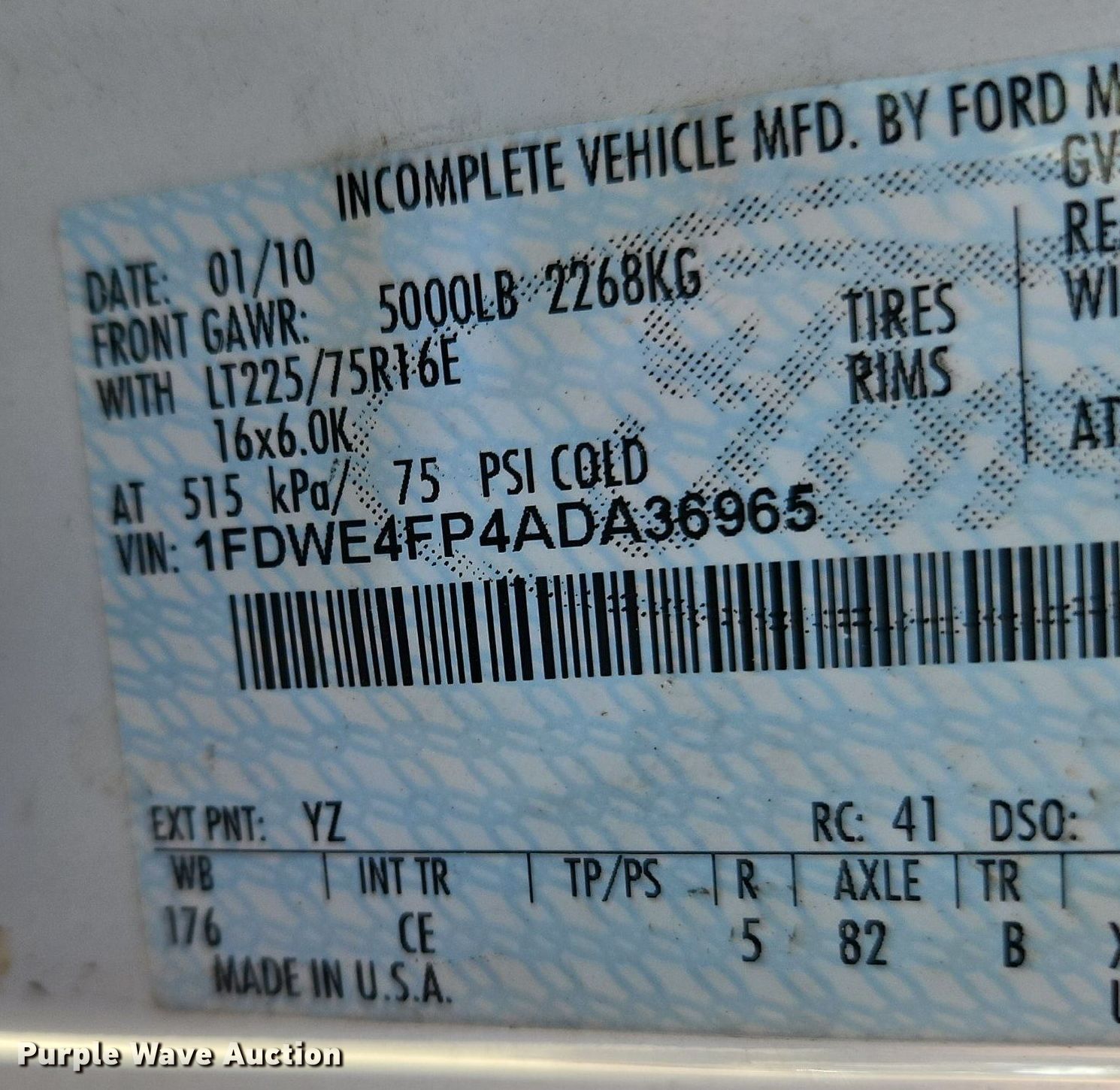 - VIN: 1FDWE4FP4ADA36965