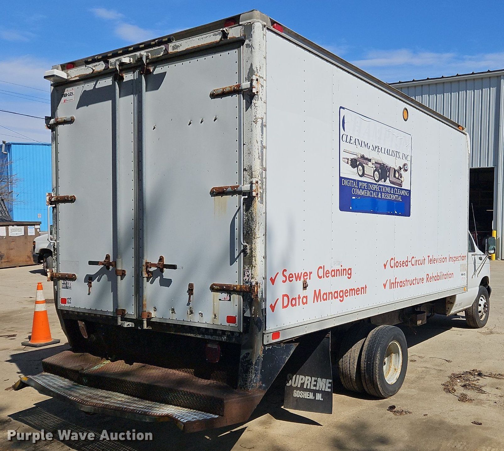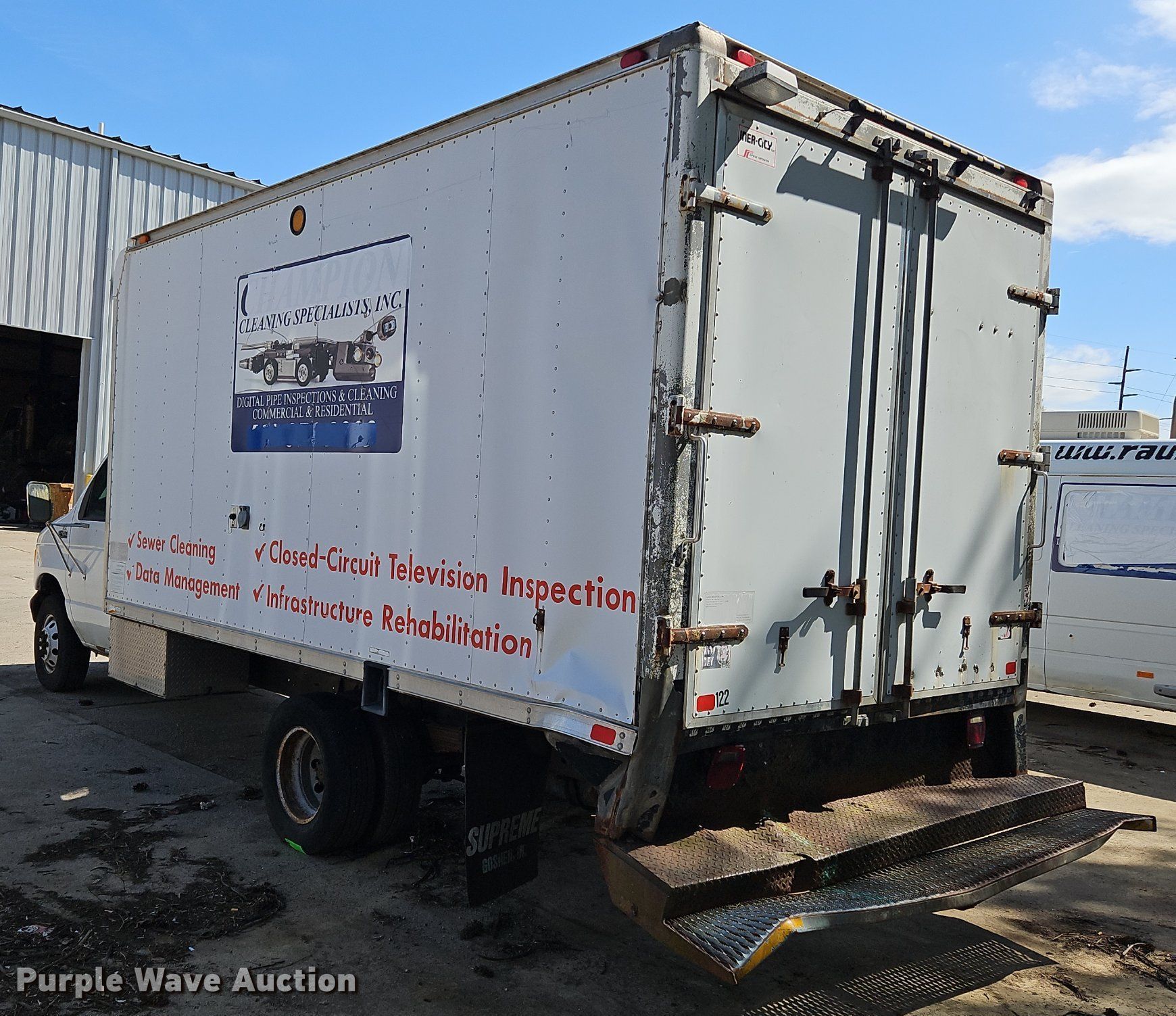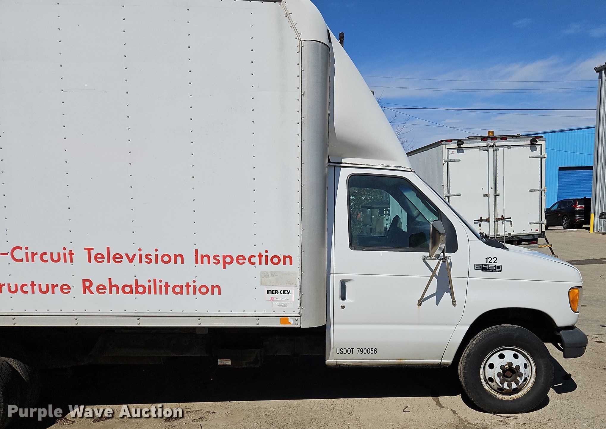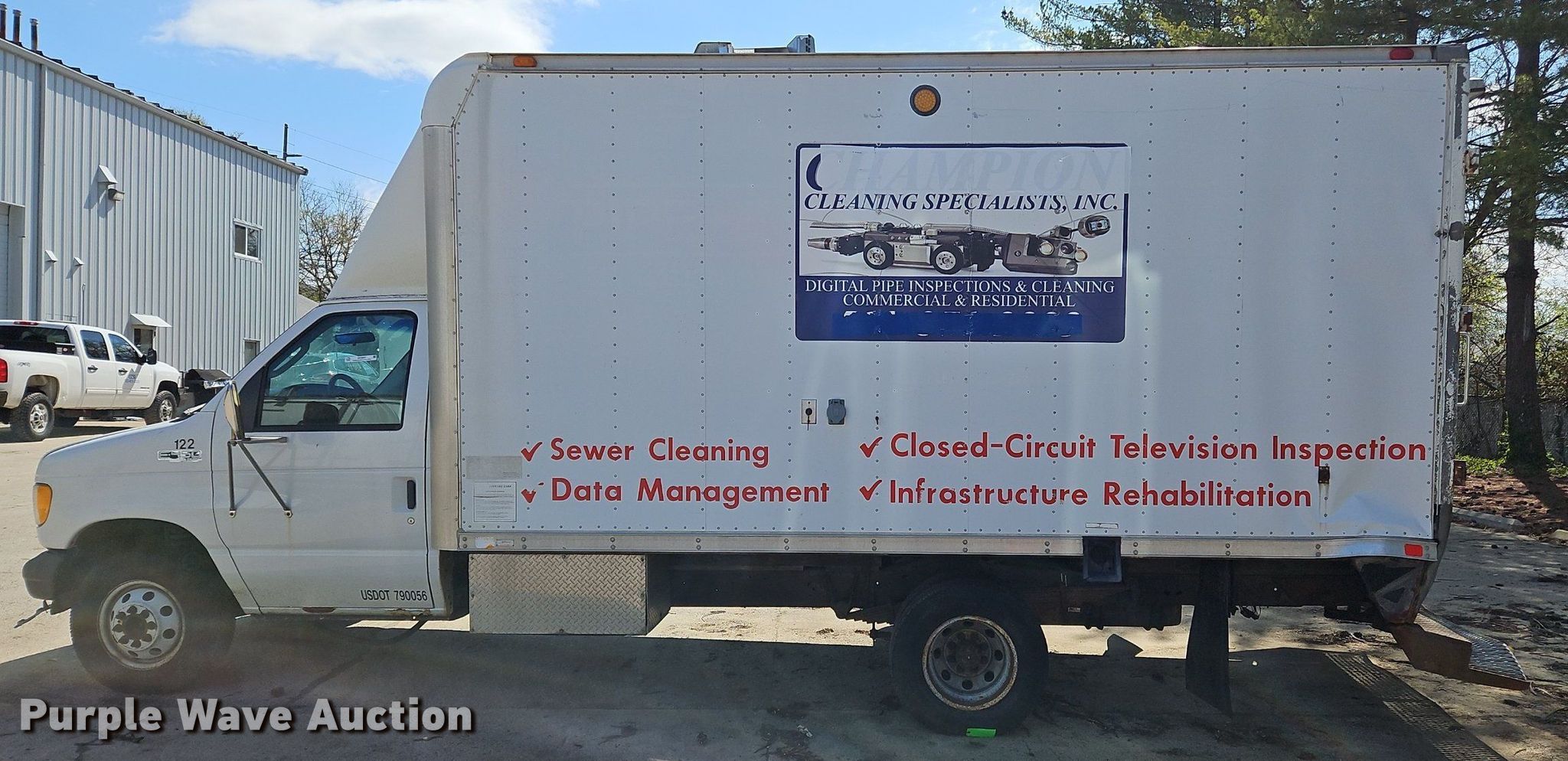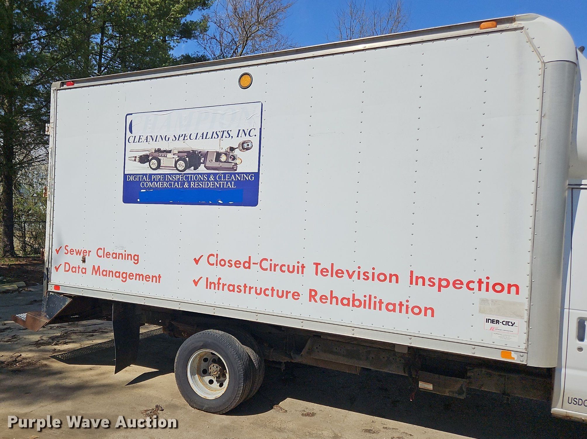 2003 Ford E450 Super Duty sewer inspection truck. Miles: 142,870 on odometer, VIN: 1FDXE45FX3HA06488. Engine Displacement: 7.3L V8 OHV, Cylinders: 8, Fuel type: Gas. Transmission Automatic. Chassis Axles: Single, Suspension: Spring, Brakes: Hydraulic. Interior AC, Heat. Features Box bed 12' L x 90" W, Floor: Aluminum. Tires Size: 225/75R16. Notes Windshield chipped or cracked, Non-operational engine , Non-operational unit. Ohio title. Title distribution may be delayed up to 14 days from verification of funds. Champion Cleaning Specialists. 8391 Blue Ash Road. Cincinnati, OH 45236