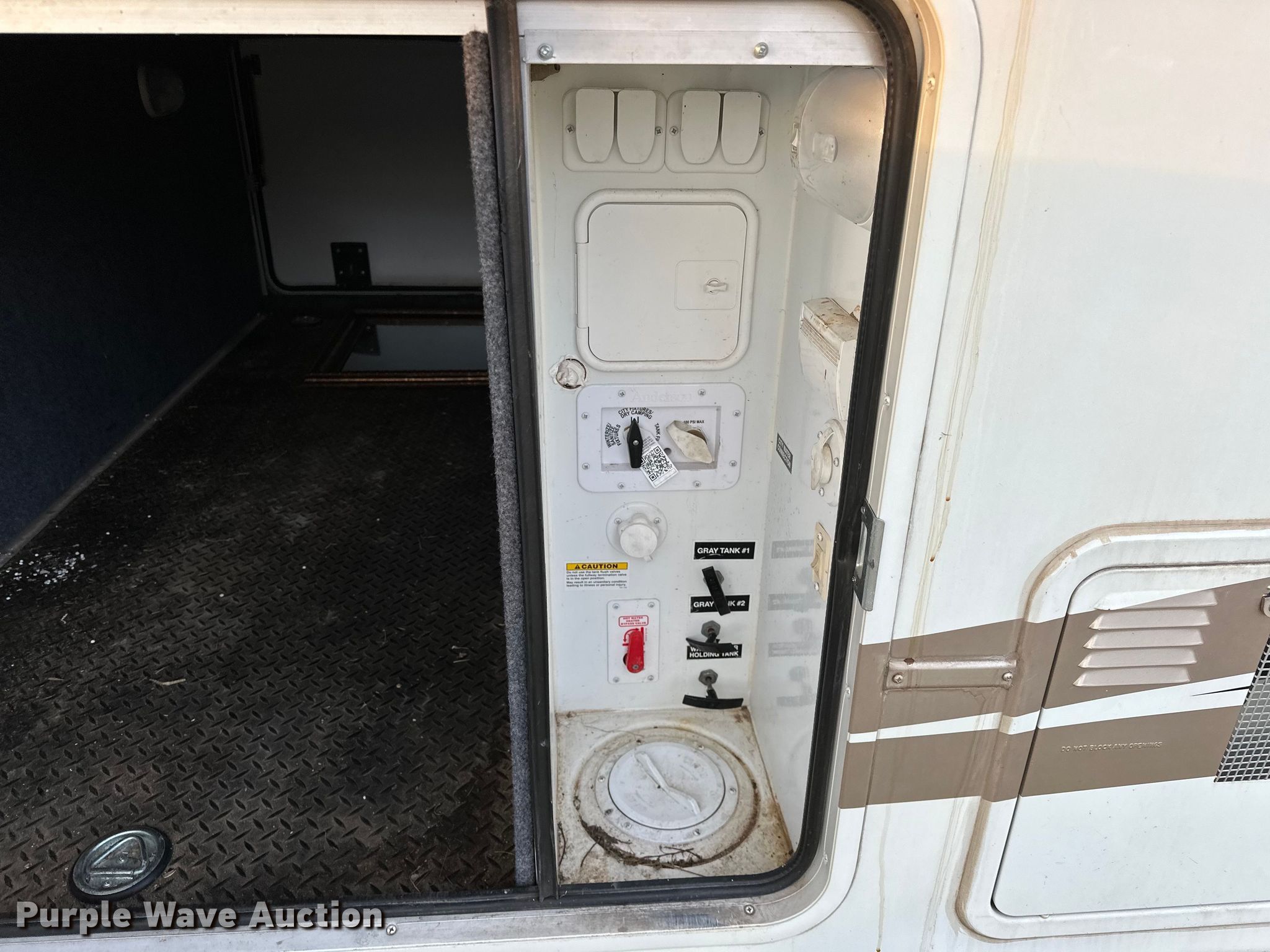 2015 Heartland Ashland Landmark camper. Camper length: 42', VIN: 53FBG4223FE293489, Claim #: 4-800545. Chassis Axles: Tandem, Suspension: Spring, Brakes: Electric, GVWR: 17,500 lbs, GAWR: 8,000 lbs. Interior Kitchen: Sink, Dishwasher, Refrigerator, Freezer, Microwave, Oven, Stove: Electric, Living room: Table, Couch, Pull out couch, Bathroom, Beds: 1 Bed type: King, TVs: 1, Satellite, Sound system, Heater, AC units: 3. Features Slide outs: 3, Awnings: 2 Awning type: Electric, Auto leveler, Hitch: Fifth wheel. Tires Size: 215/75R17.5. Notes Side delamination, Dead battery. Insurance salvage unit. Oklahoma title. Title distribution may be delayed up to 14 days from verification of funds. Oklahoma Farm Bureau Insurance. Seminole, OK 74868