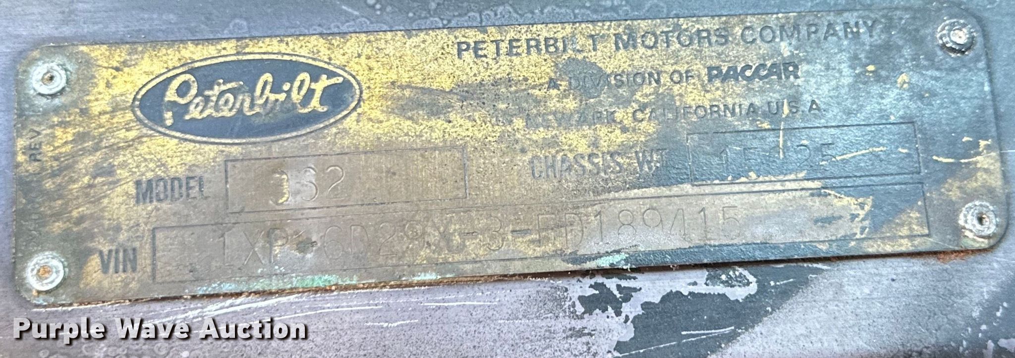 Purple Wave is selling a used Rollback or Tow Truck in Texas. This item is a 1985 Peterbilt 362 roll-off container truck with the following: Miles: 533,605 on odometer, VIN: 1XP6D29X3FD189415