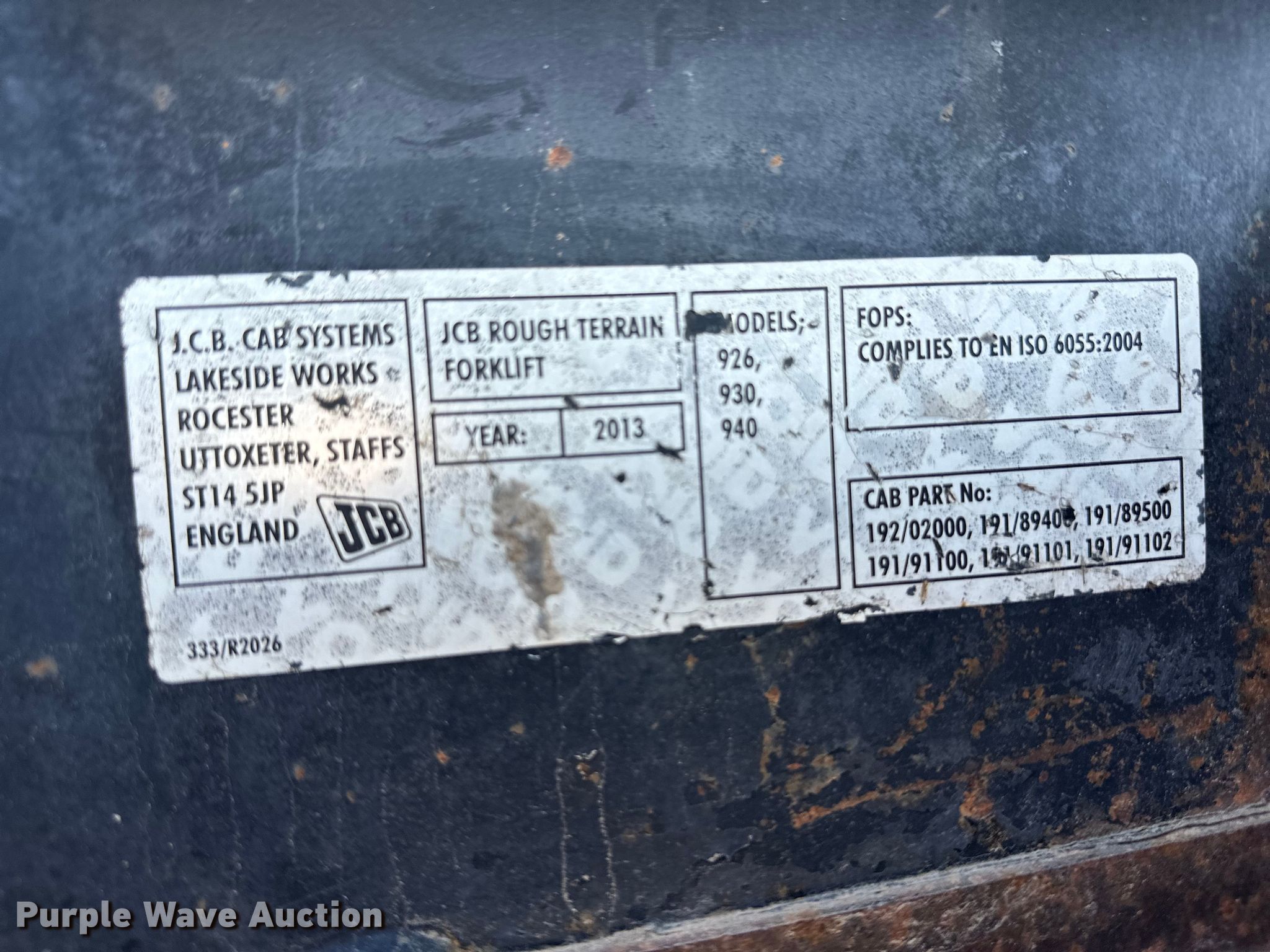 Purple Wave is selling a used Strt. Mast Rough Terr. Forklift in Kansas. This item is a 2013 JCB 930 forklift with the following: Hours: 210 on meter, Serial: JCB93004J02228240