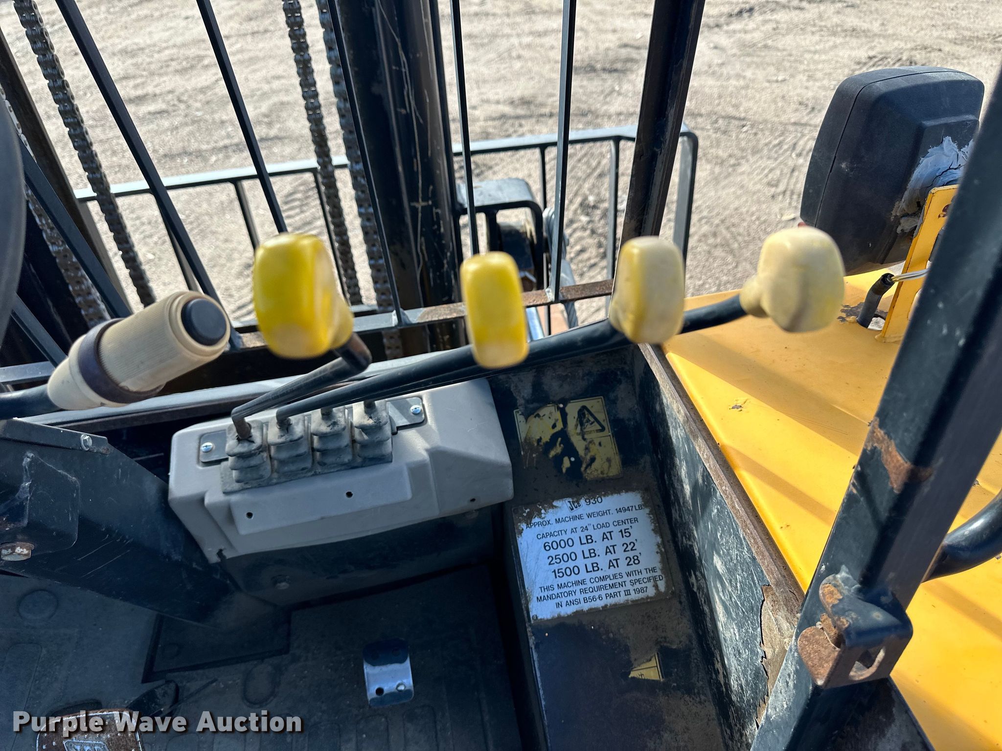 2013 JCB 930 forklift. Hours: 210 on meter, Serial: JCB93004J02228240. Engine Cylinders: 4, Fuel type: Diesel. Transmission Shuttle shift, 4F - 4R. Chassis Four wheel drive. Operators station OROPS. Features Maximum lift capacity: 6,000 lbs, Mast stages: 3, Side shift, Mast tilt, Fork length: 48". Tires Front: 15.5-25, Rear: 14-17.5. Big L Sales Inc.. 1102 East Fulton Street. Garden City, KS 67846