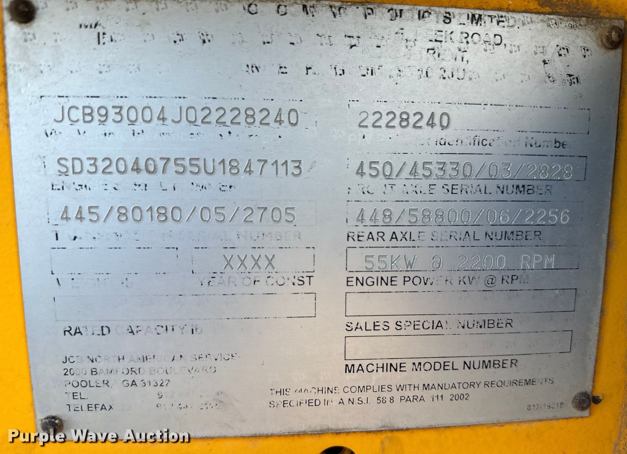 - Serial: JCB93004J02228240