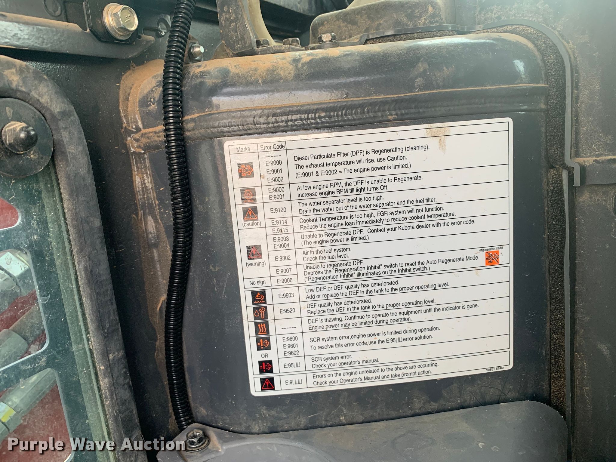 2021 Kubota SVL 97-2 skid steer loader. Hours: 246 on meter, Serial: KBCZ064CCM1G64764. Engine Kubota V3800-CR-TI-EV13, Serial: 2MN3065, Displacement: 3.8L, Cylinders: 4, Fuel type: Diesel, kW: 70.8. Transmission Hydrostatic, Two speed travel. Operators station Enclosed cab, AC, Heat, Bucket control: Hand, Pattern changer, Electronic Monitoring System panel, Backup camera. Features Auxiliary hydraulics, Auxiliary electrical outlet, Quick coupler: Hydraulic. Tracks Width: 18". Kubota Tractor Corp. Grapevine, TX 76051