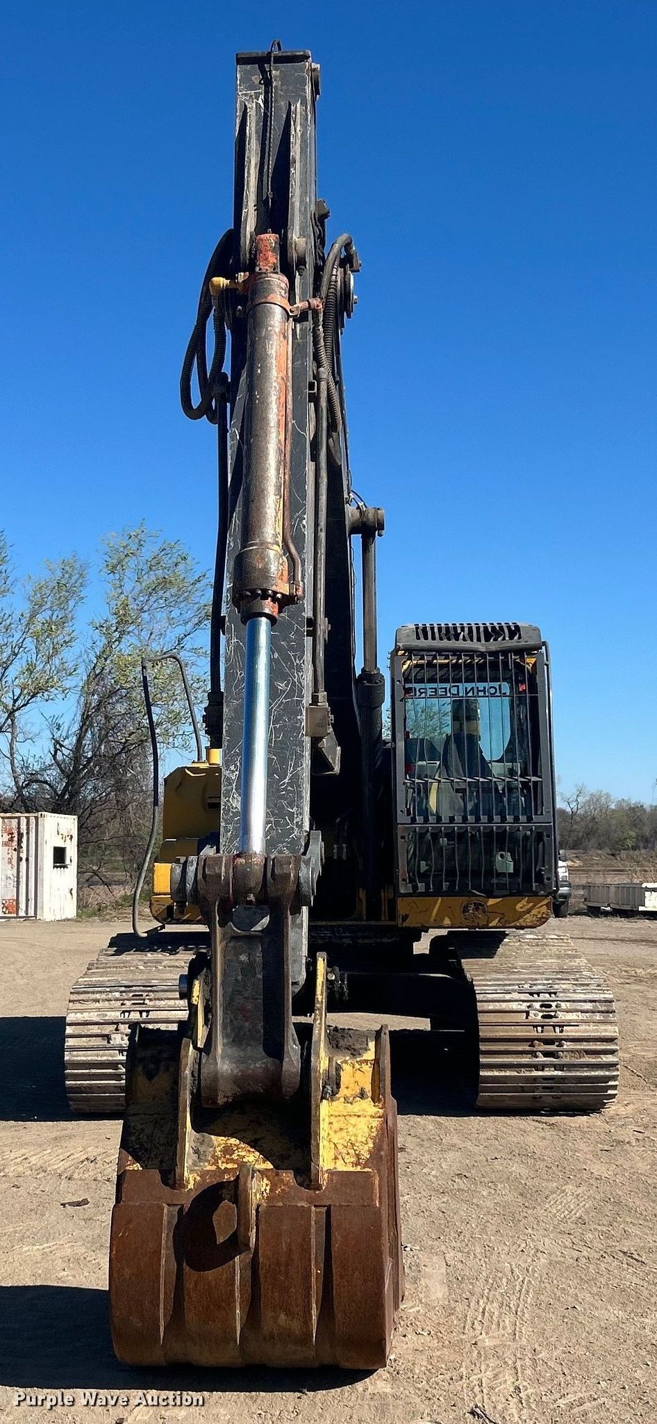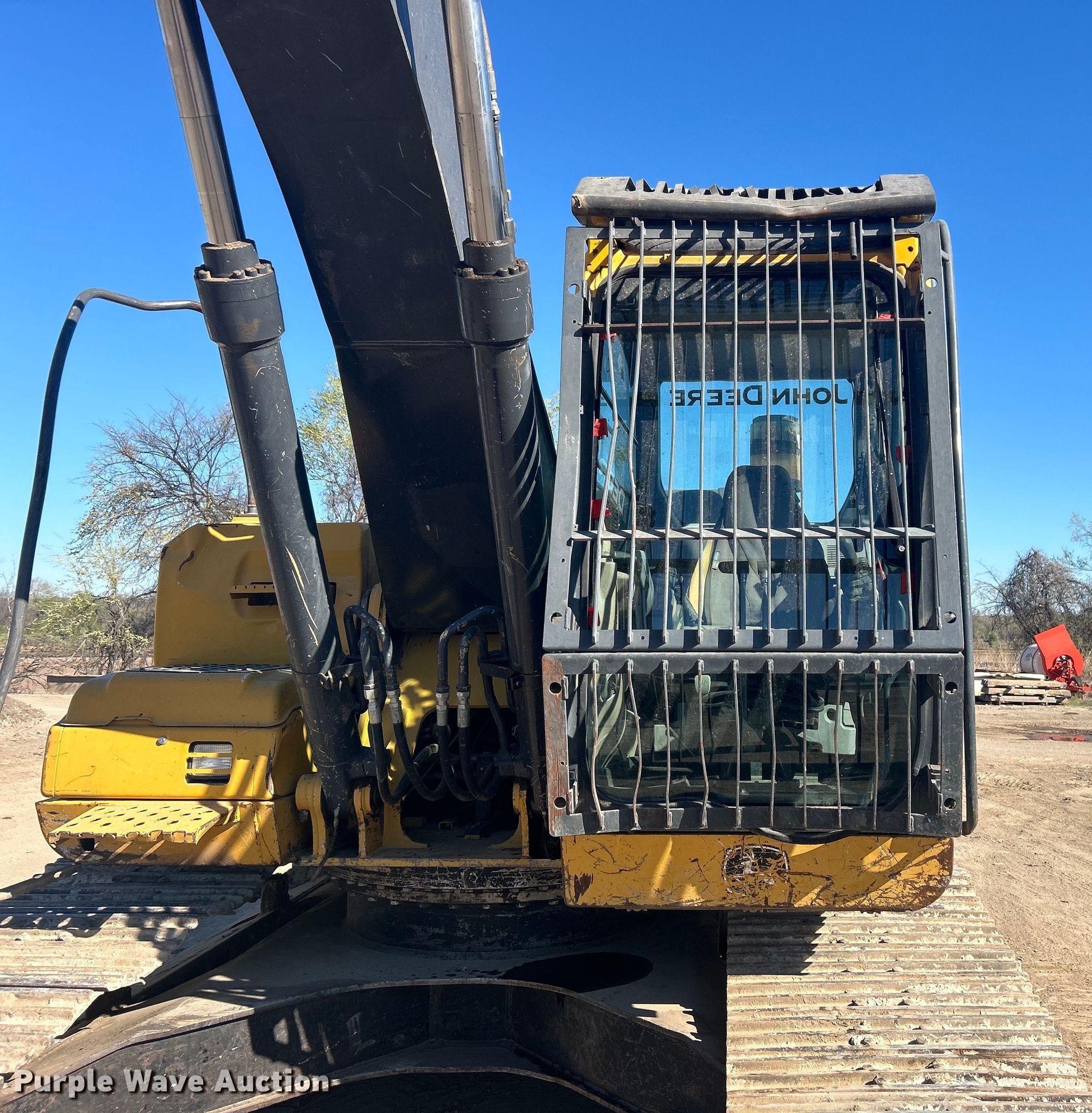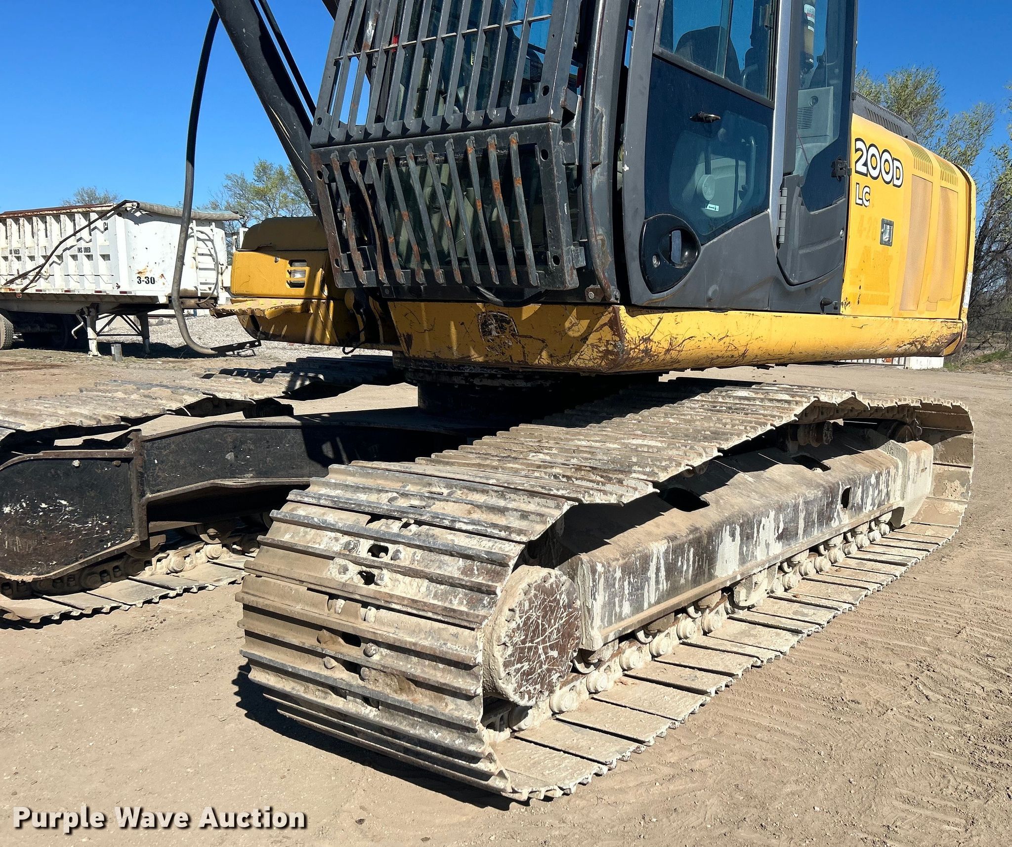 2011 John Deere 200D LC excavator. Hours: 11,688 on meter, Serial: 1FF200DXCA0512312. Engine John Deere 6068HT069, Displacement: 6.8L, Cylinders: 6, Fuel type: Diesel, kW: 129. Transmission Hydrostatic. Operators station Enclosed cab, AC, Heat. Features Auxiliary hydraulics, Boom Standard, Stick Stick length: 97", Bucket Width: 33", Teeth: 4. Tracks Width: 31", Steel, Grouser pads: Triple. Notes Track issues, will not move due to calcium build up. Ark Wrecking. 1800 S 49th W Ave. Tulsa, OK 74107